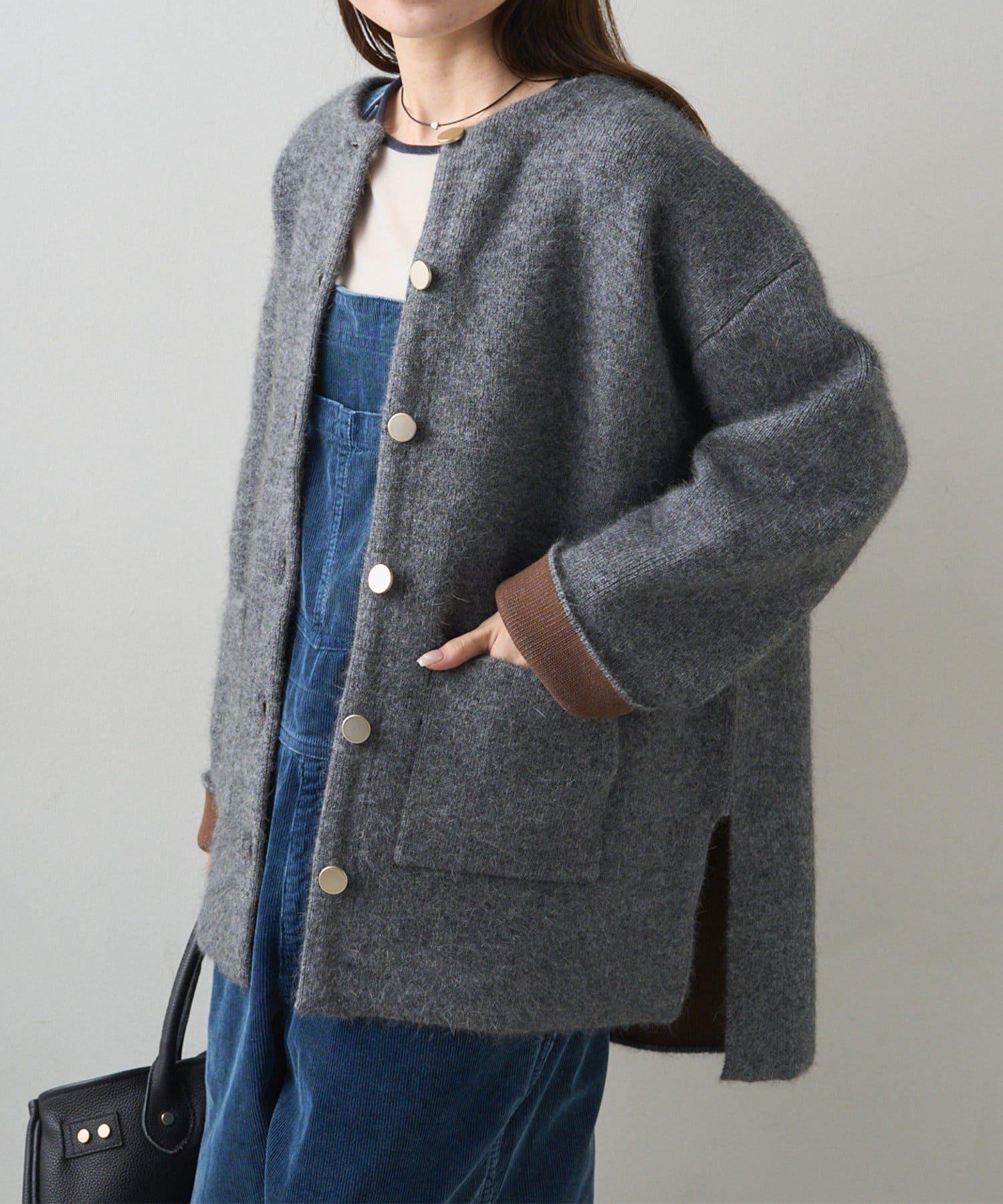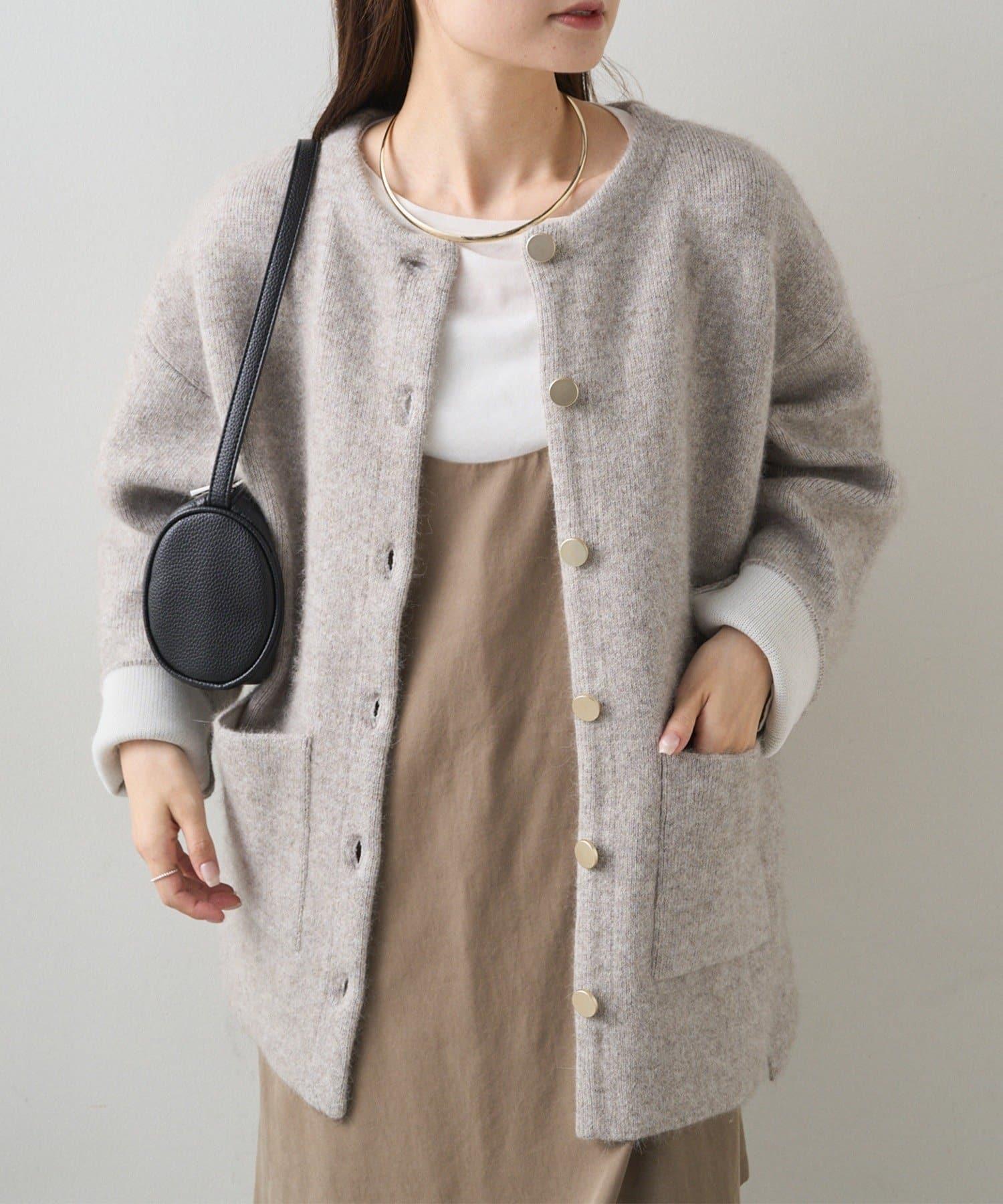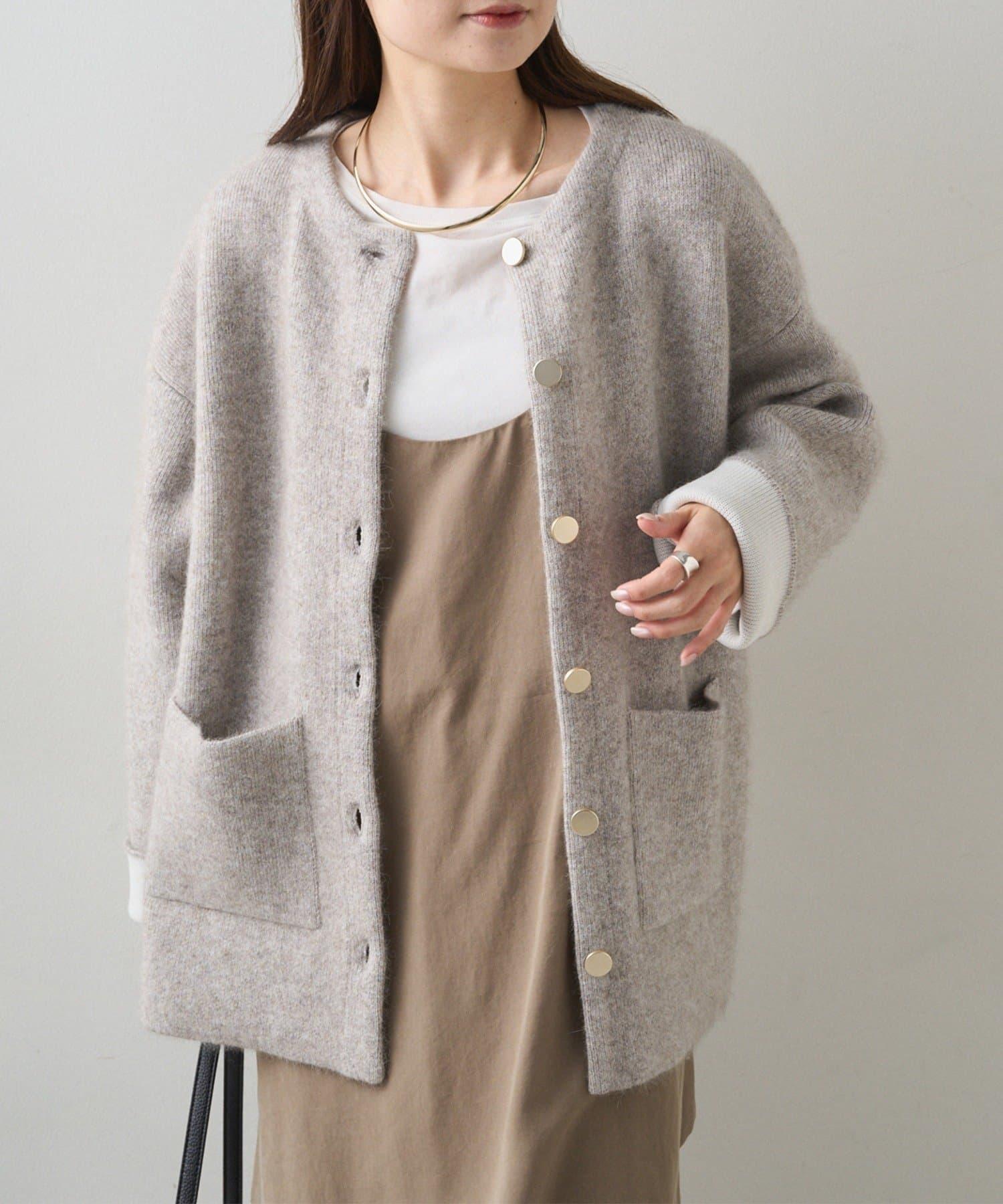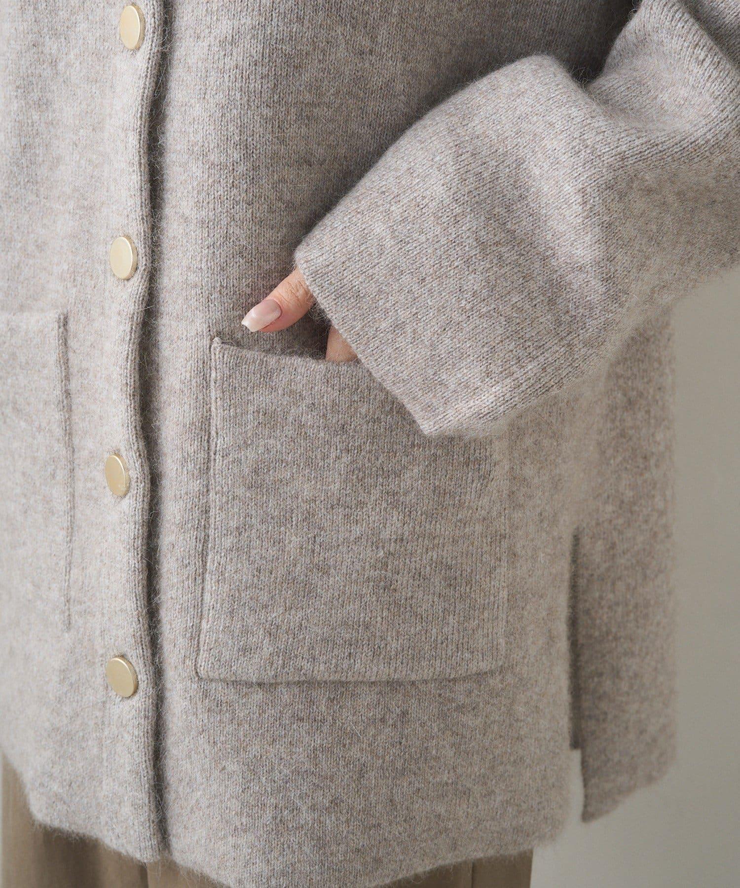 紐扣散發出微妙的光澤,口袋是平的,看起來粗糙的針織面料也顯得整潔。