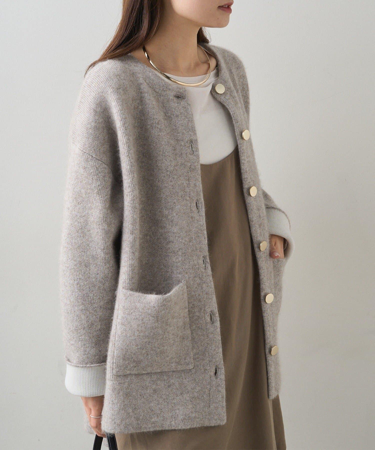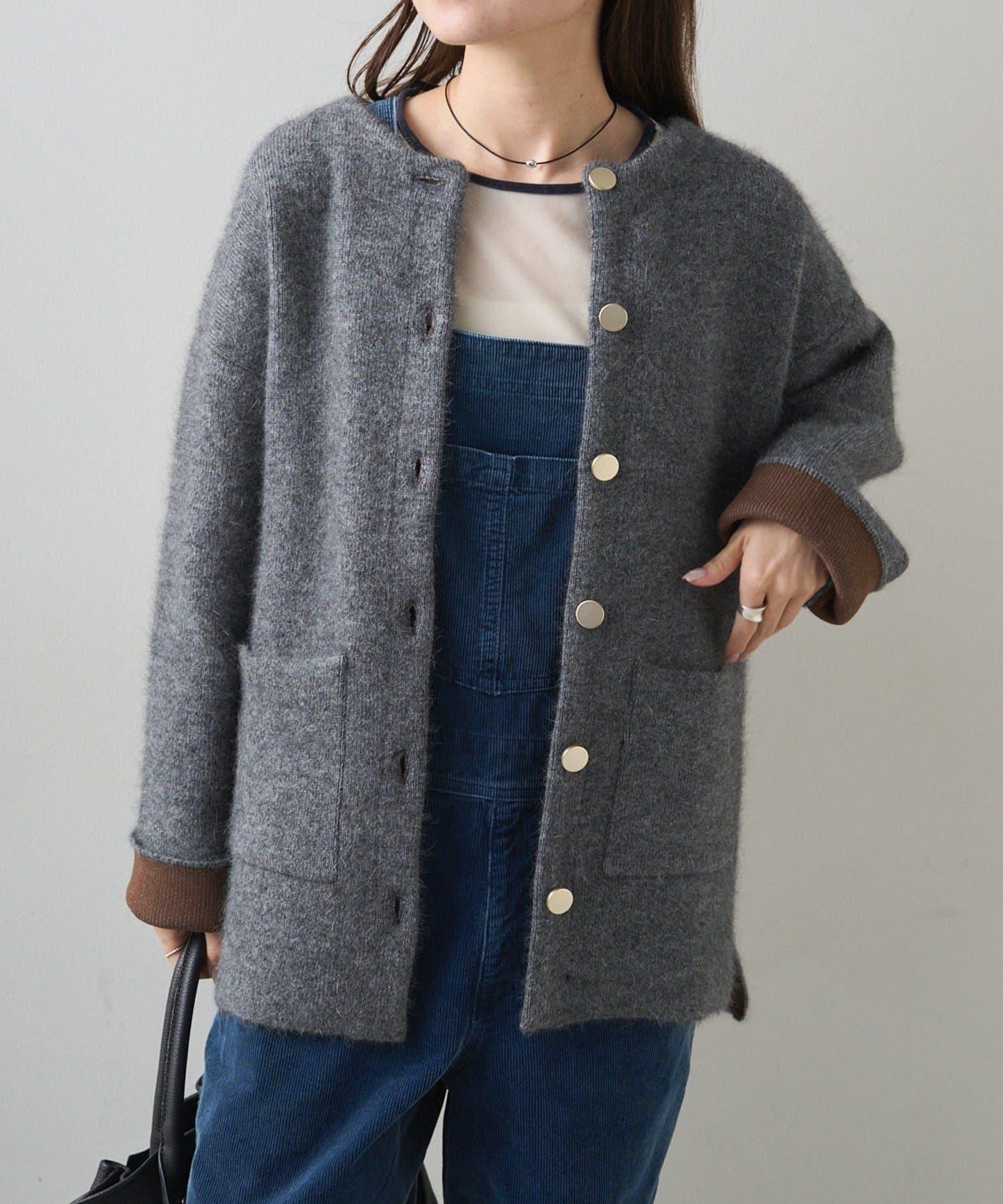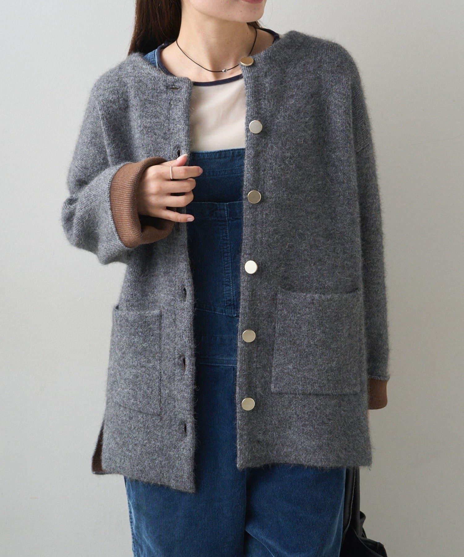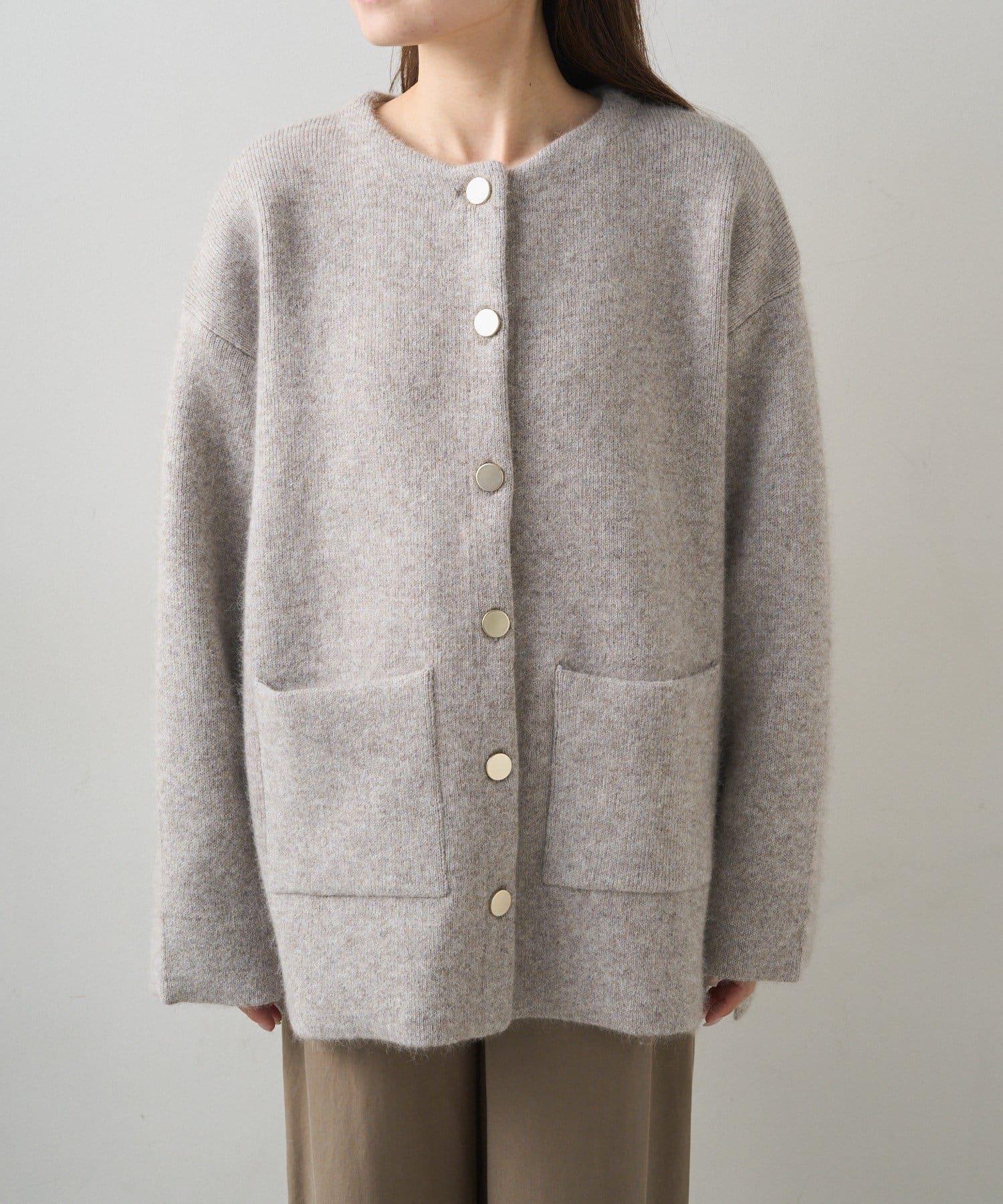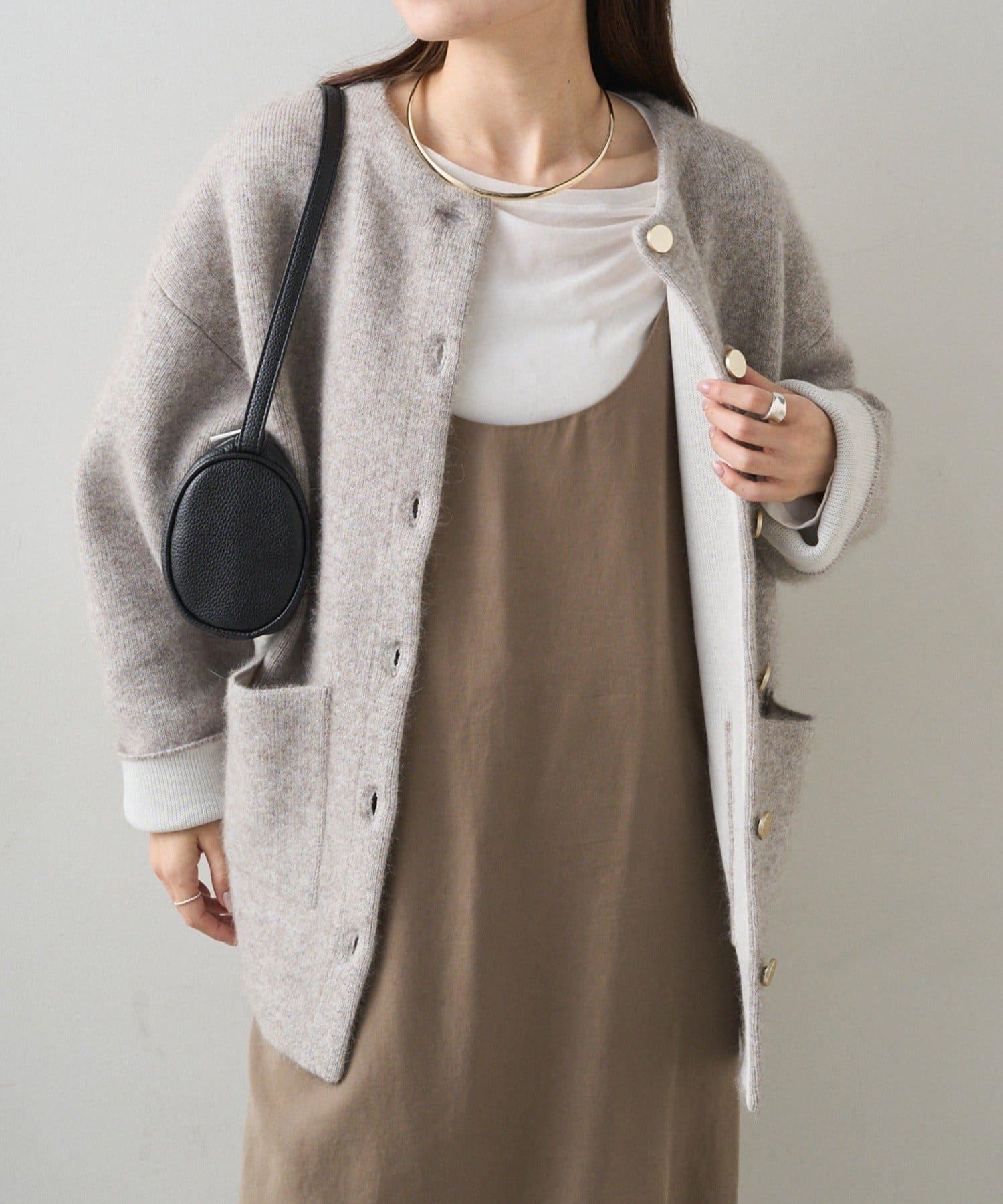 紐扣散發出微妙的光澤,口袋是平的,看起來粗糙的針織面料也顯得整潔。