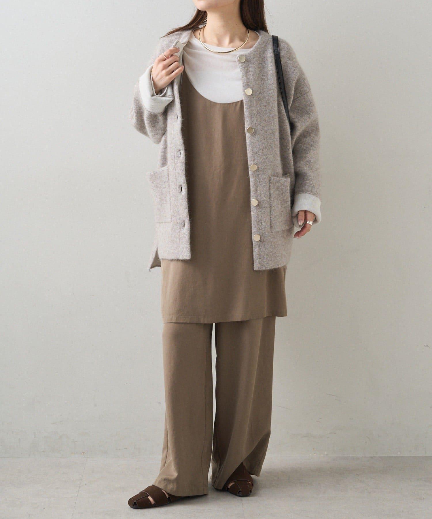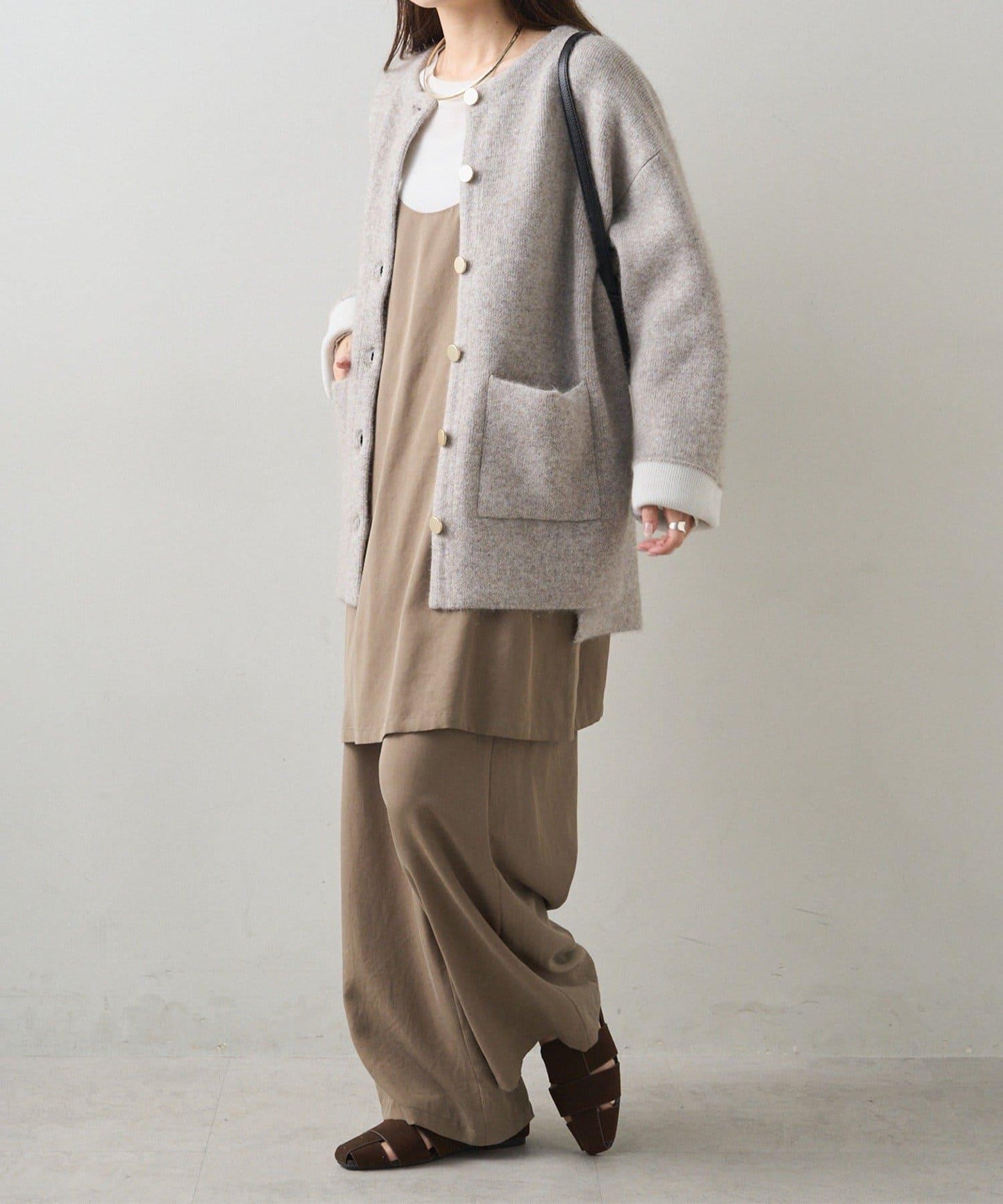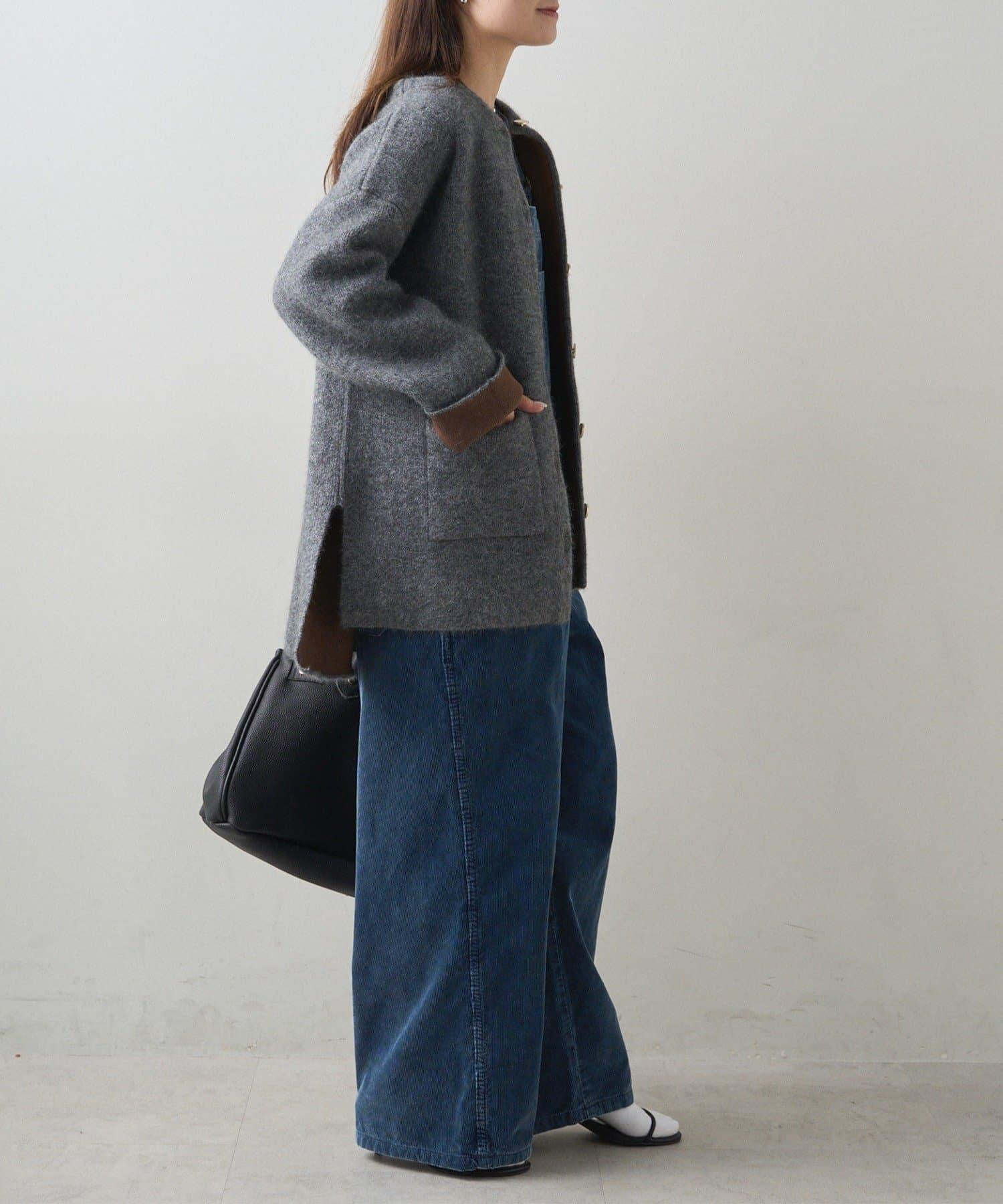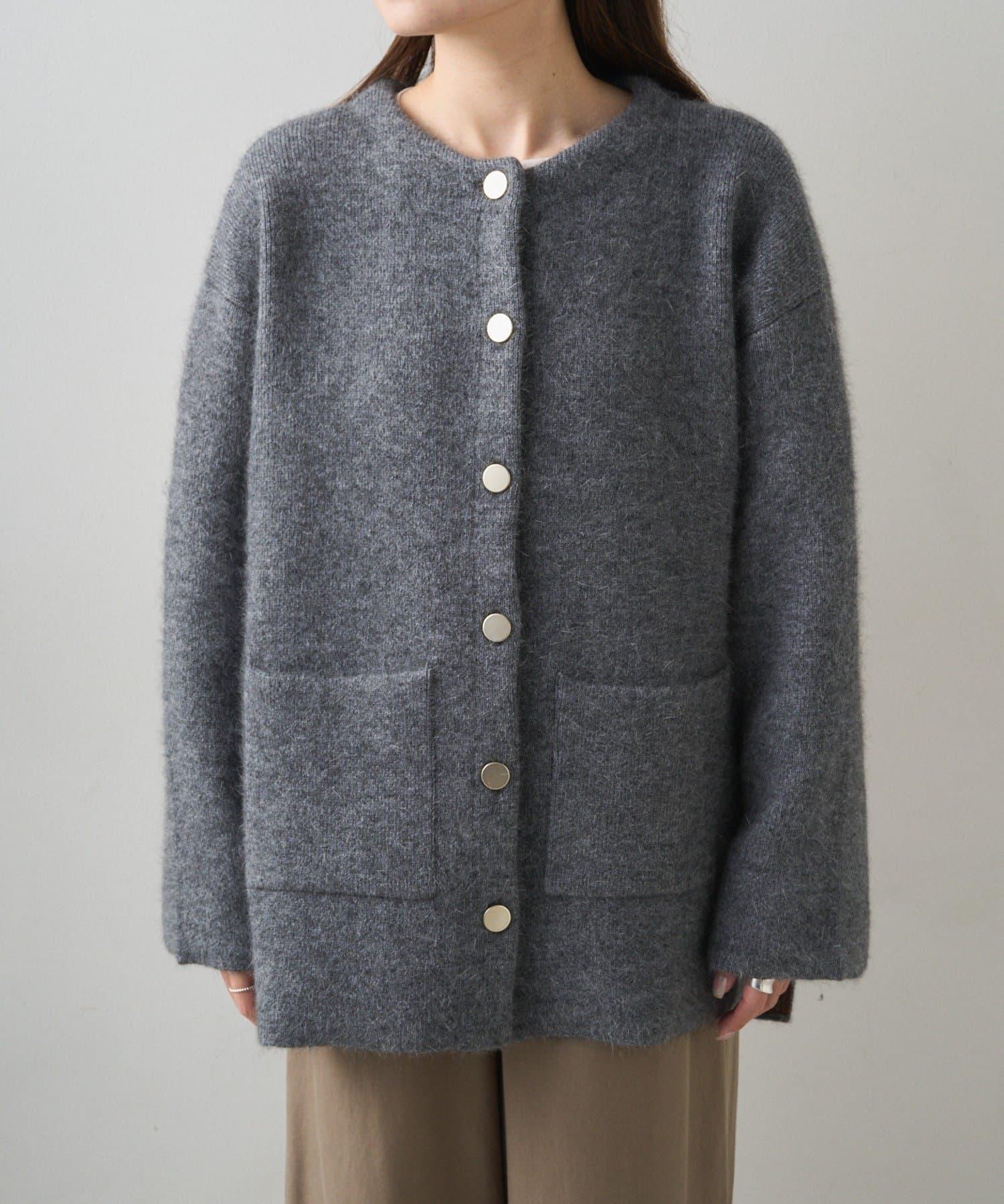 紐扣散發出微妙的光澤,口袋是平的,看起來粗糙的針織面料也顯得整潔。
