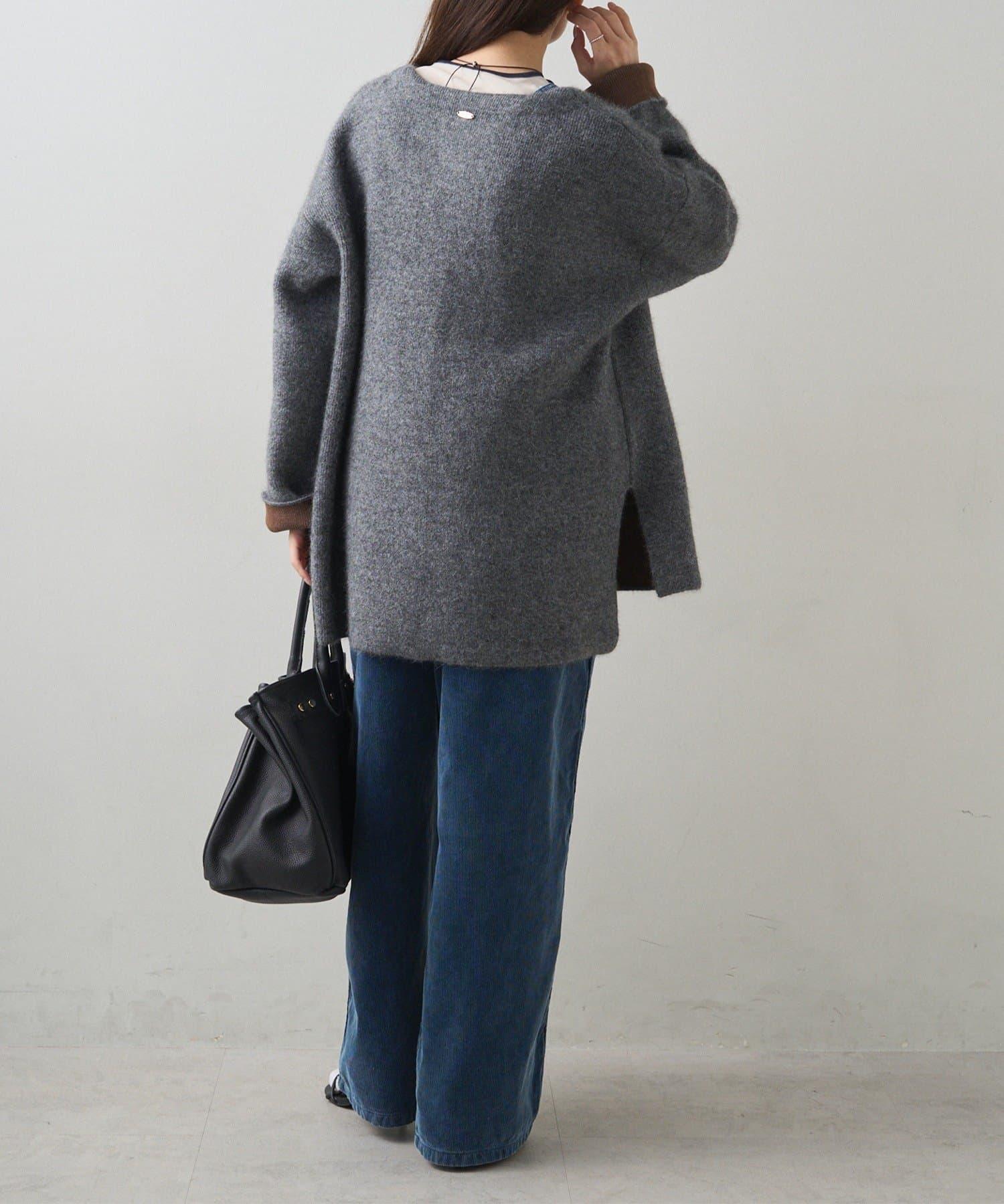 使用針織面料編織而成的大衣,採用嫁接編織法,前後表面不同。