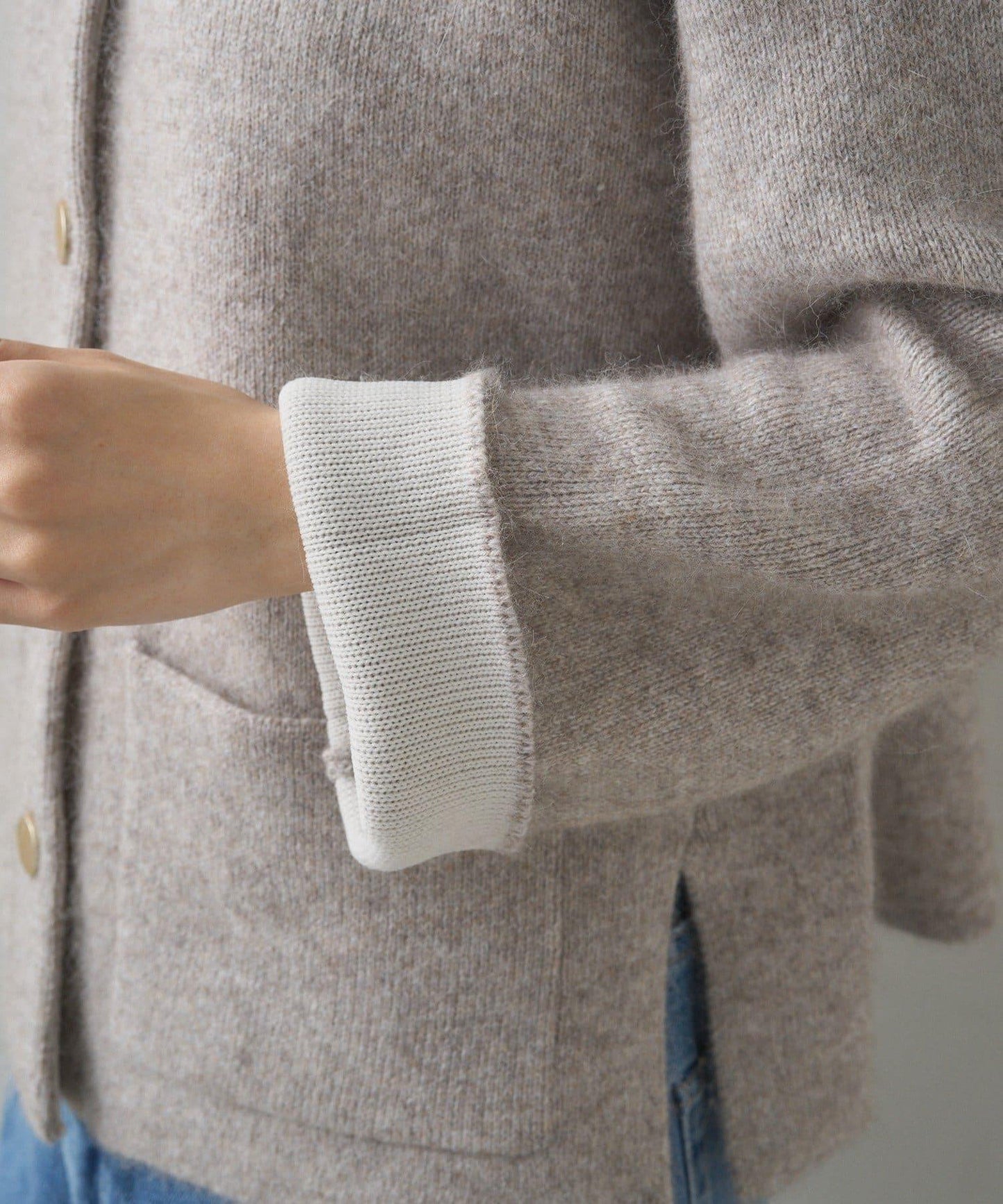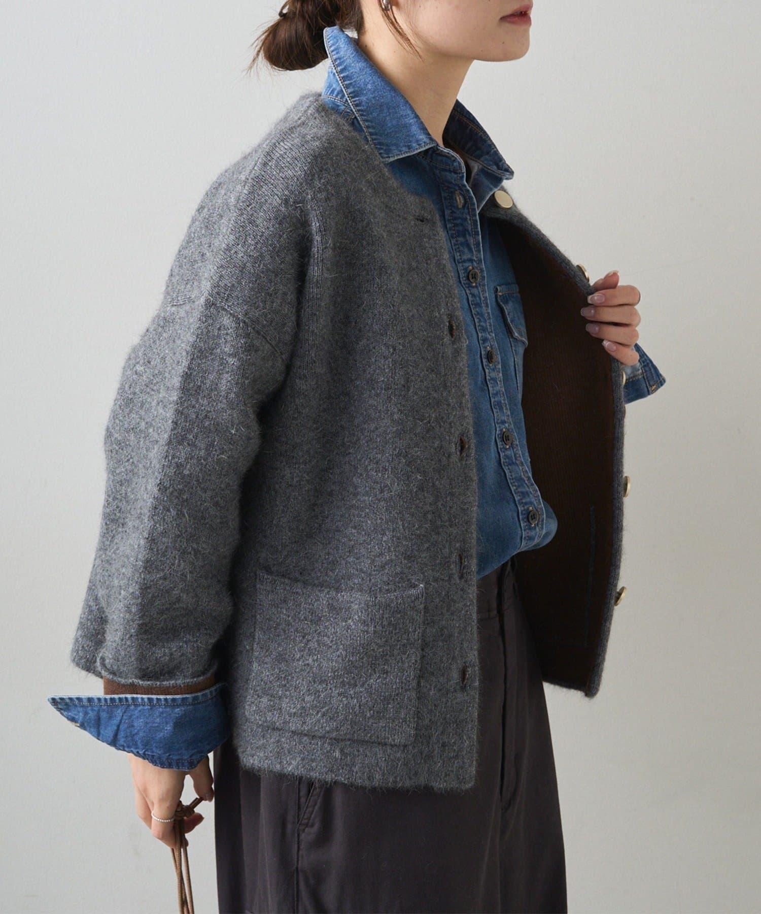 這款夾克採用前後表面不同的嫁接針織面料編織而成。