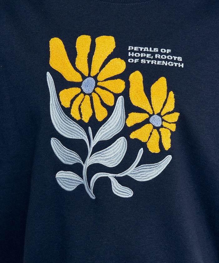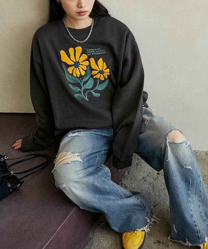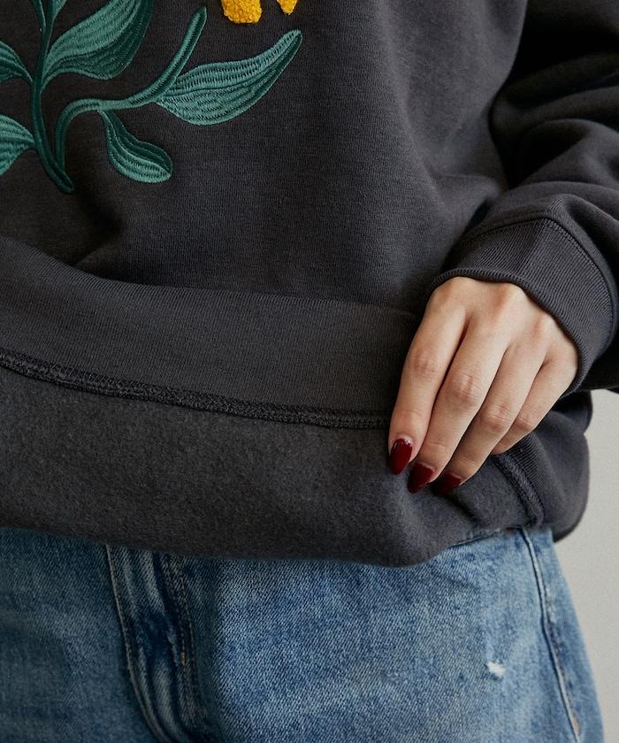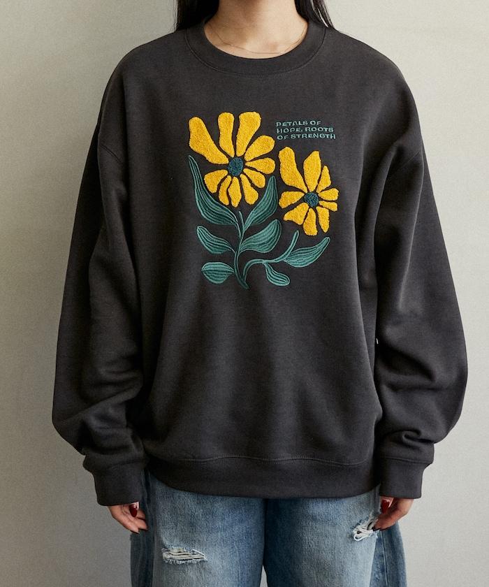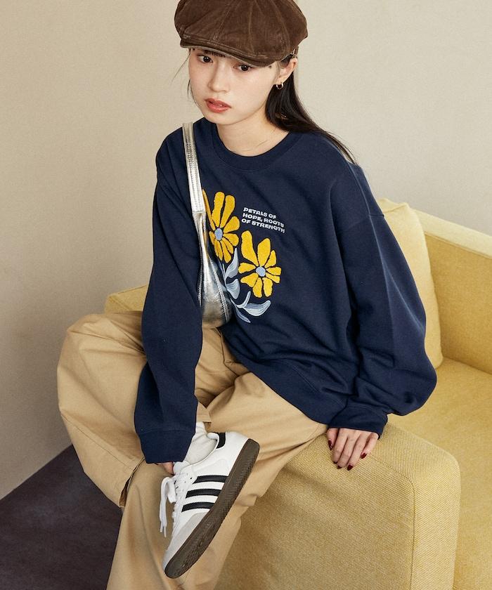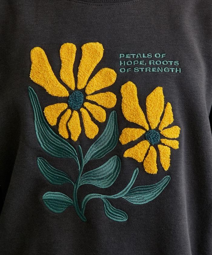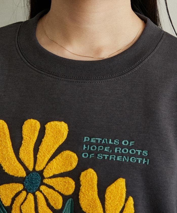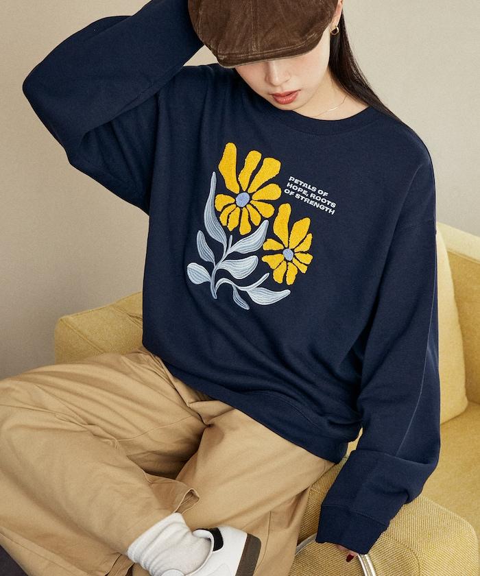 正面的復古觸感雛菊刺繡令人印象深刻。