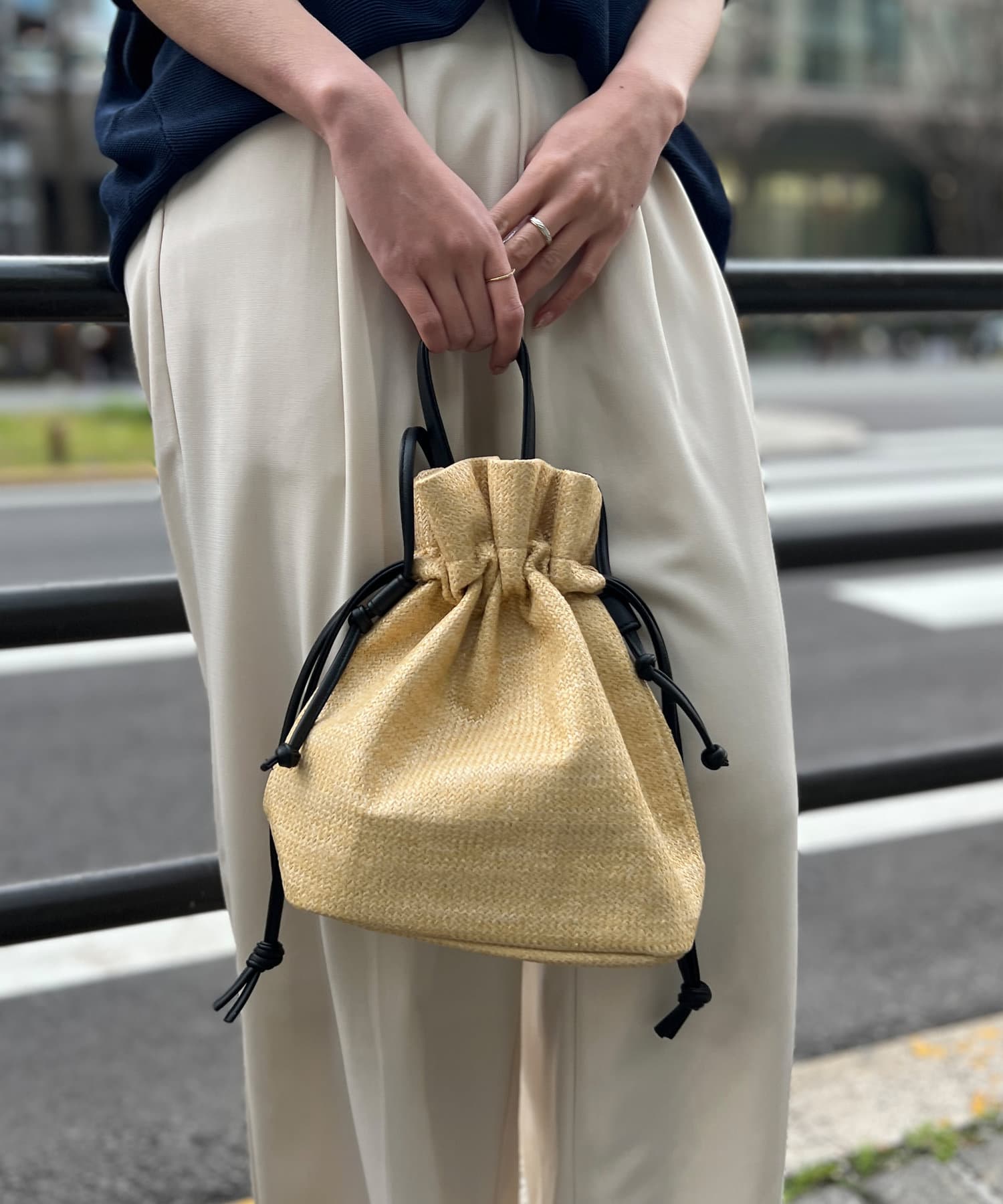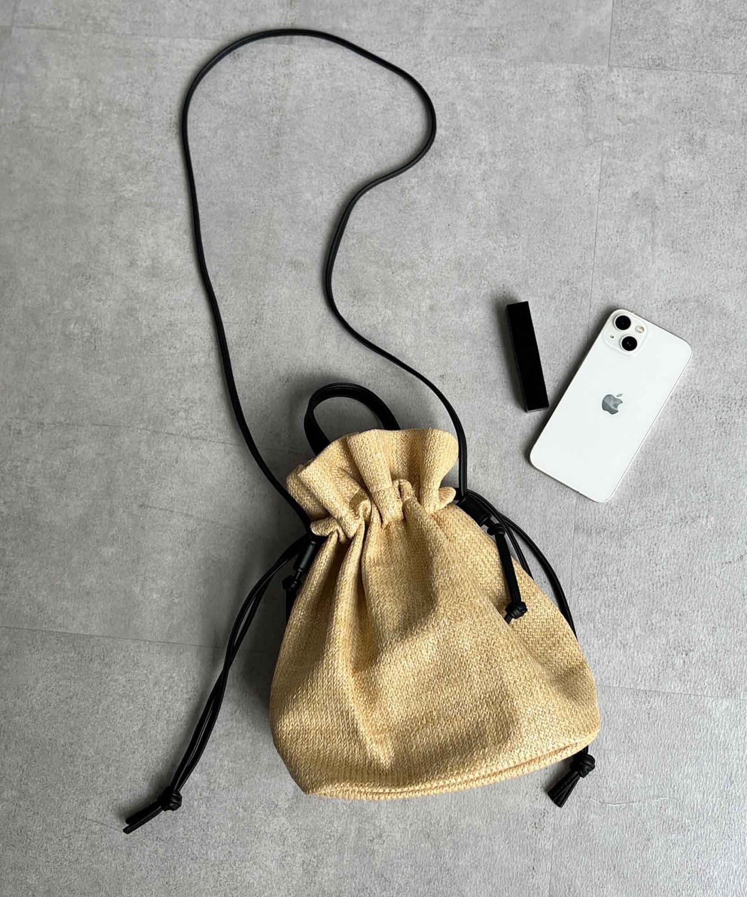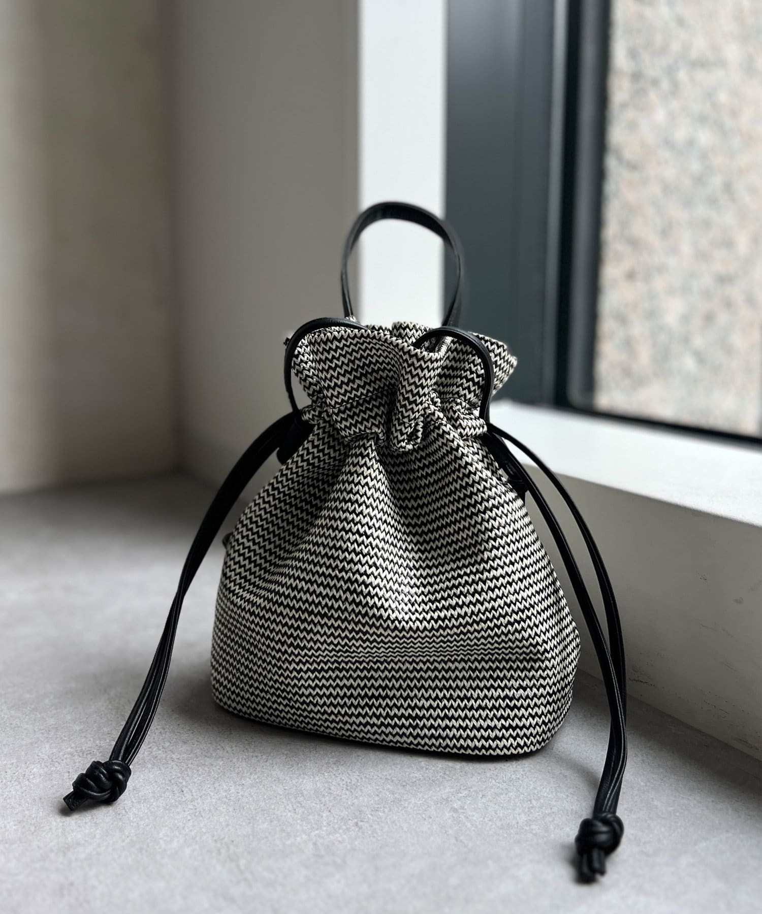 拉繩包。體積雖小,卻能很好地收納外出必備物品。