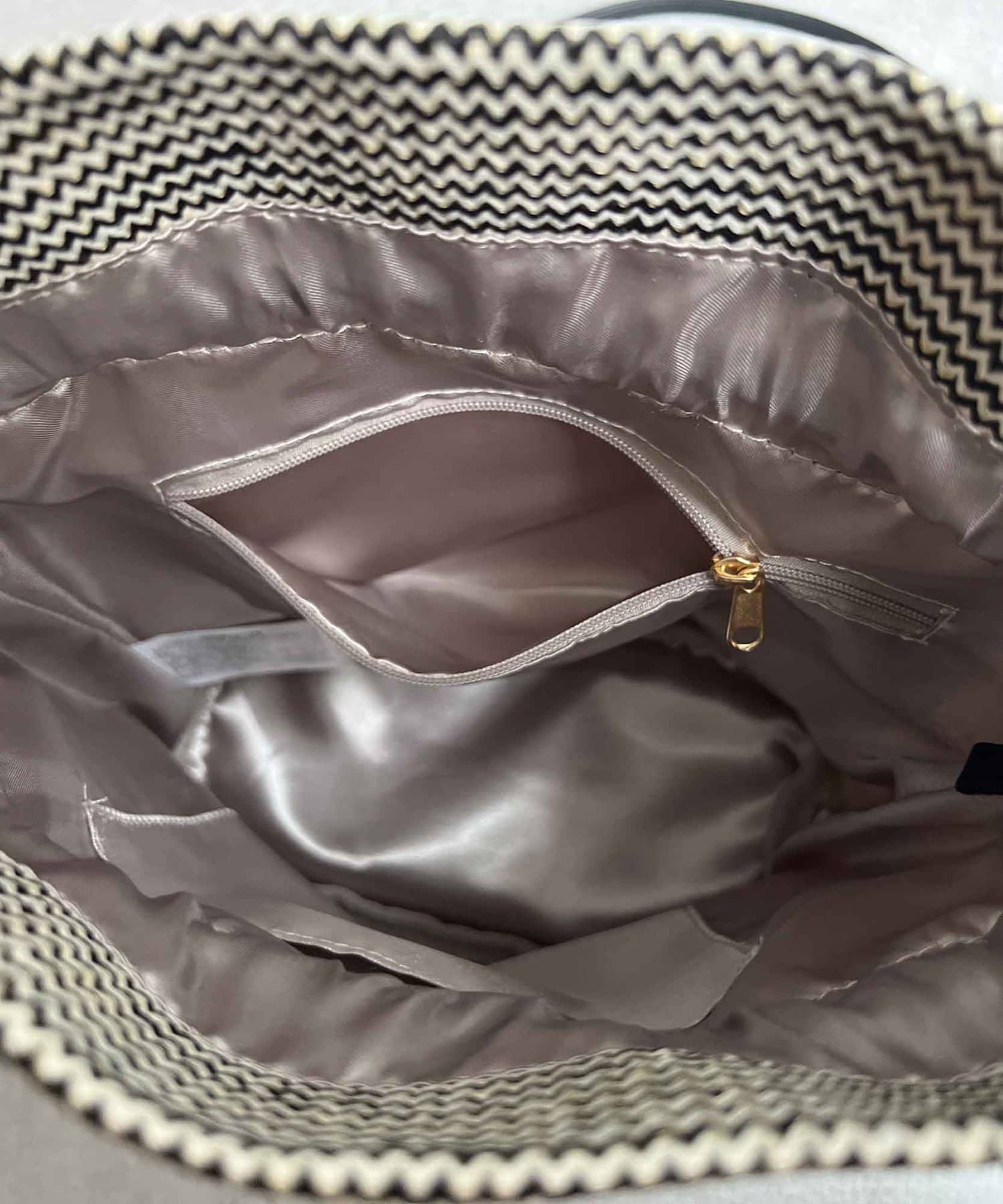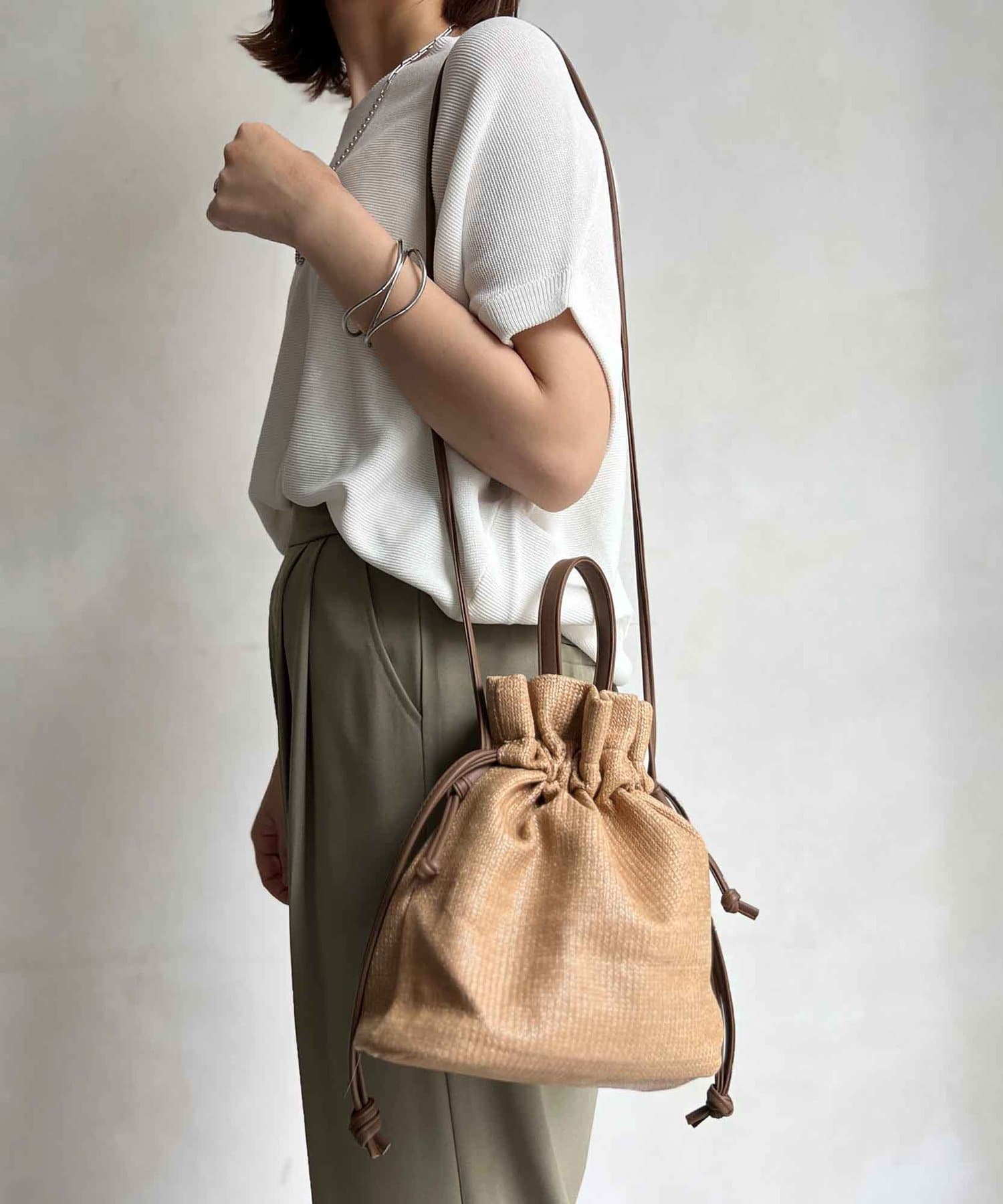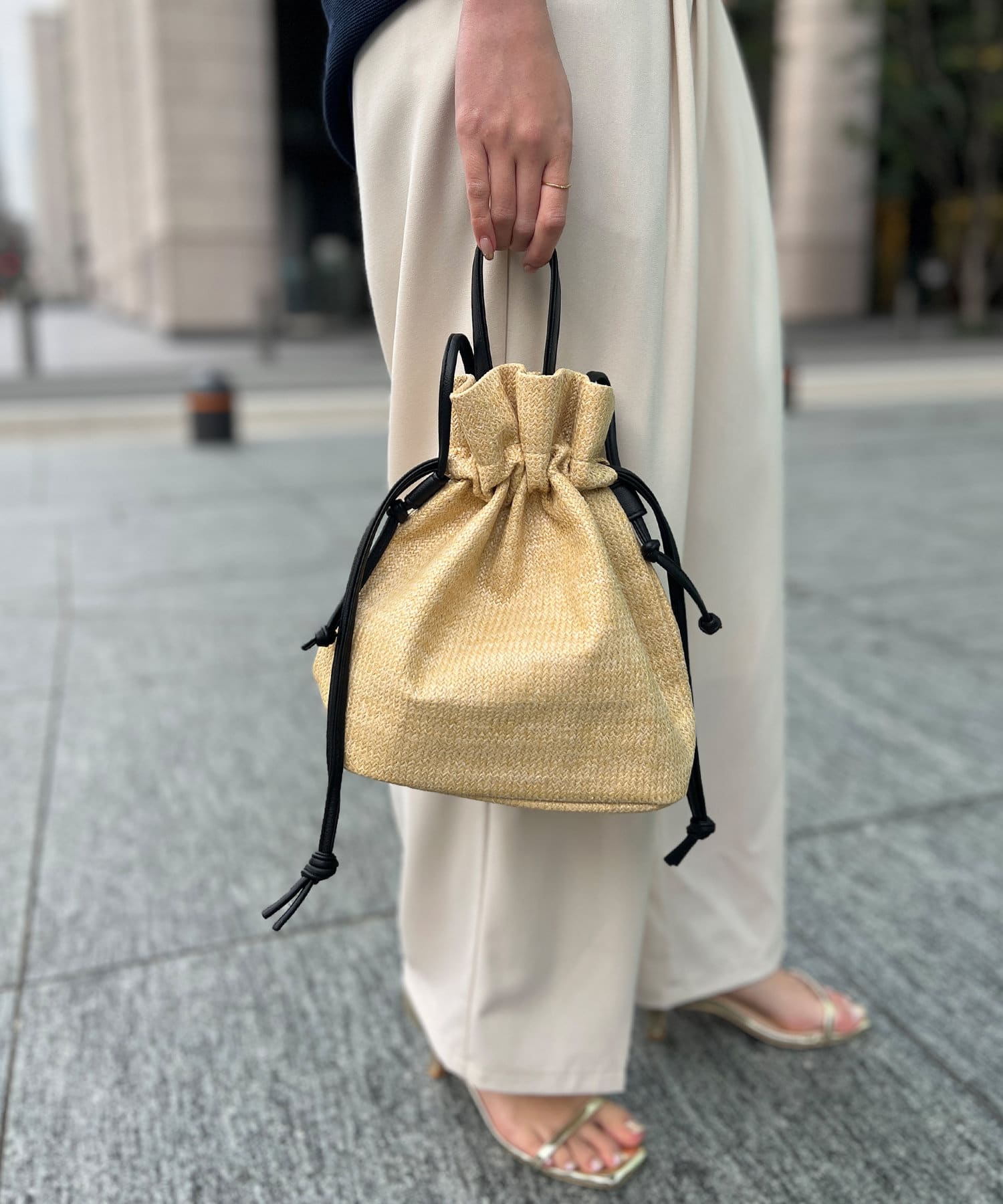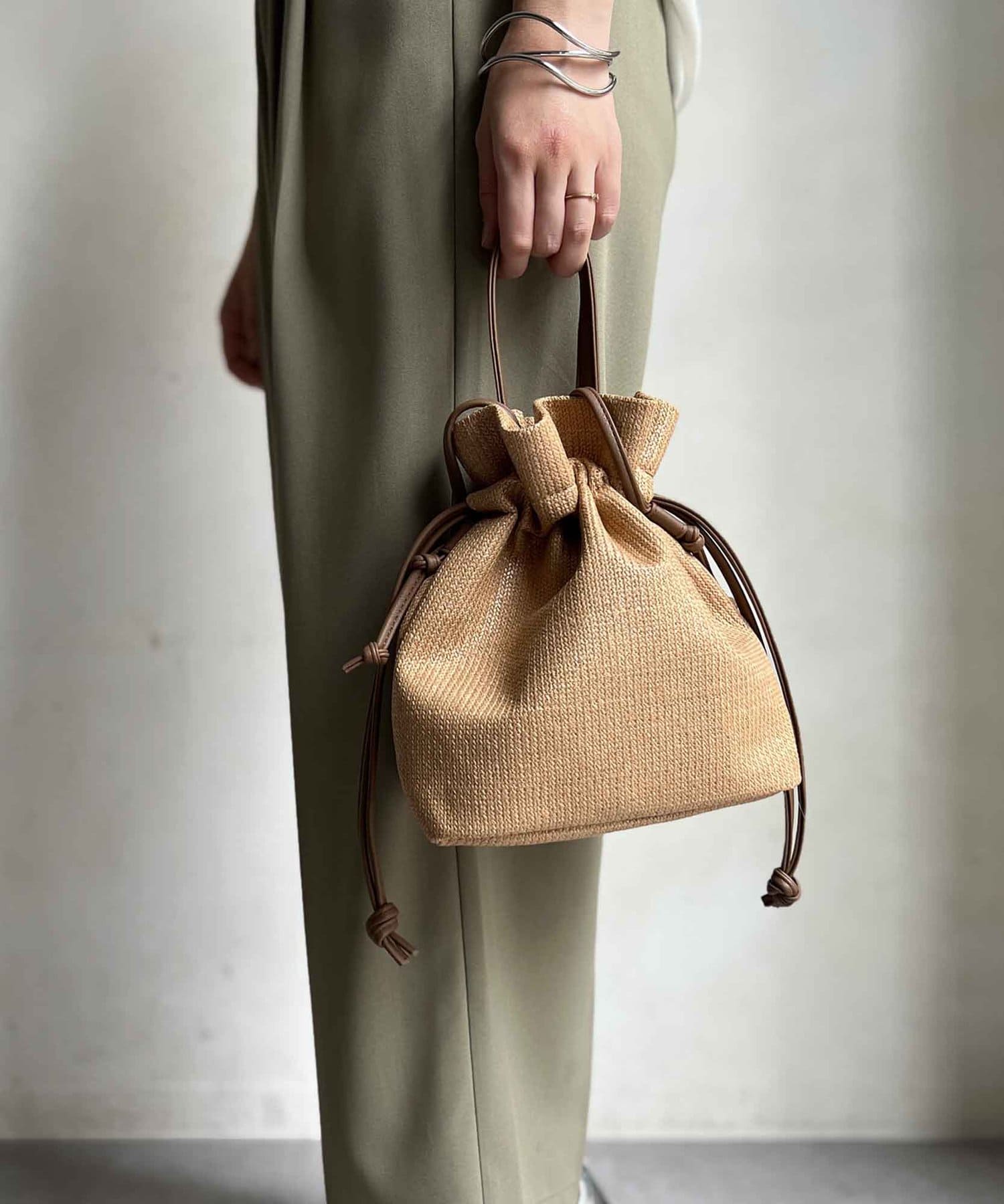 拉繩包。體積雖小,卻能很好地收納外出必備物品。