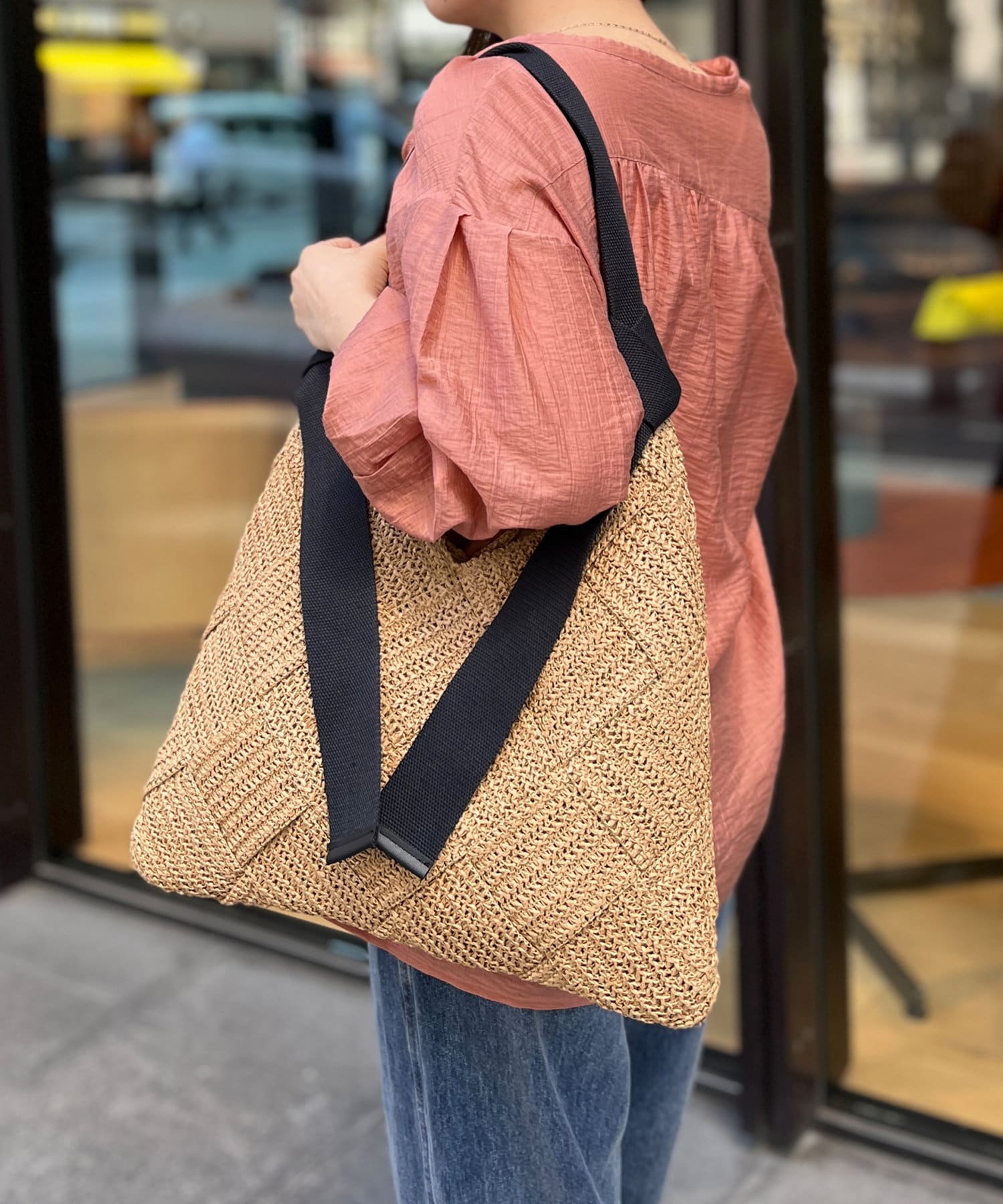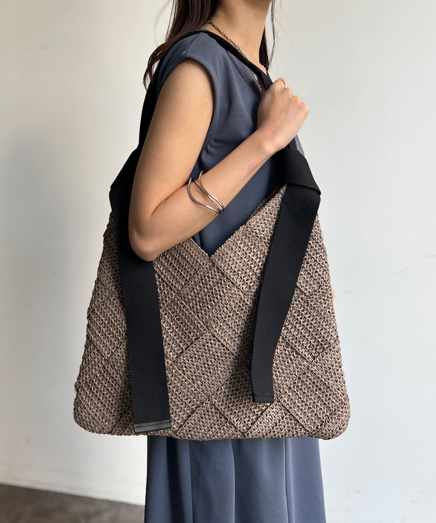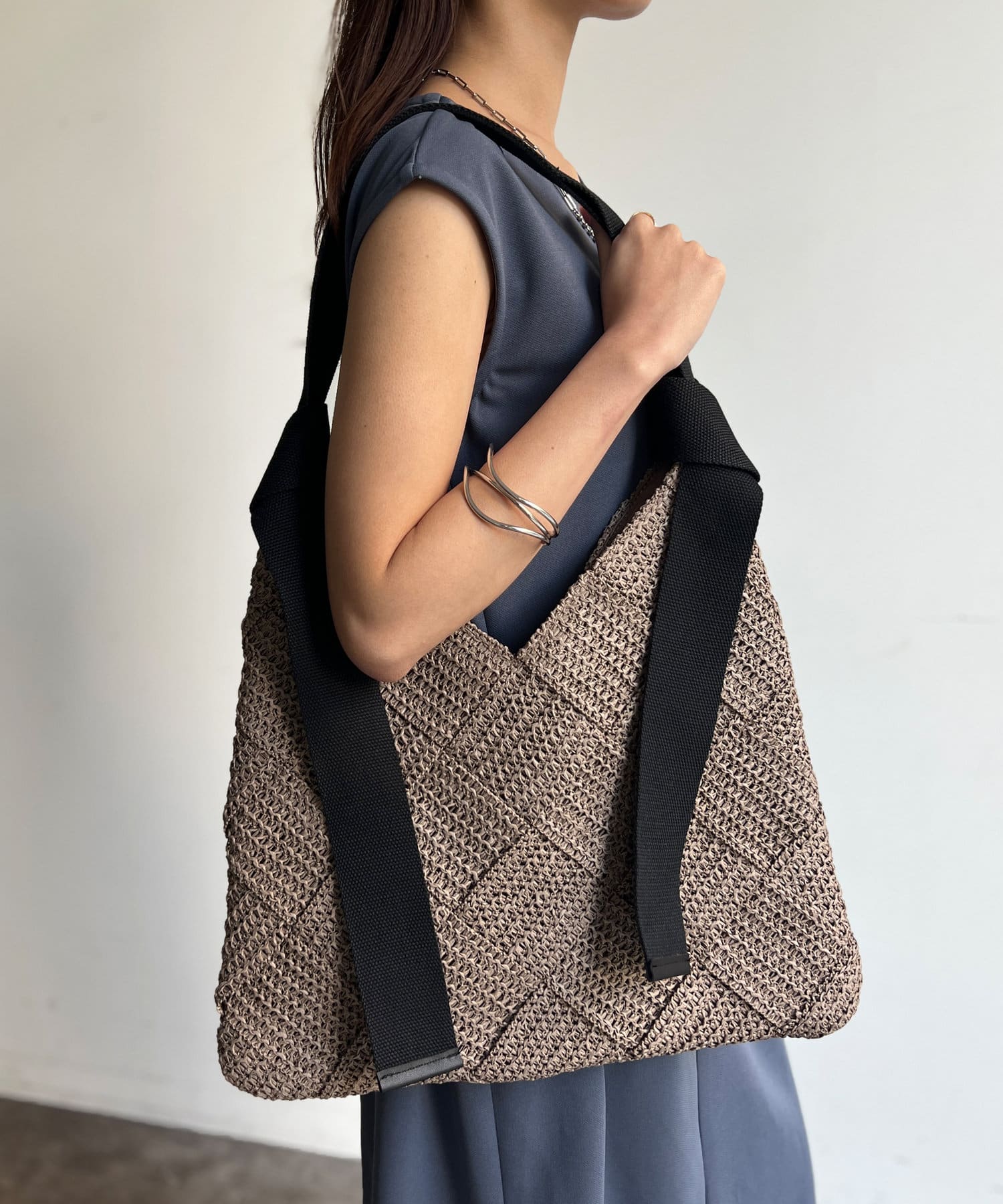 一款三角形手袋,讓您的搭配與眾不同。材質手感涼爽。