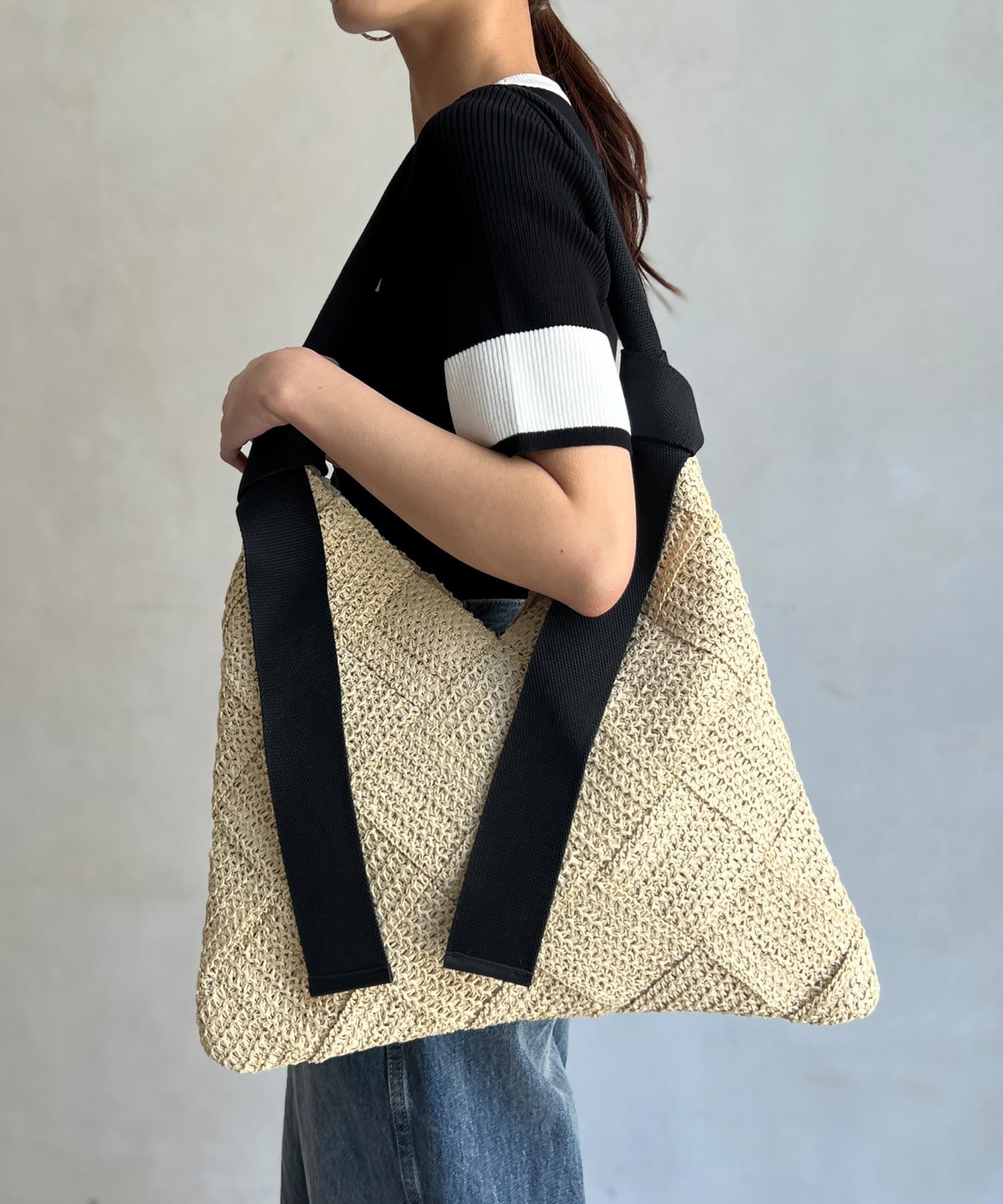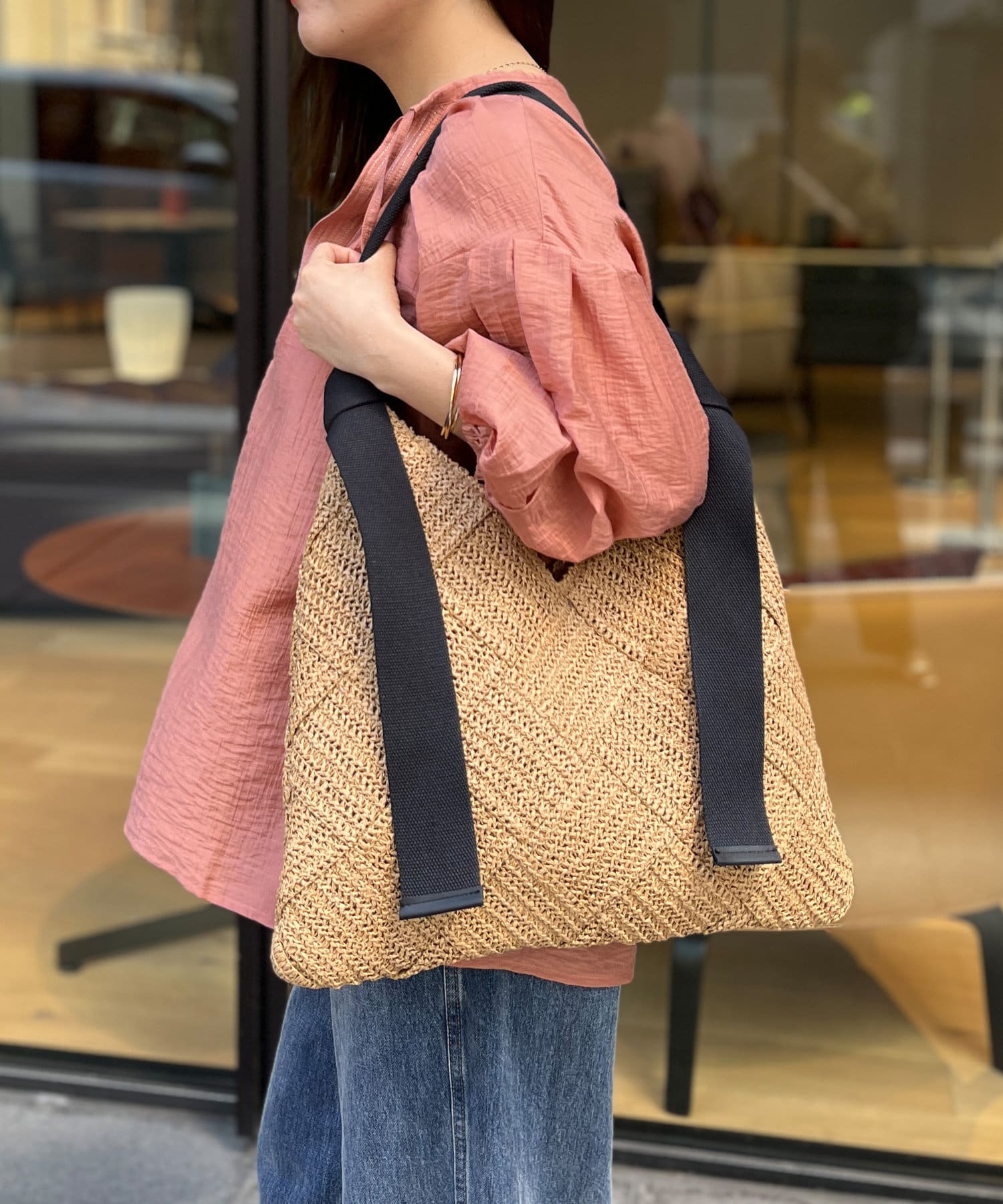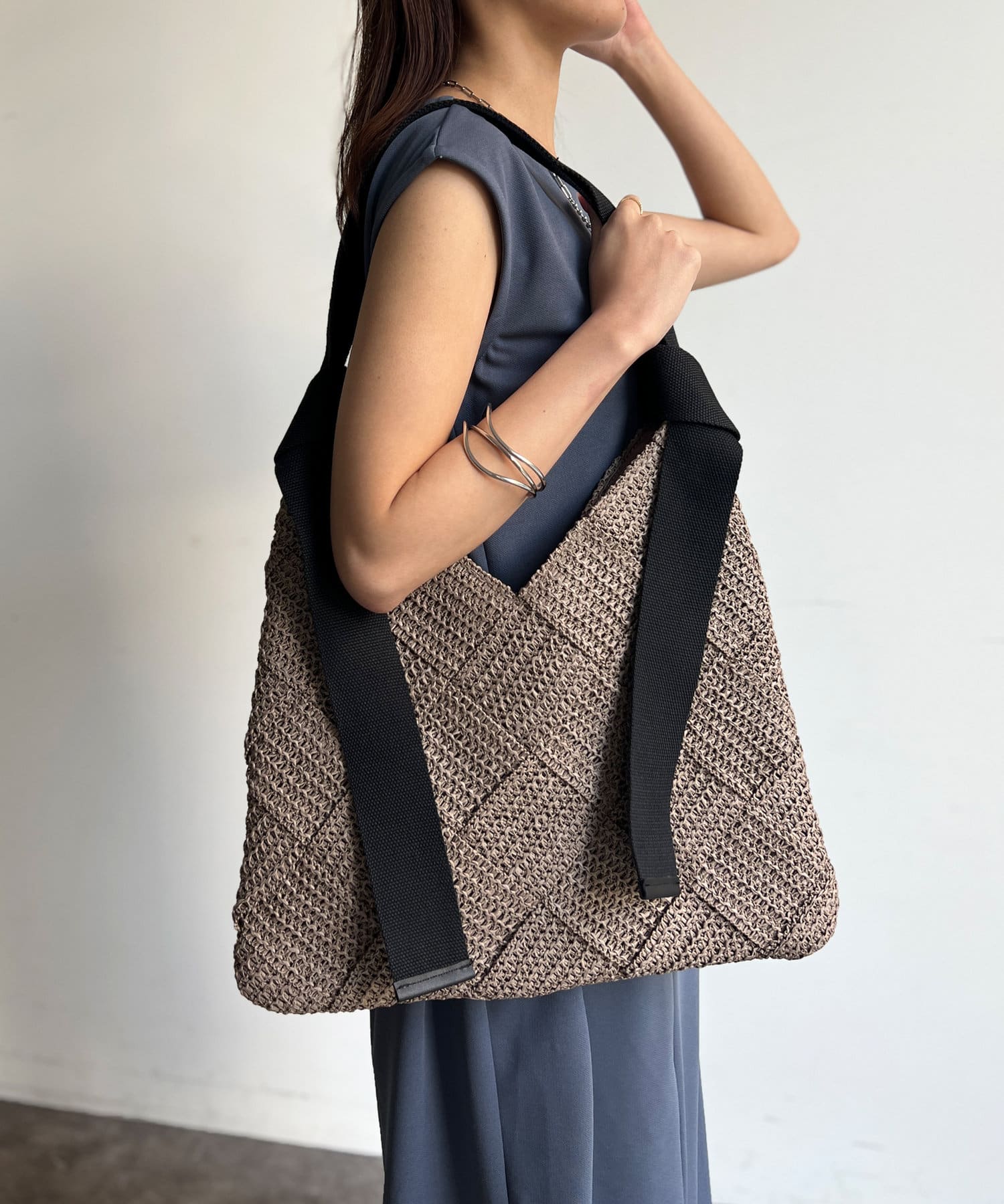 一款三角形手袋,讓您的搭配與眾不同。材質手感涼爽。
