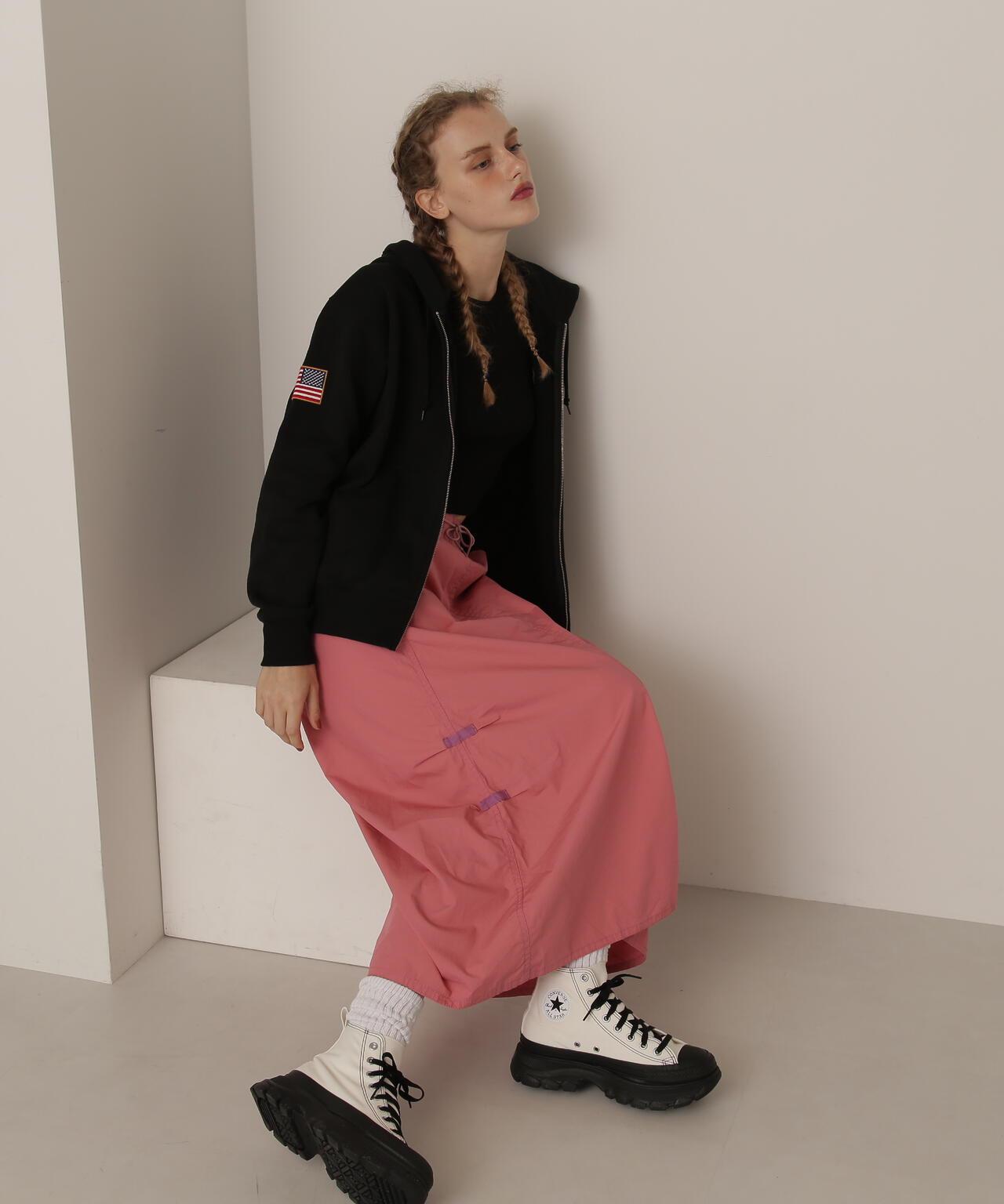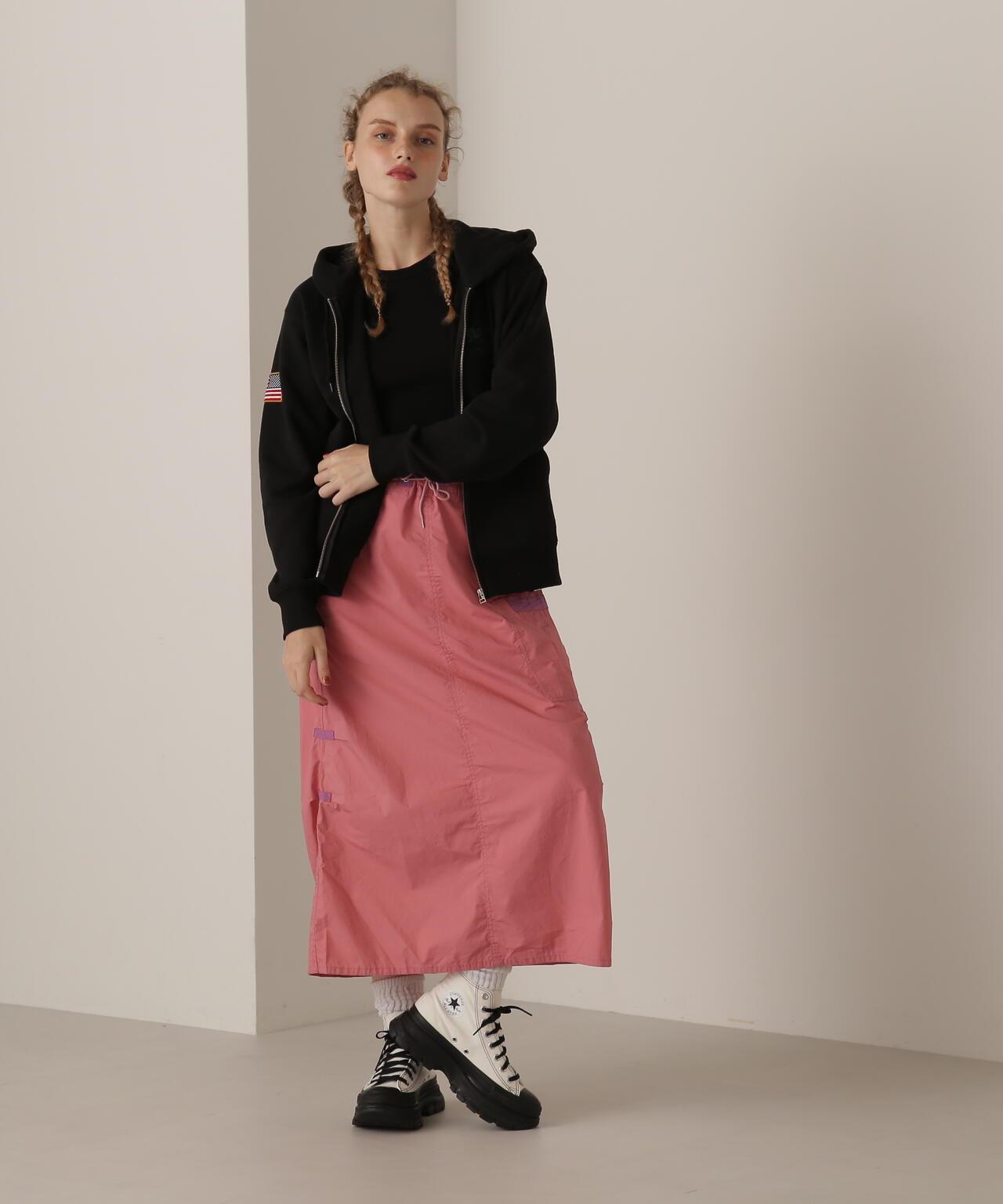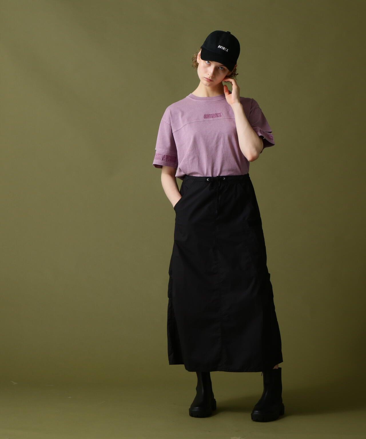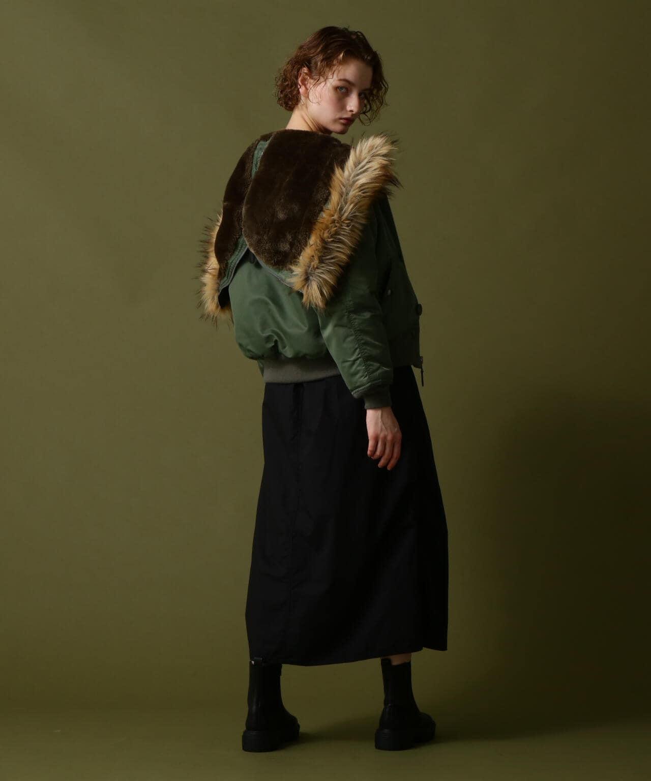 標準單品雪地裙--雪地褲的裙裝版型,大氣十足--兩側收腰設計,略顯 A 字廓形,不會顯得過於臃腫--裙身經過徹底水洗,在表面形成動感--腰部有鬆緊帶和繫帶,可搭配低腰褲穿著裙子的存在感很強,只需搭配一件簡單的 T 恤或背心,就能營造出很好的氛圍。裙子的存在感很強,只需搭配簡單的 T 恤或背心就能營造出很好的氛圍。AVIREX Belle] 將正宗軍裝的功能性和設計感與女式短裙相結合。