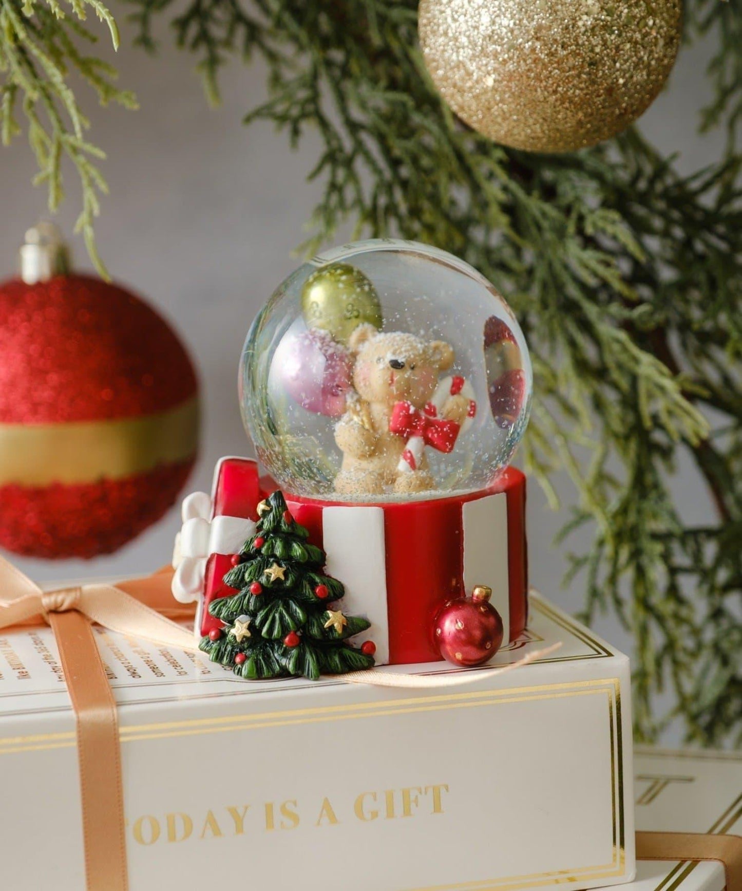 當您輕輕搖晃圓頂時,閃閃發光的雪花就會飄落下來,一個神奇的世界就此打開。