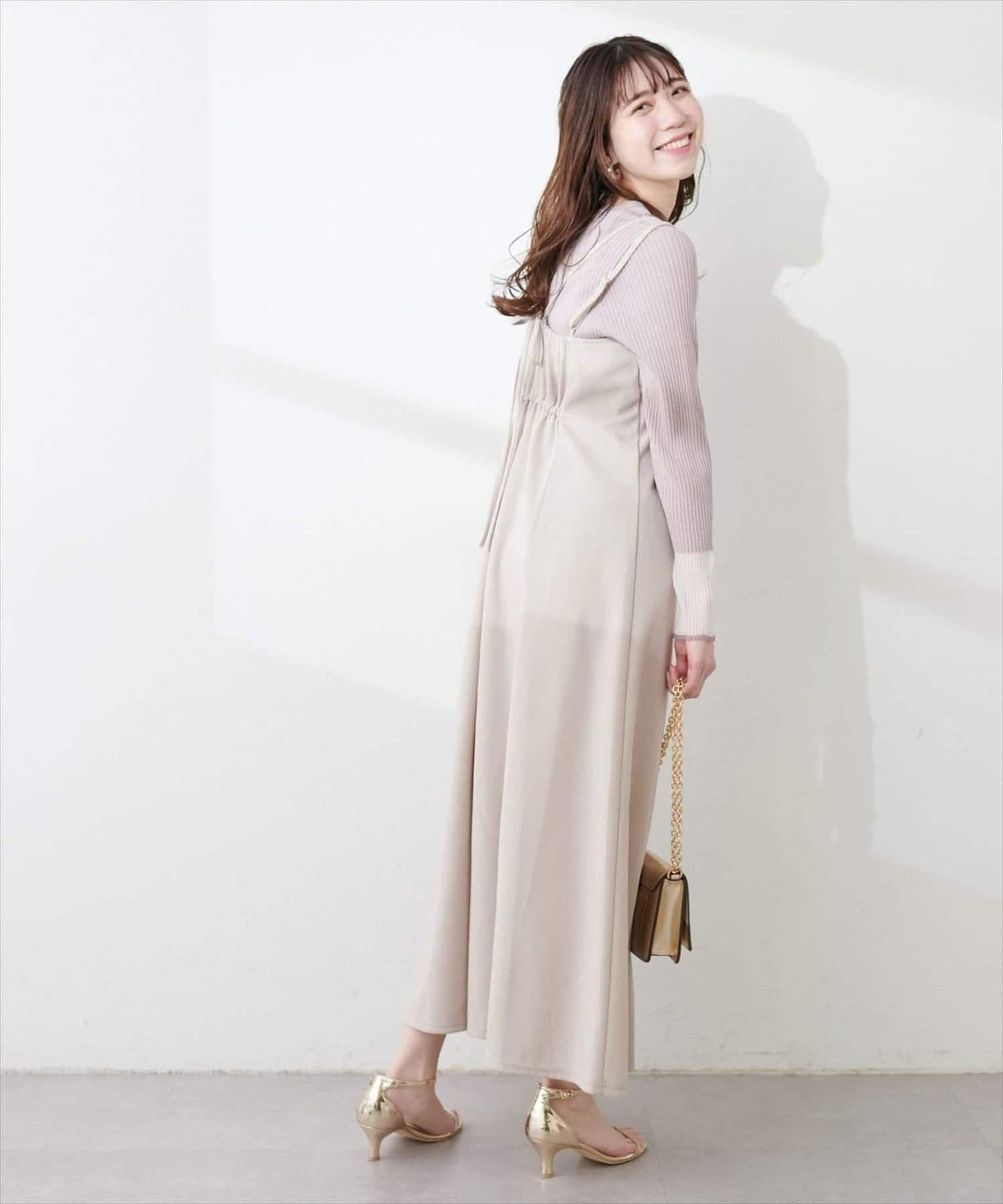在連身裙外面再穿一件針織衫或其他單品,就能打造出秋冬的層次感。