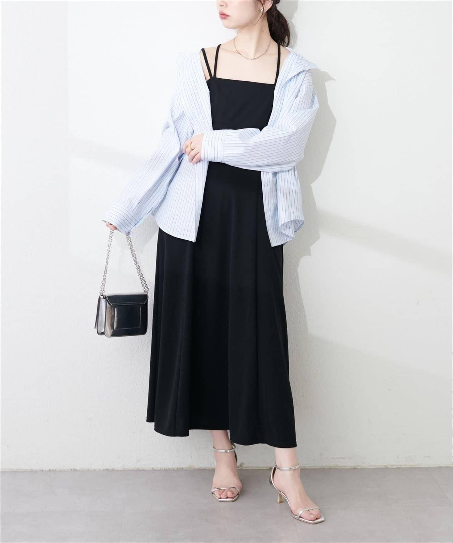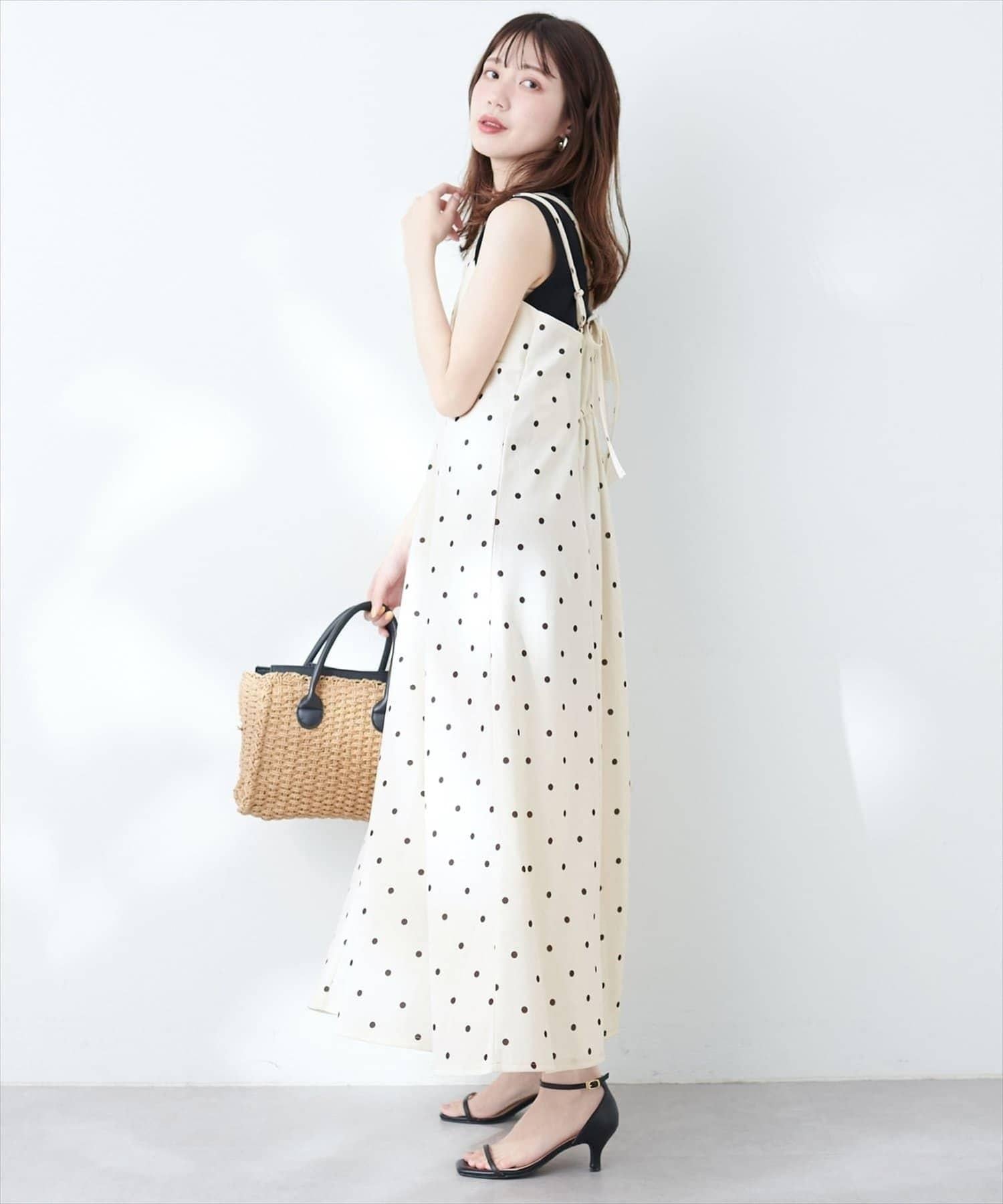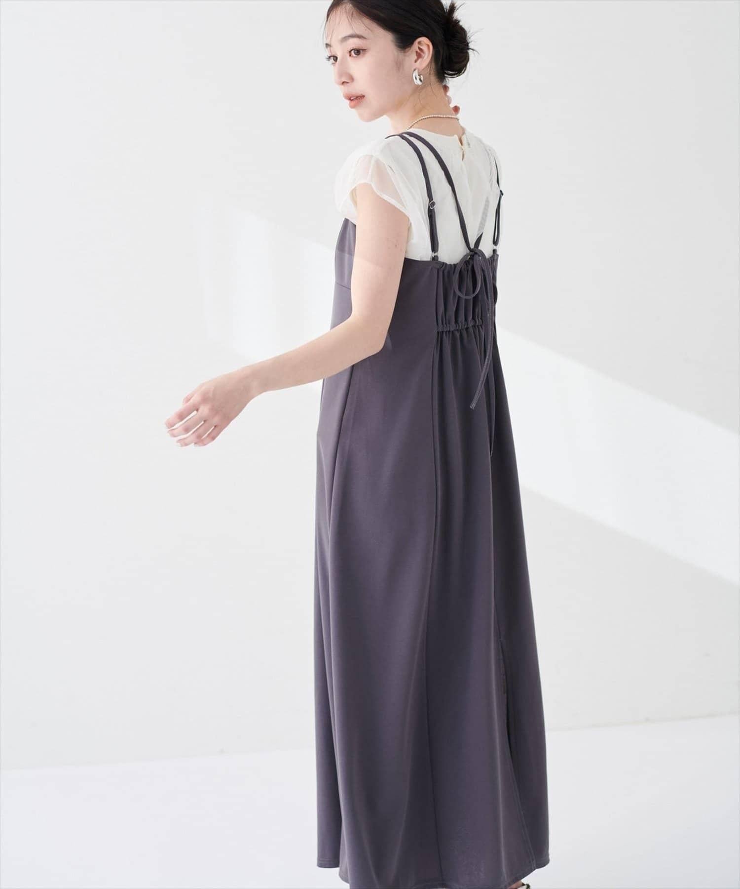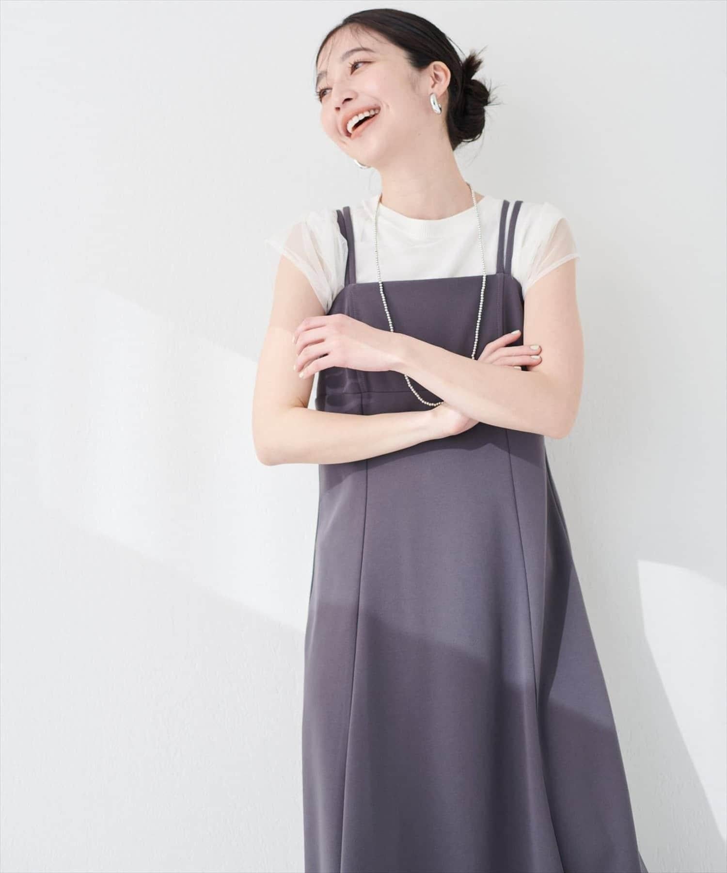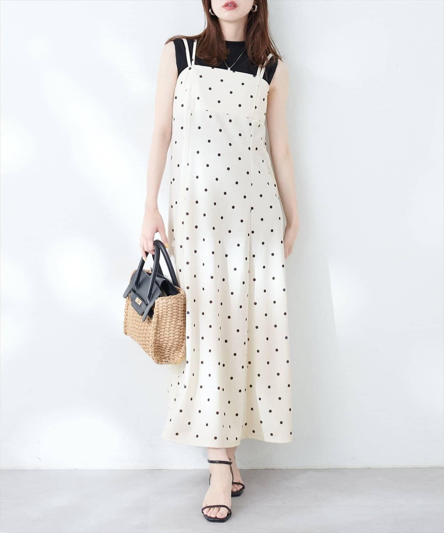 吊帶連衣裙,面料柔軟,質感如剪裁縫製。