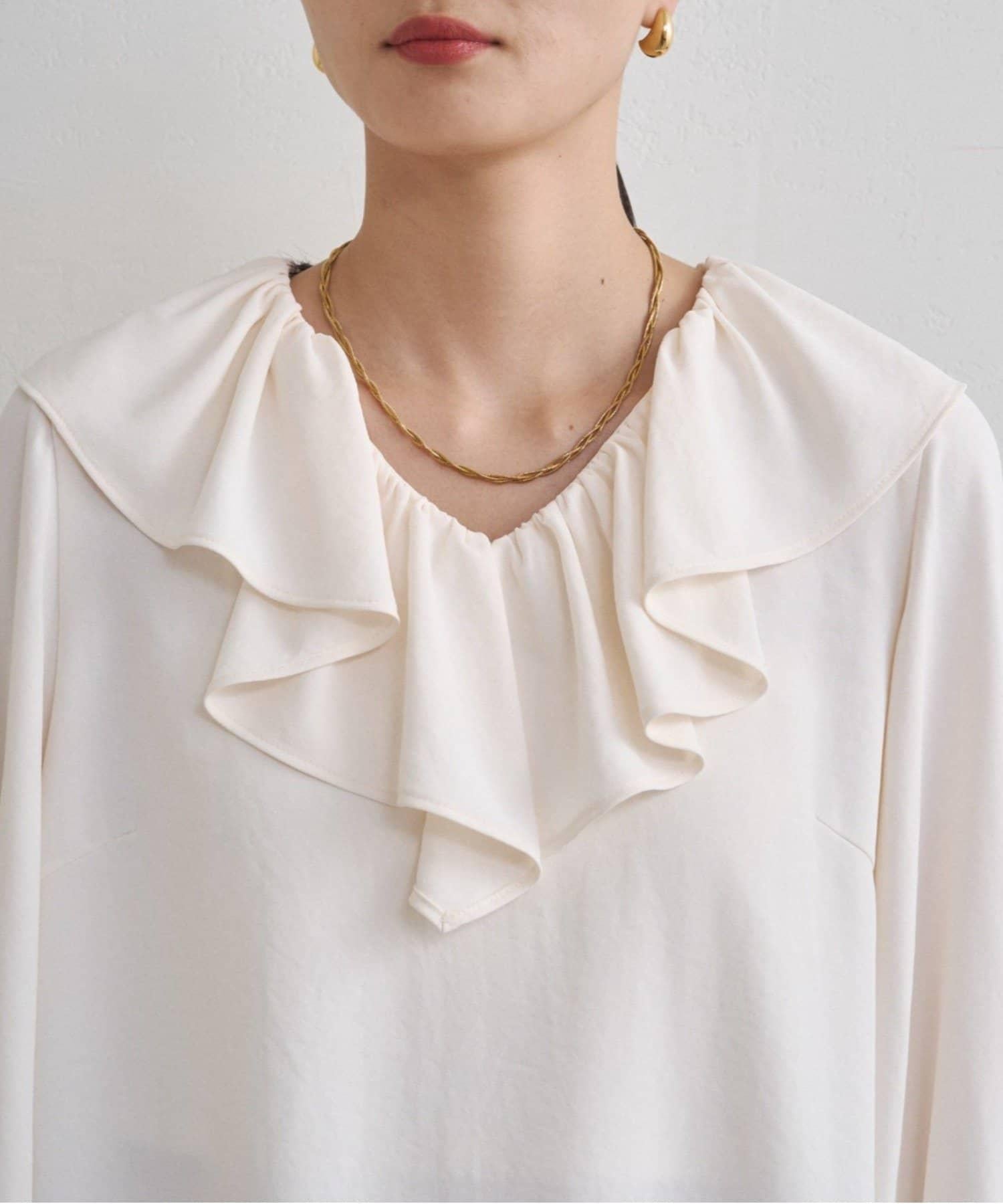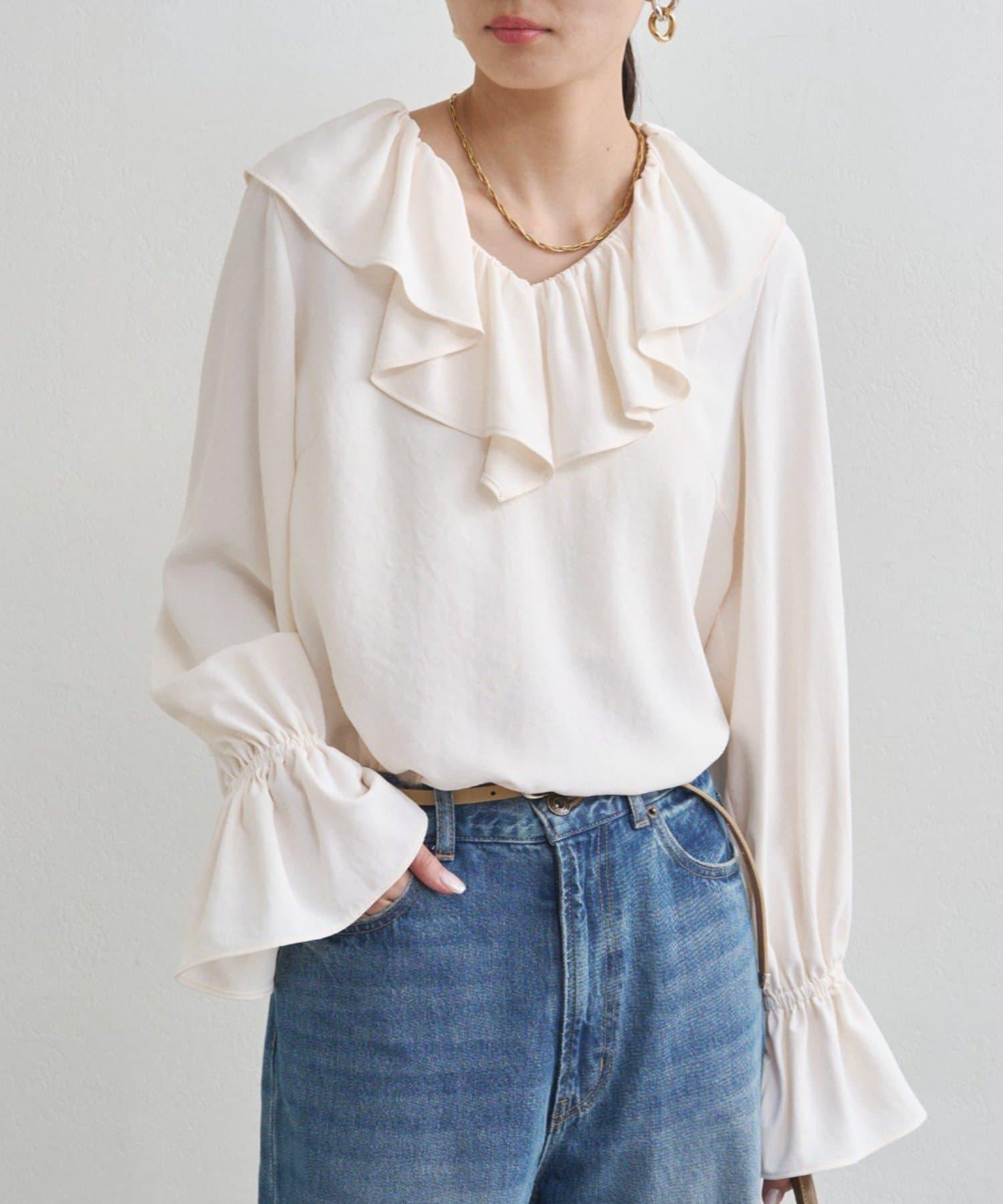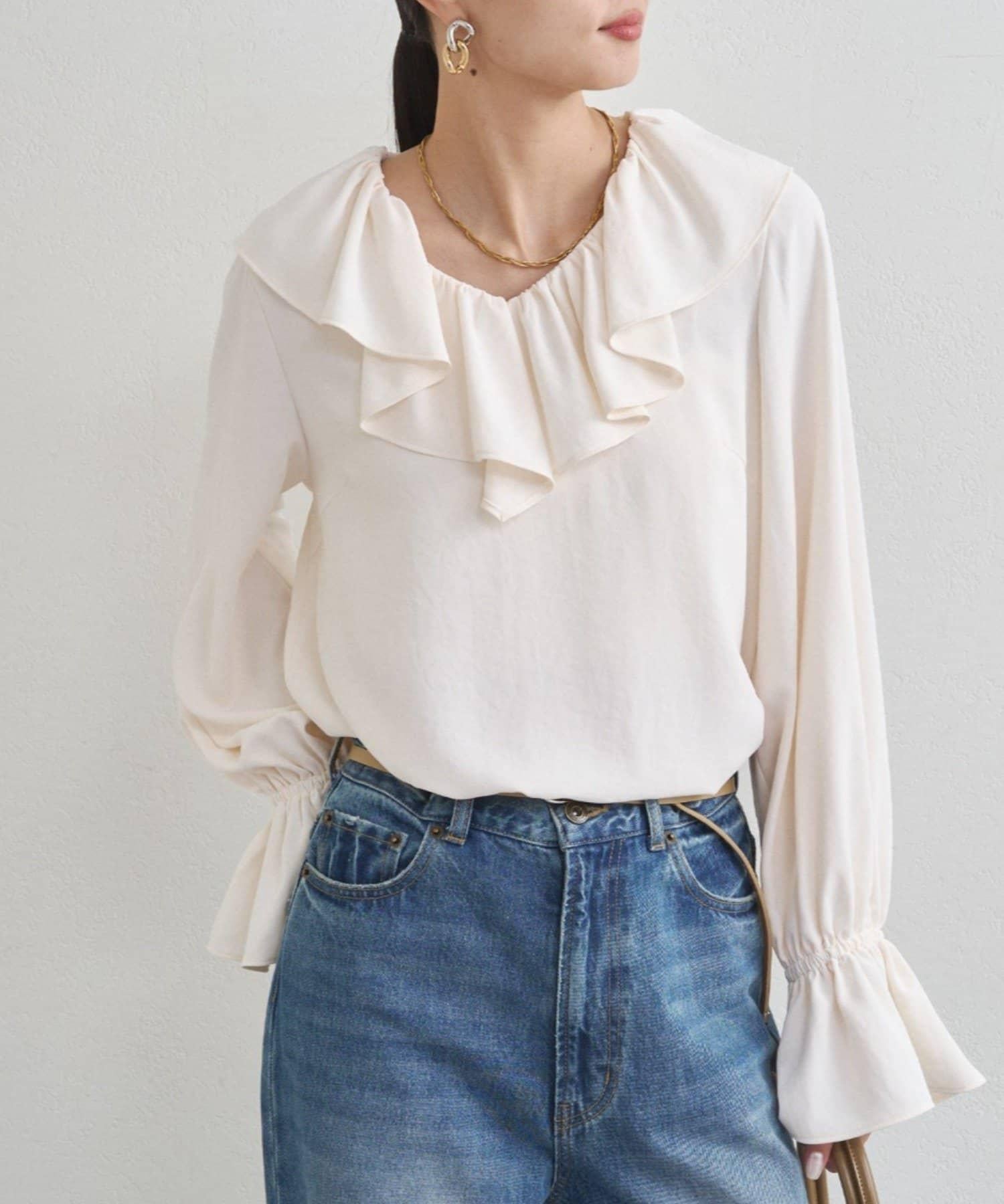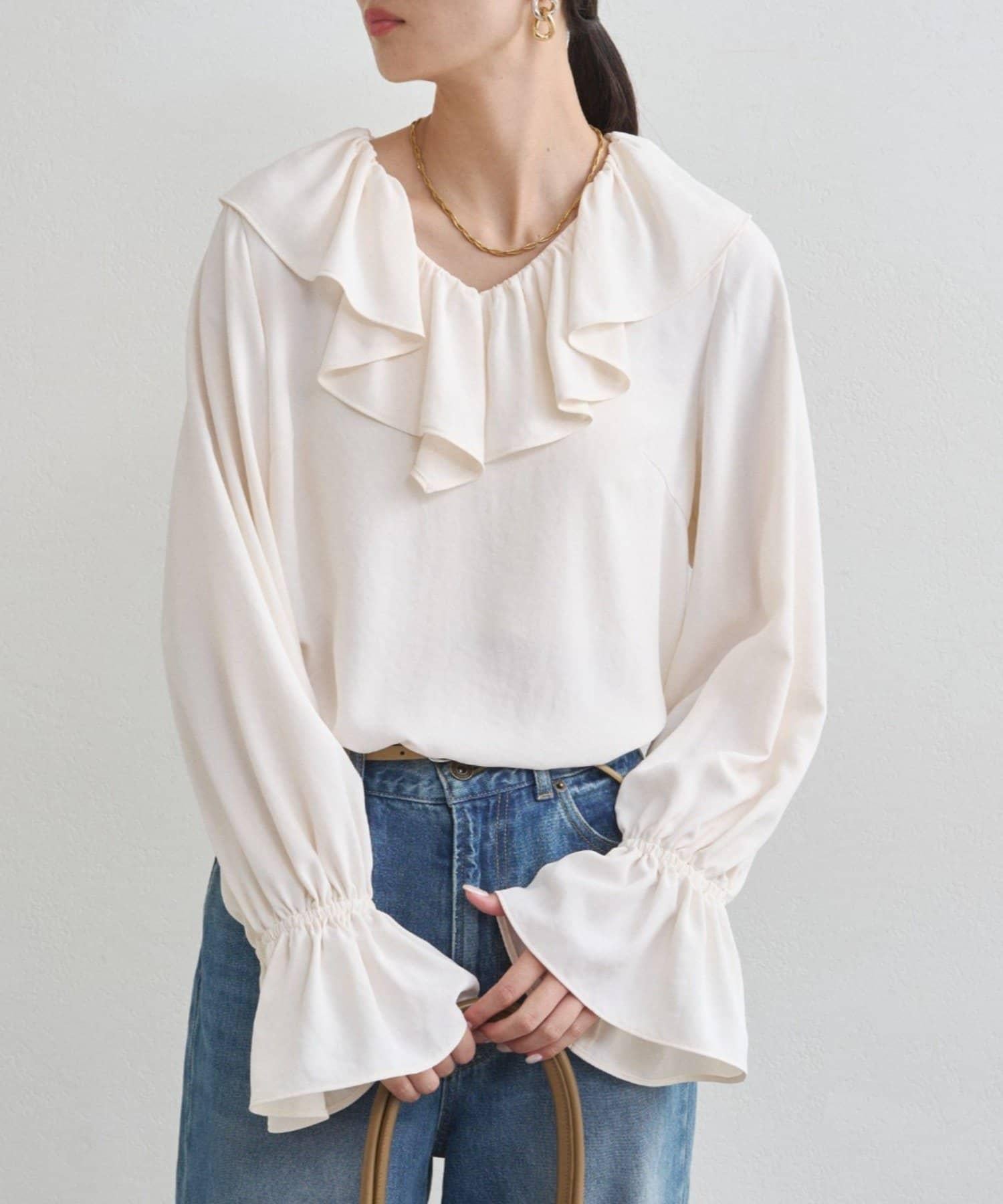 引人注目的上衣,精緻的荷葉邊讓臉部更加迷人。