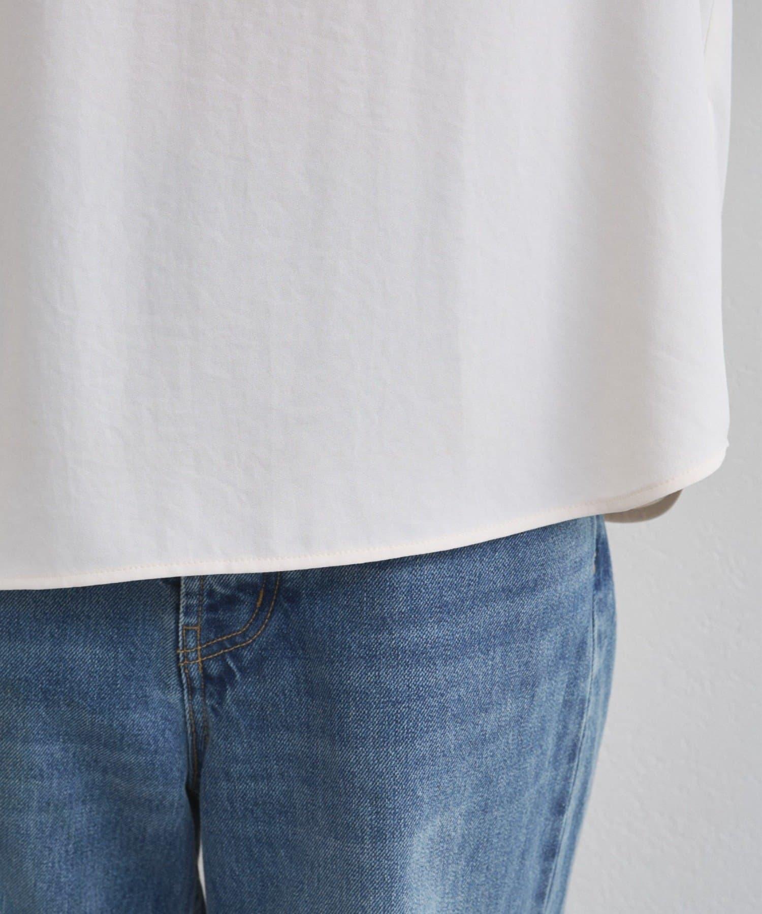 這款襯衫採用喬其紗面料製成,具有精緻的波浪紋理。