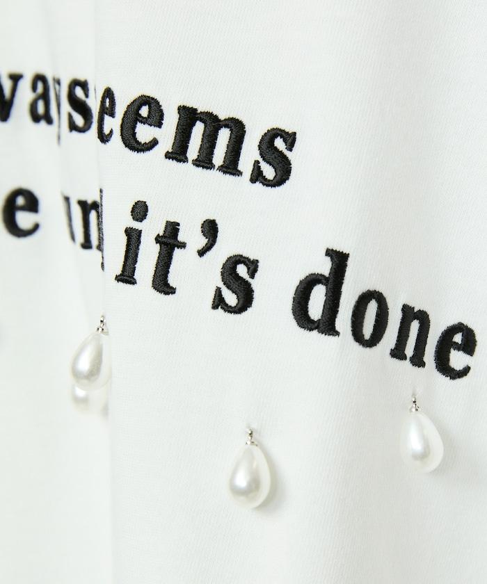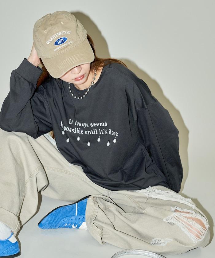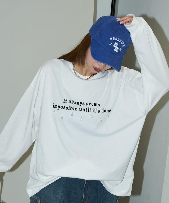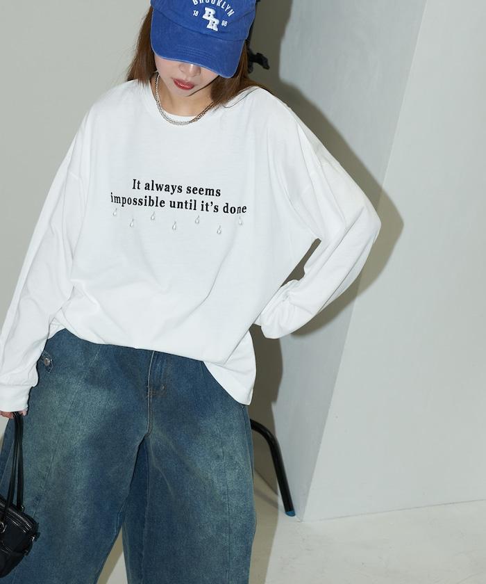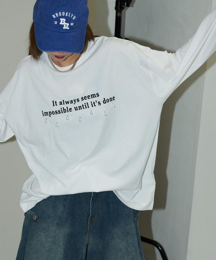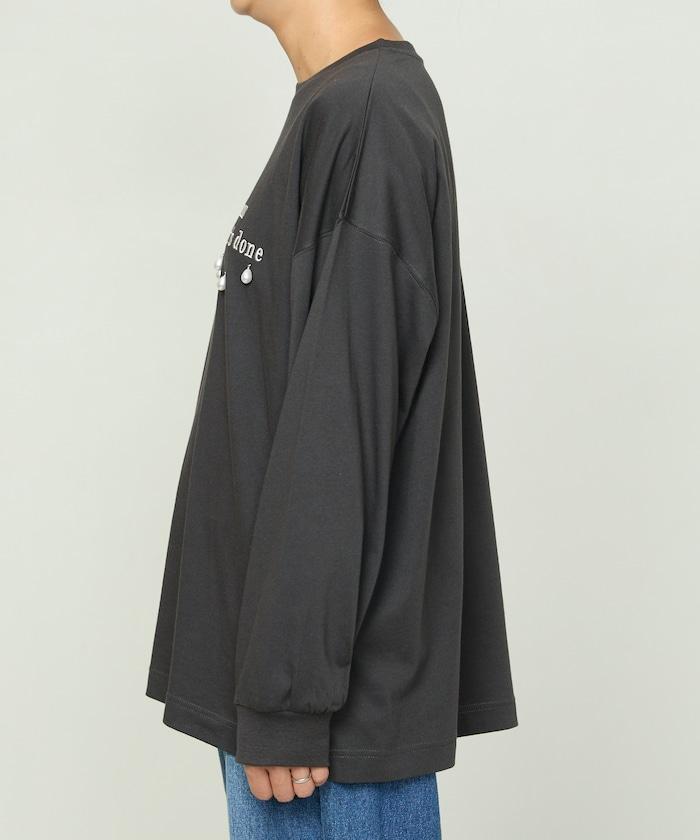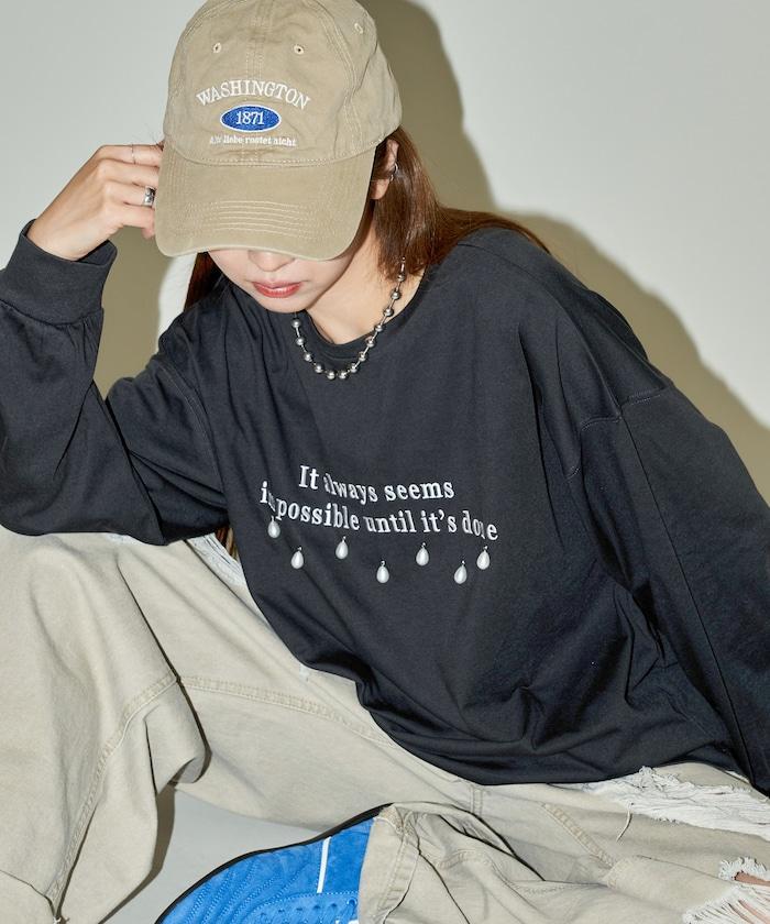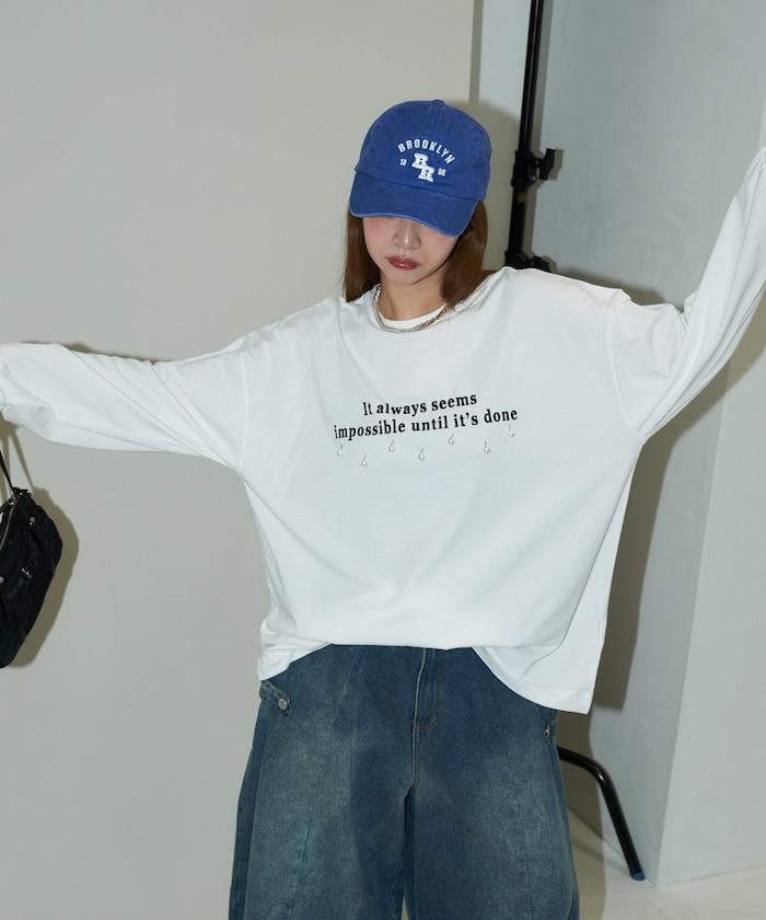 雫 珍珠 配 logo 刺繡 大尺寸T恤