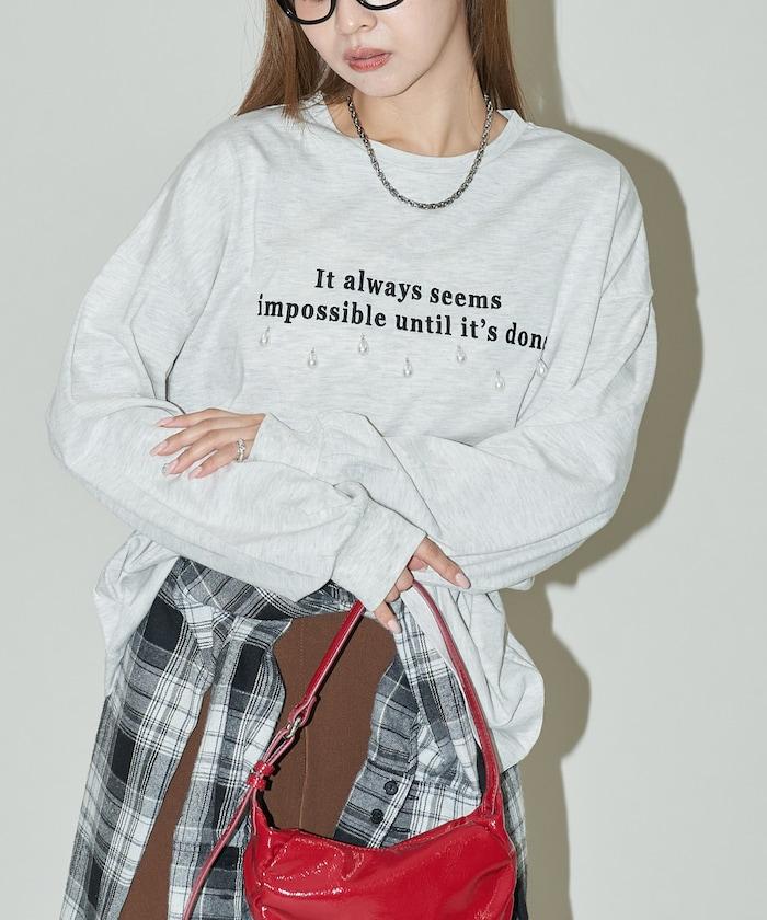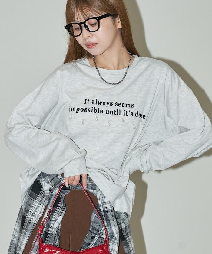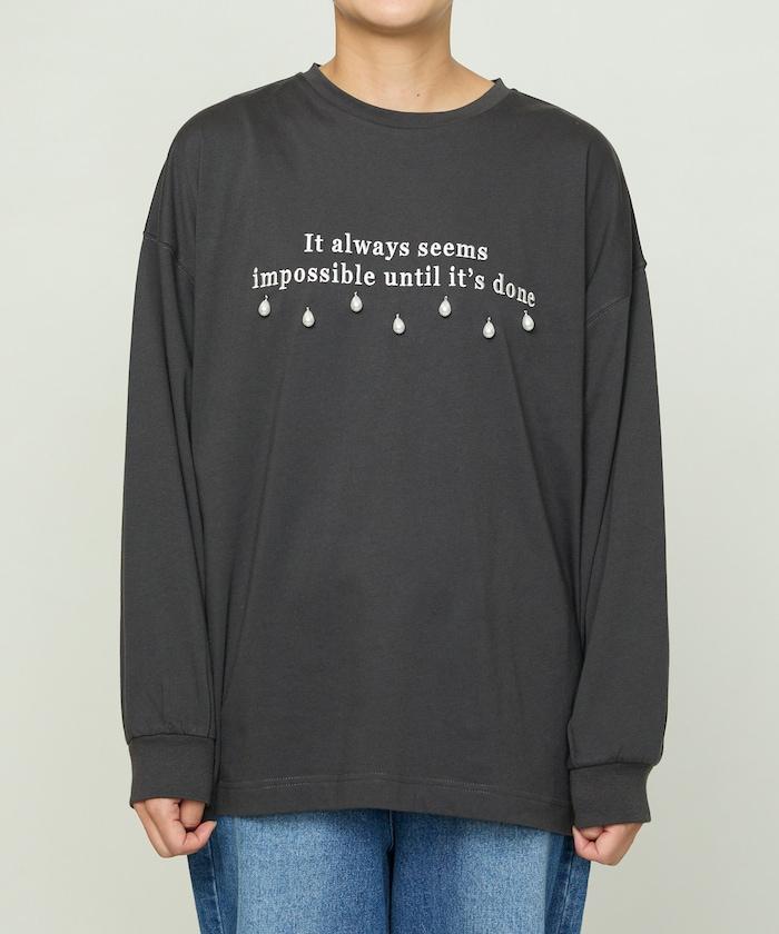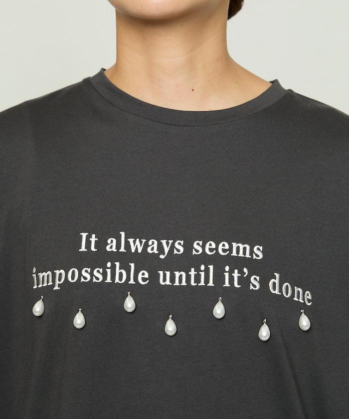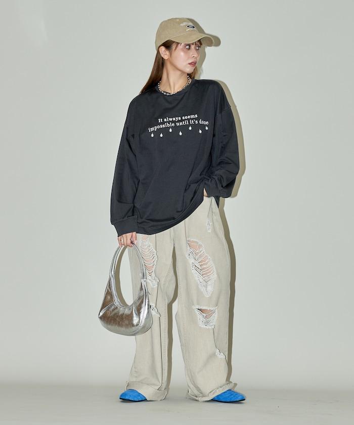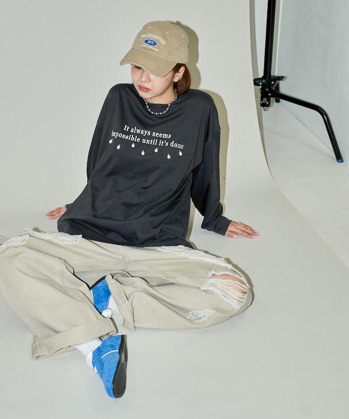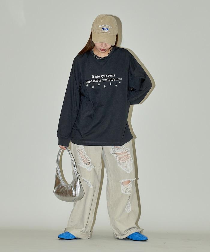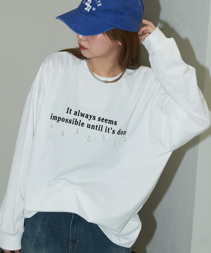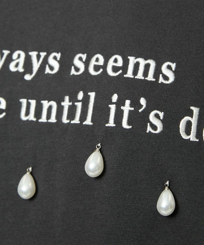 雫 珍珠 配 logo 刺繡 大尺寸T恤