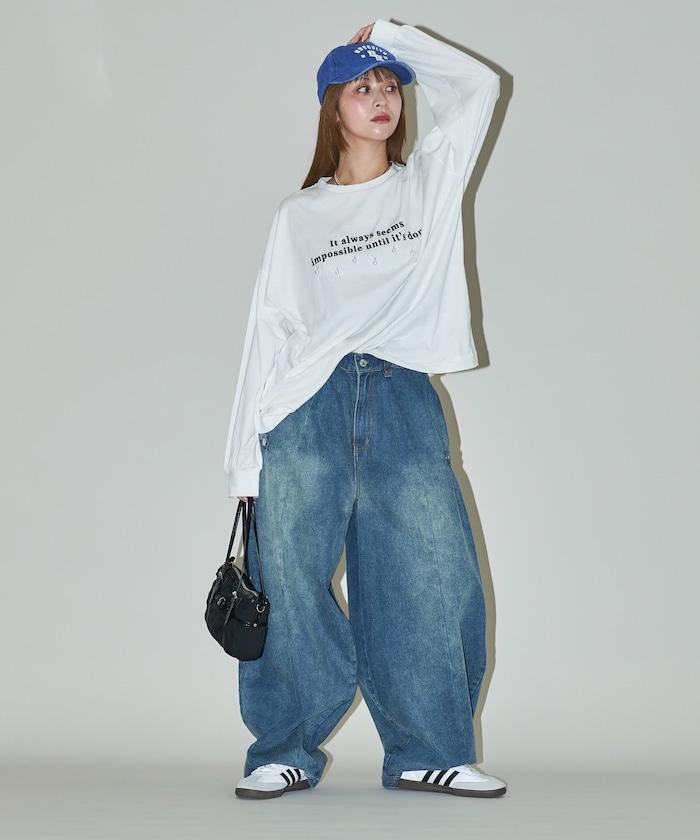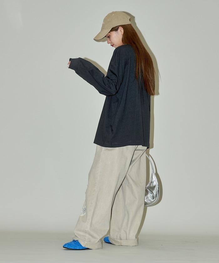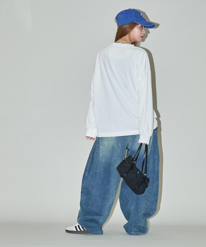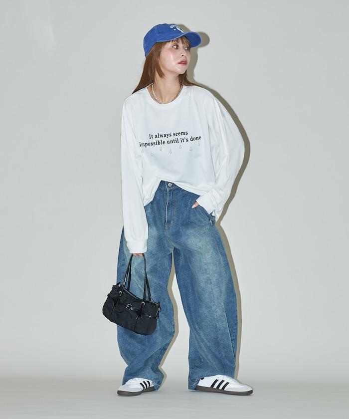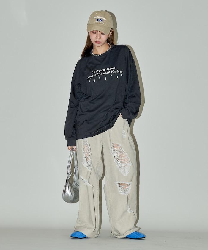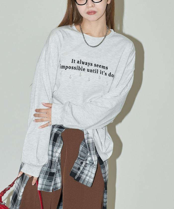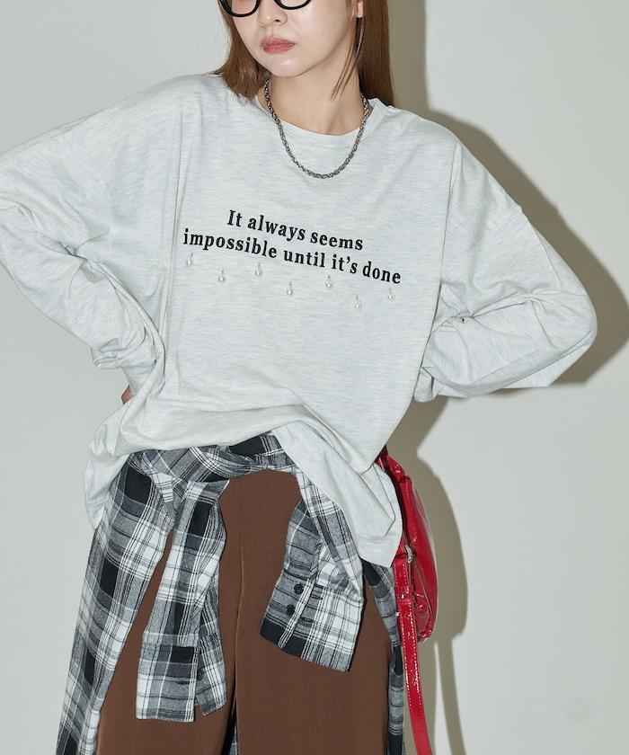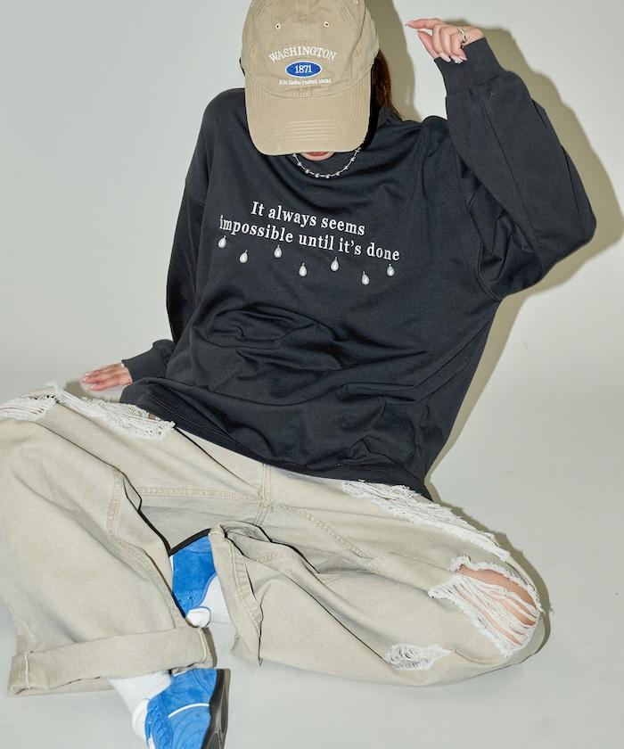雫 珍珠 配 logo 刺繡 大尺寸T恤