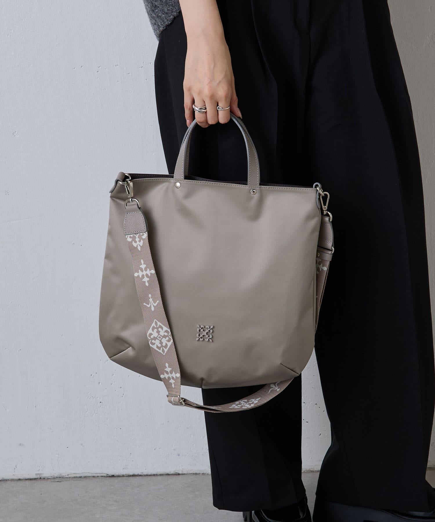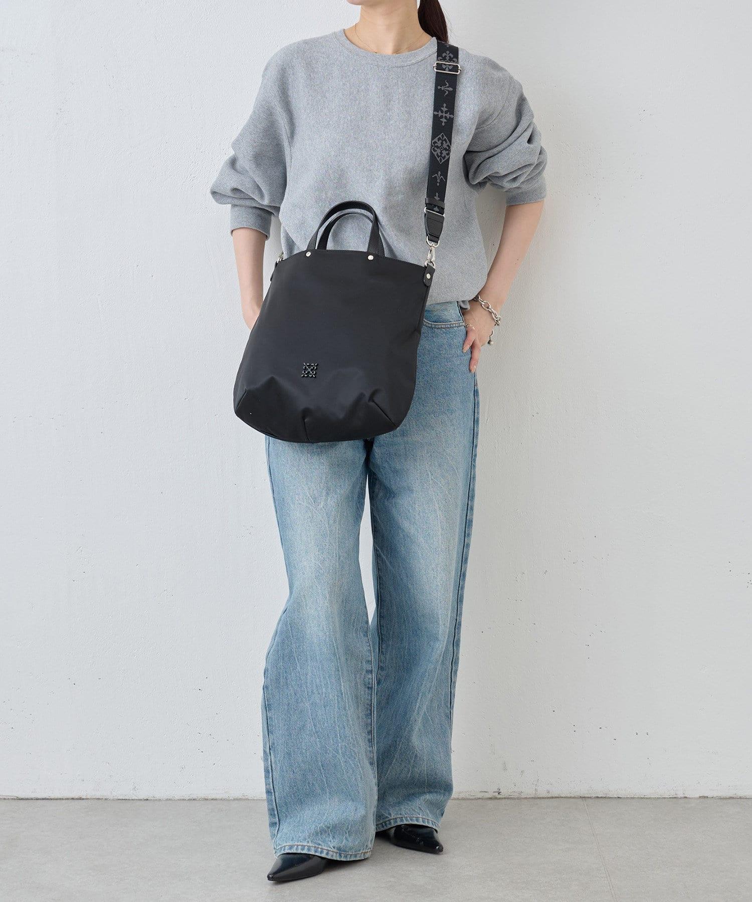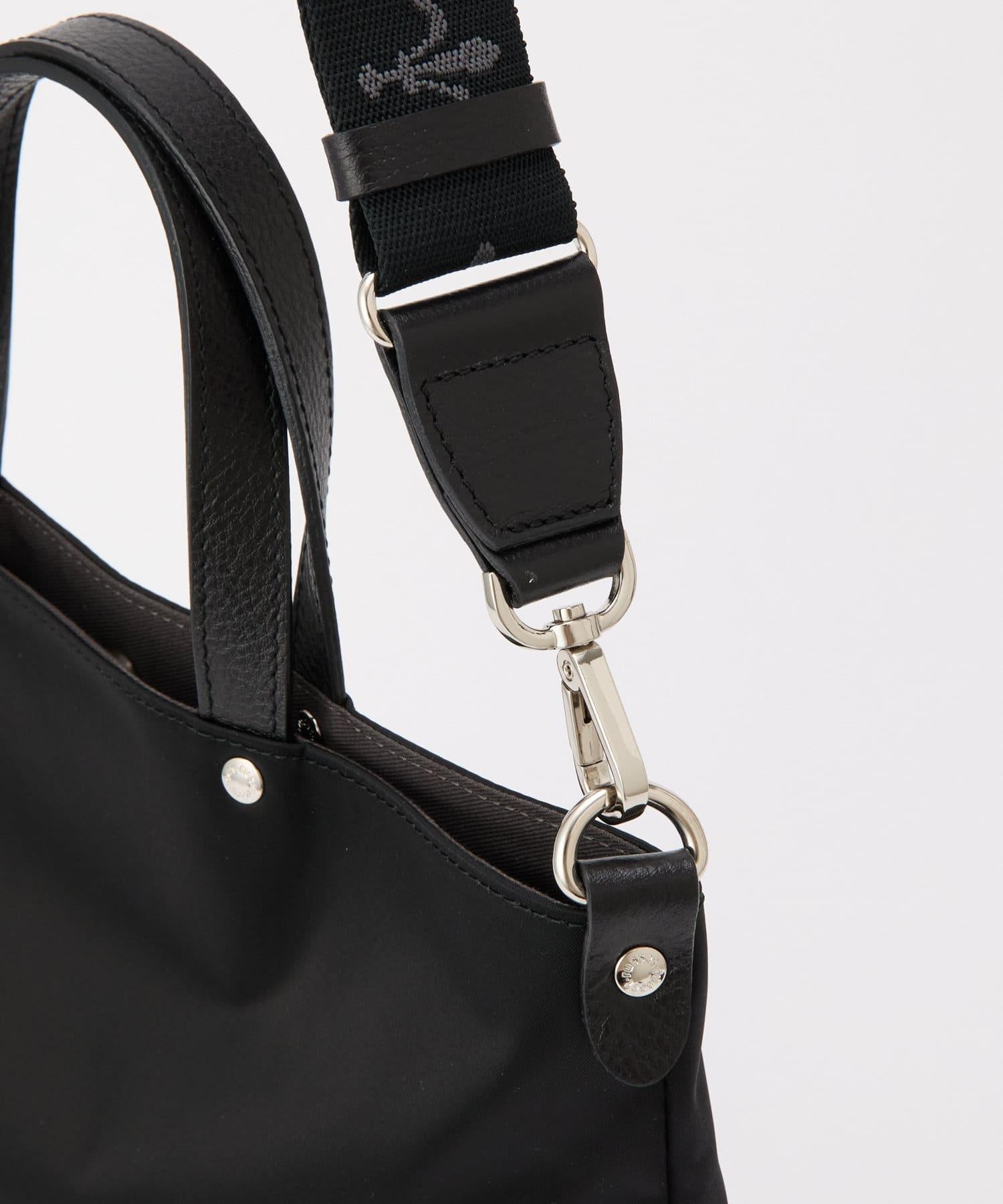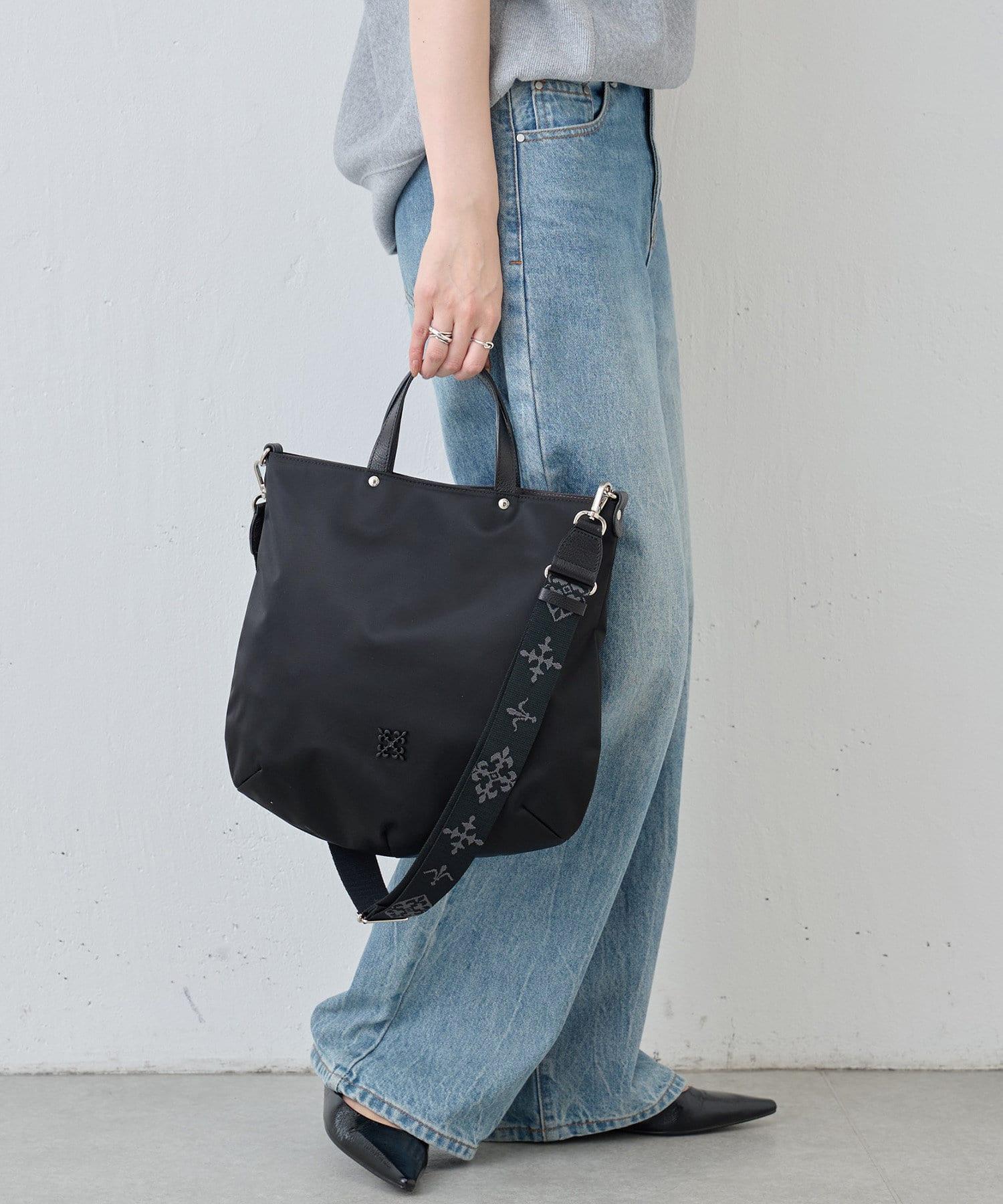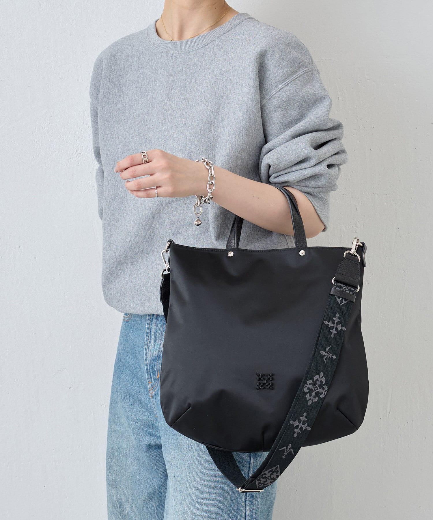 這款手袋輪廓簡潔,配有短手柄、尼龍肩帶和薄夾層設計。