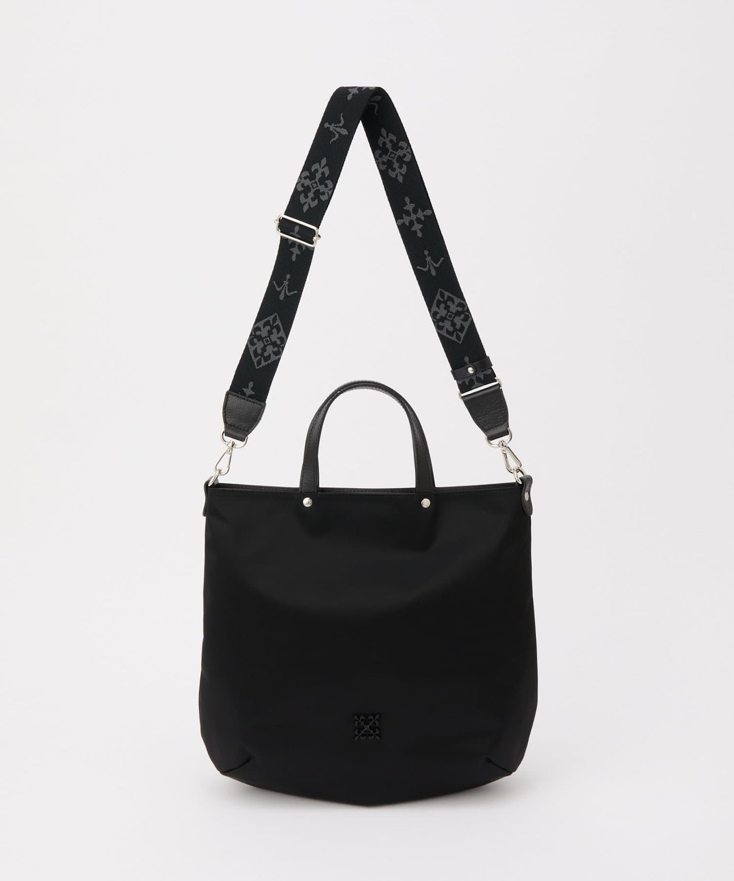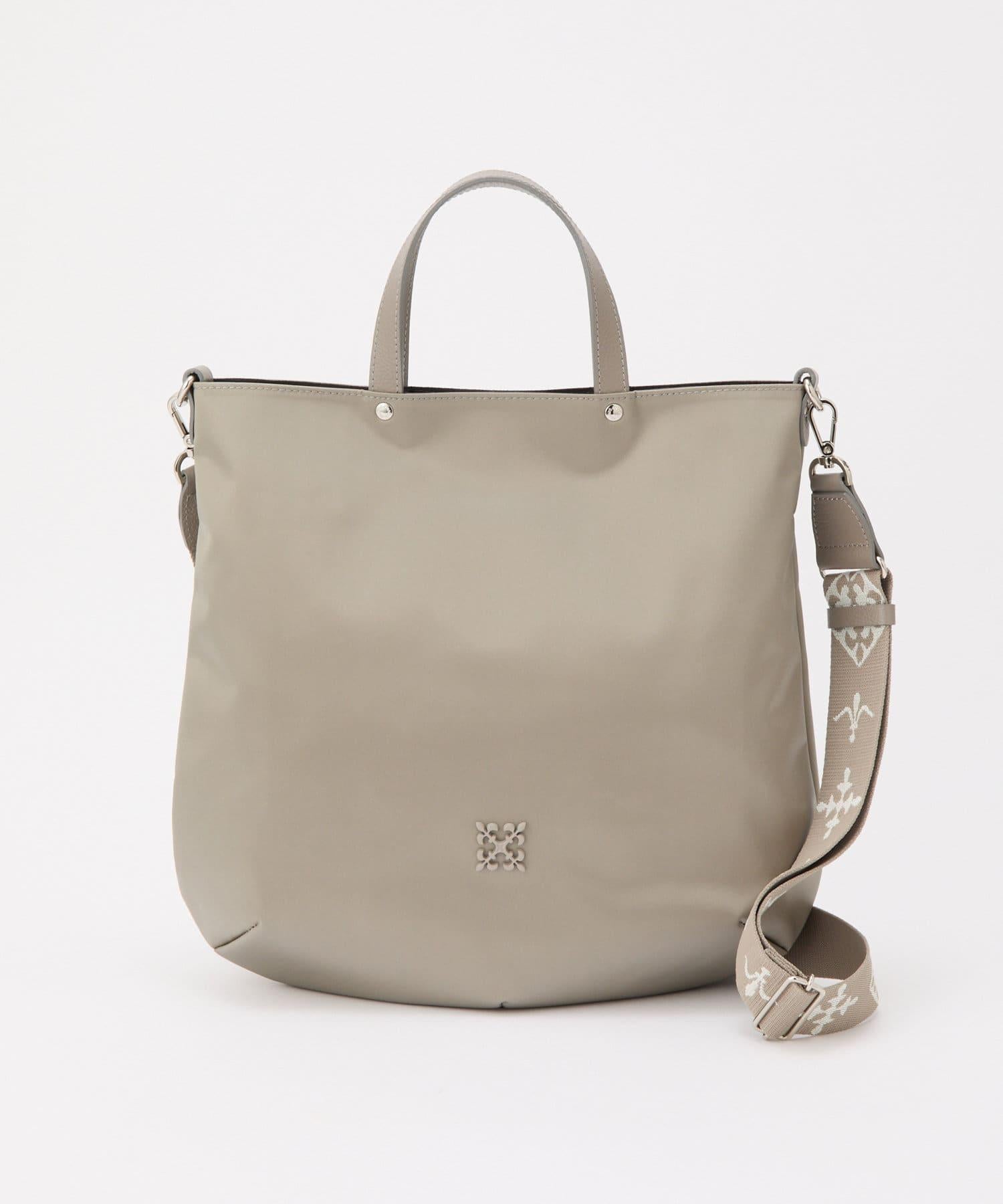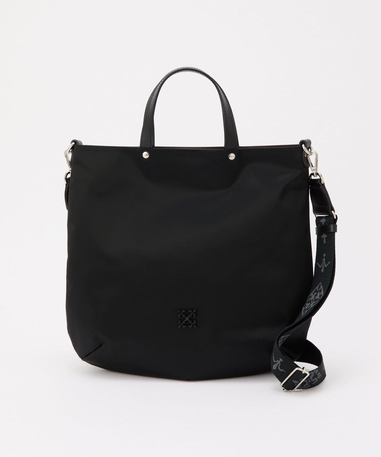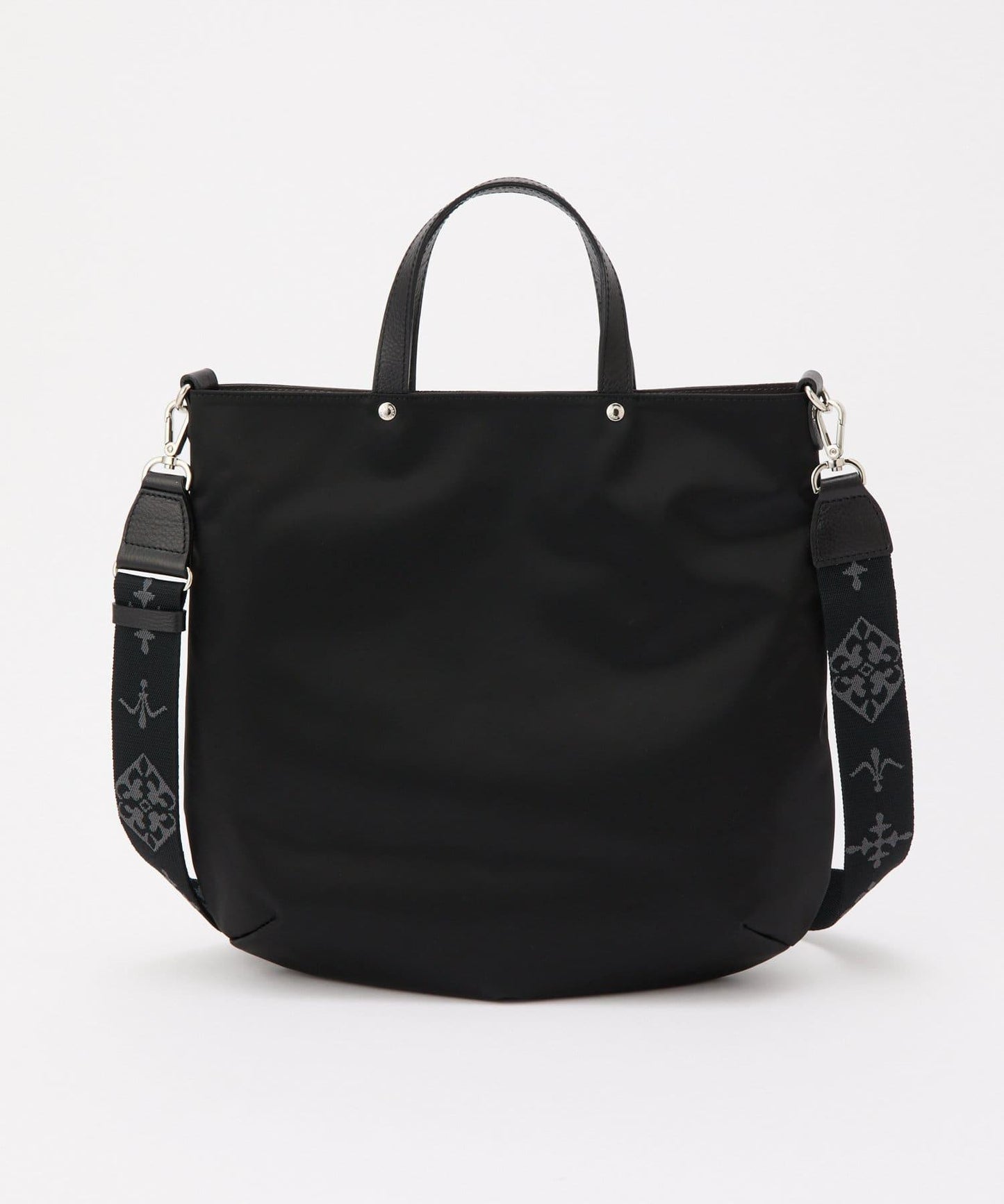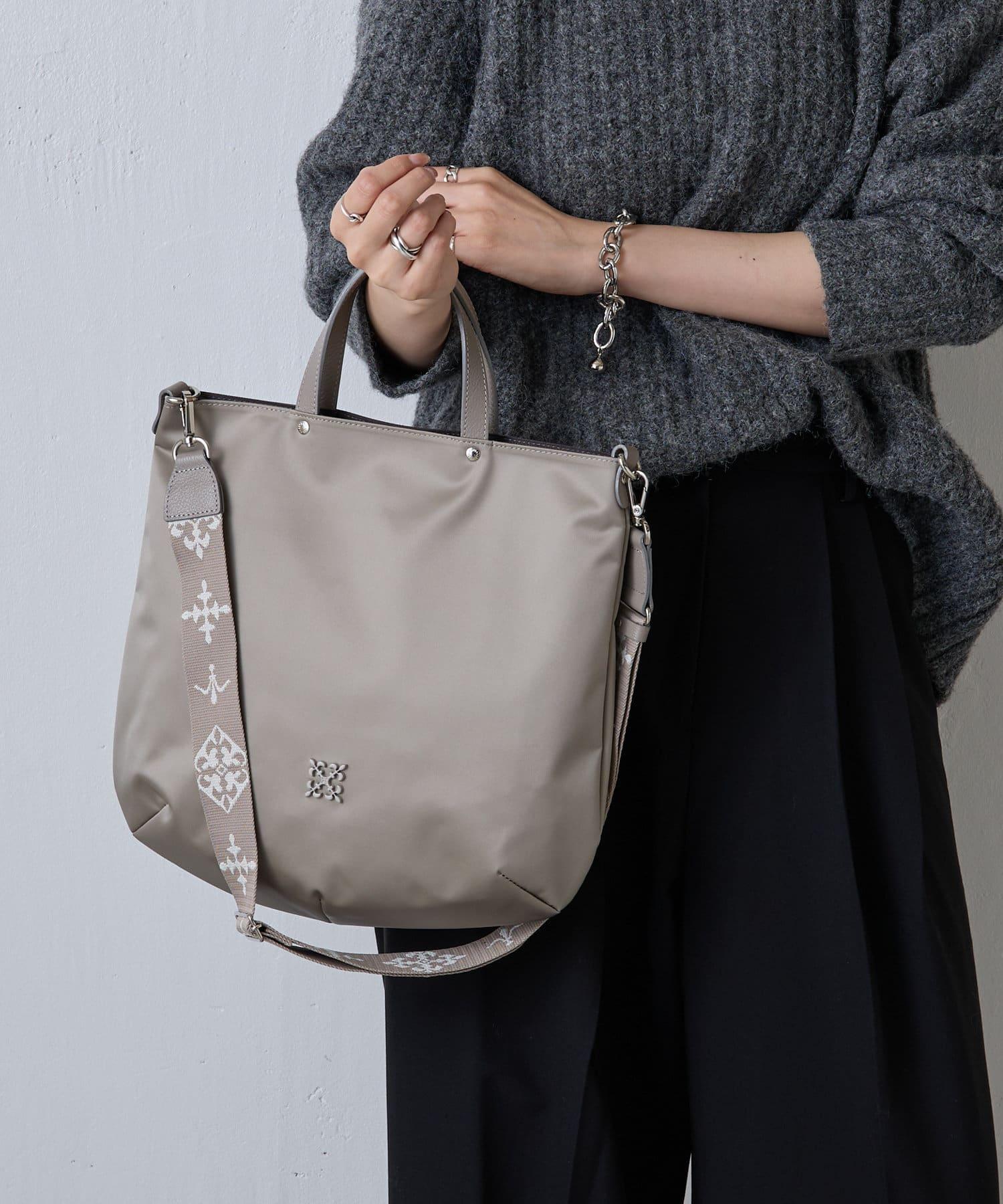 這款手袋輪廓簡潔,配有短手柄、尼龍肩帶和薄夾層設計。