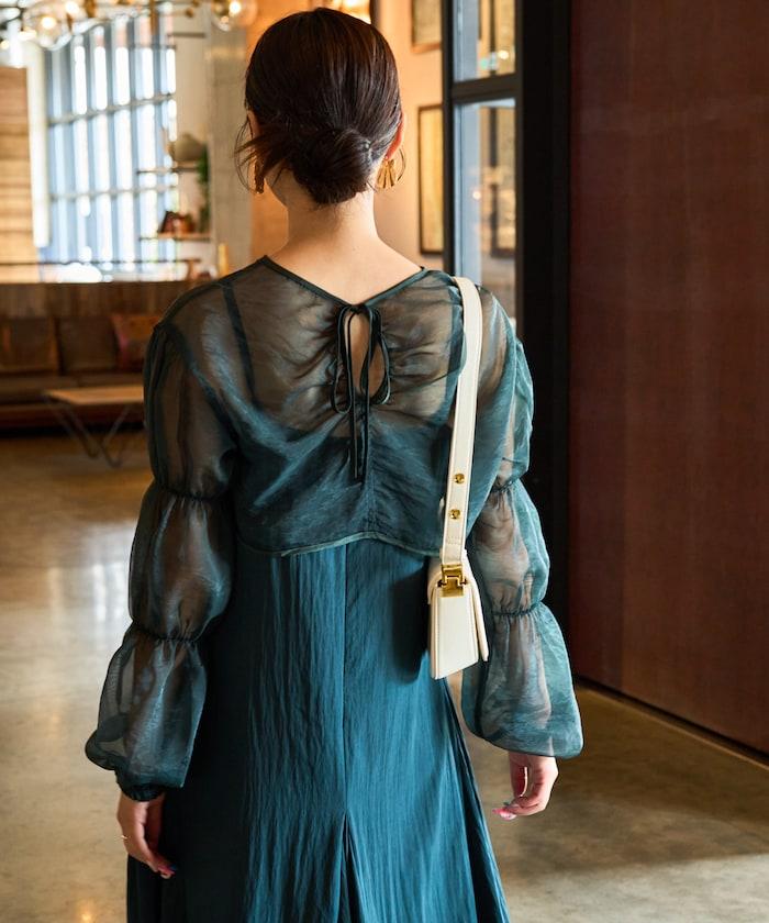 連衣裙背後的絲帶則為其增添了微妙的點睛之筆。