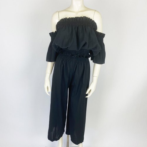 露肩上衣 & 褲子 套裝 黑色[特價] (CT6142BK)