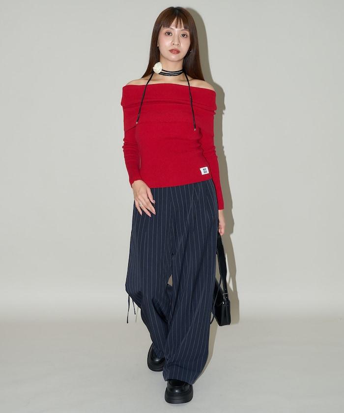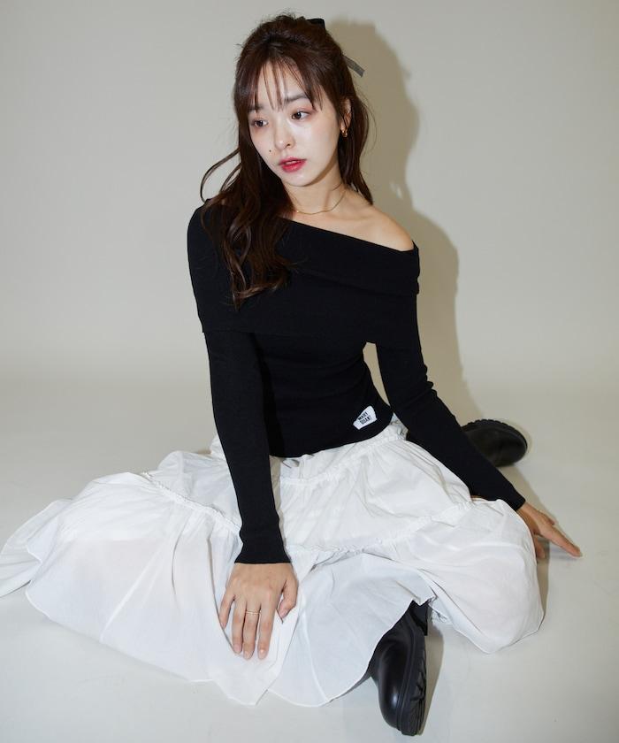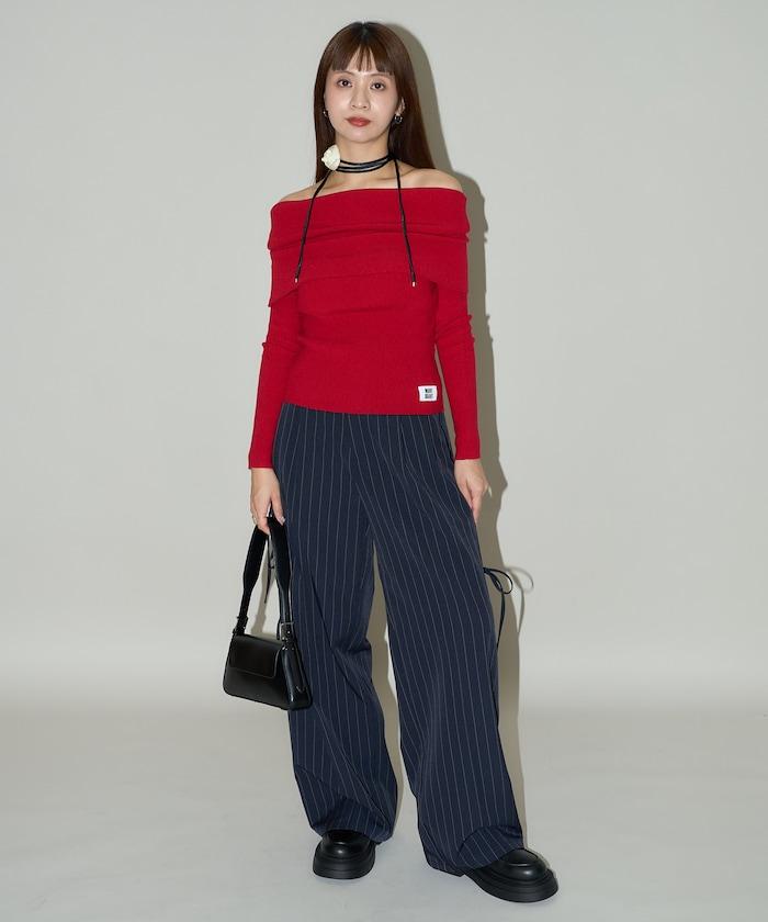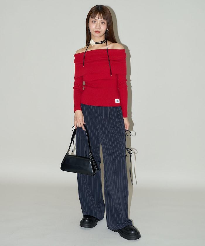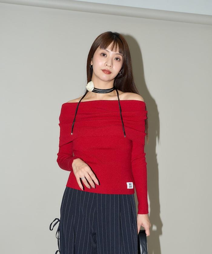 露肩針織衫採用女性化的設計,恰到好處地展現了女性的肌膚。