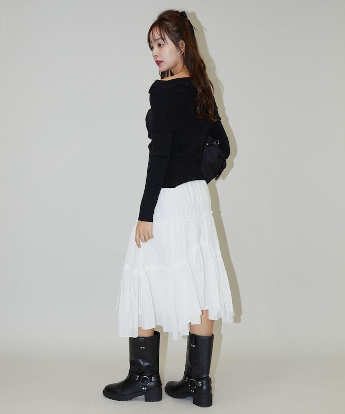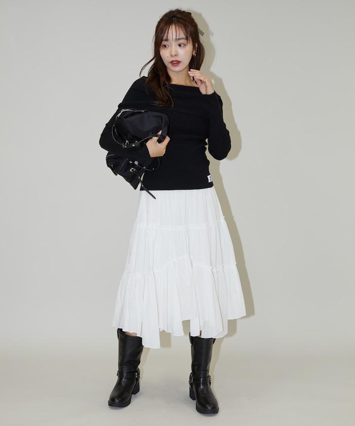 針織衫的設計很合身,因此非常適合搭配喇叭裙和寬大的褲子等寬鬆的下裝!