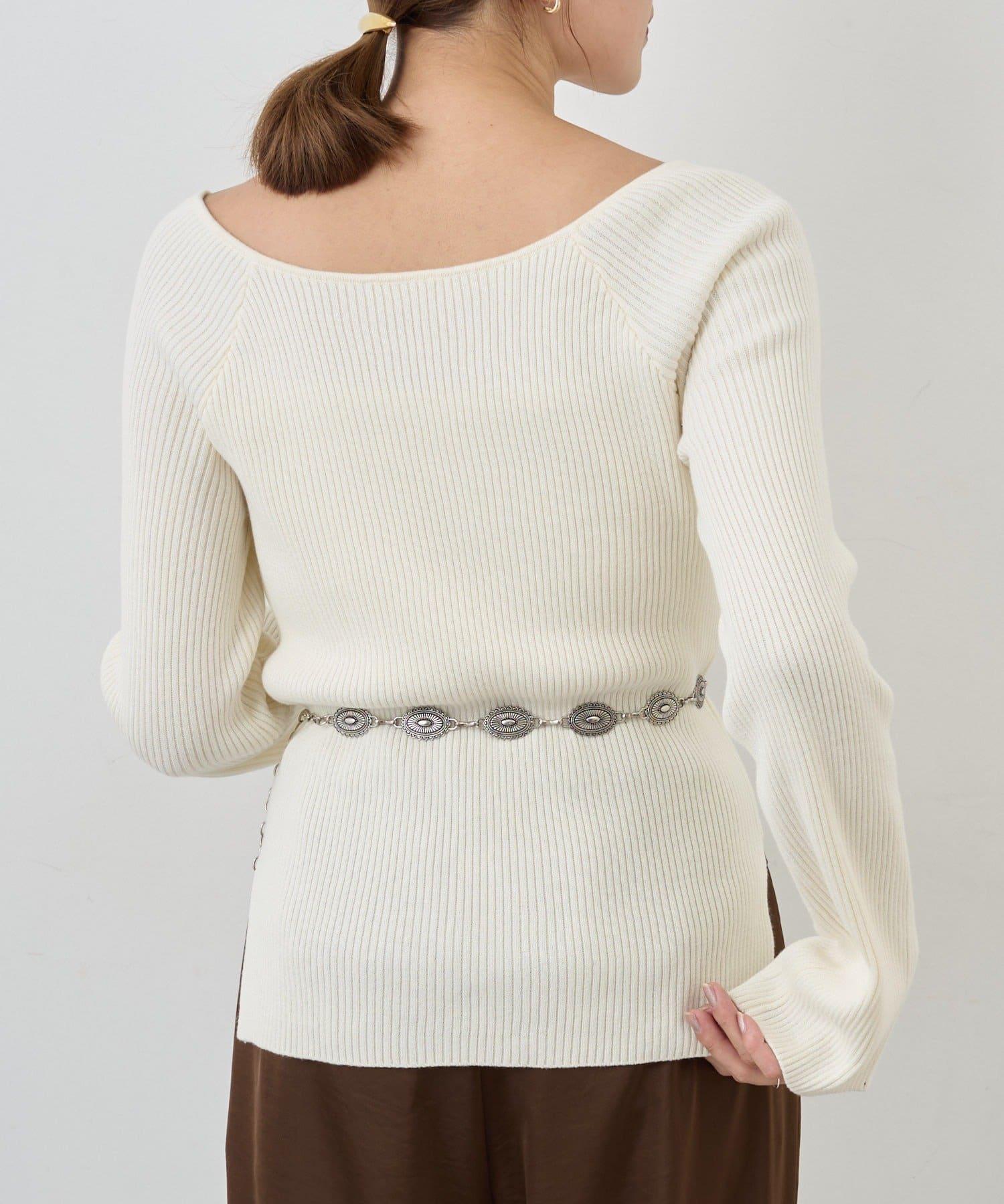 這款針織衫的領口設計細緻入微,讓肩部線條更加優美。