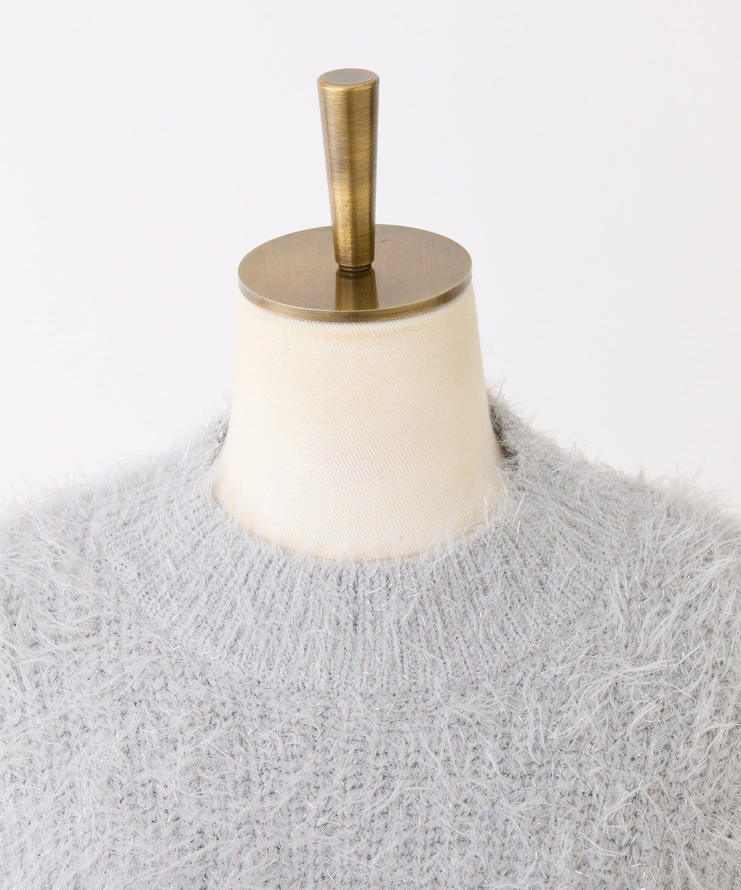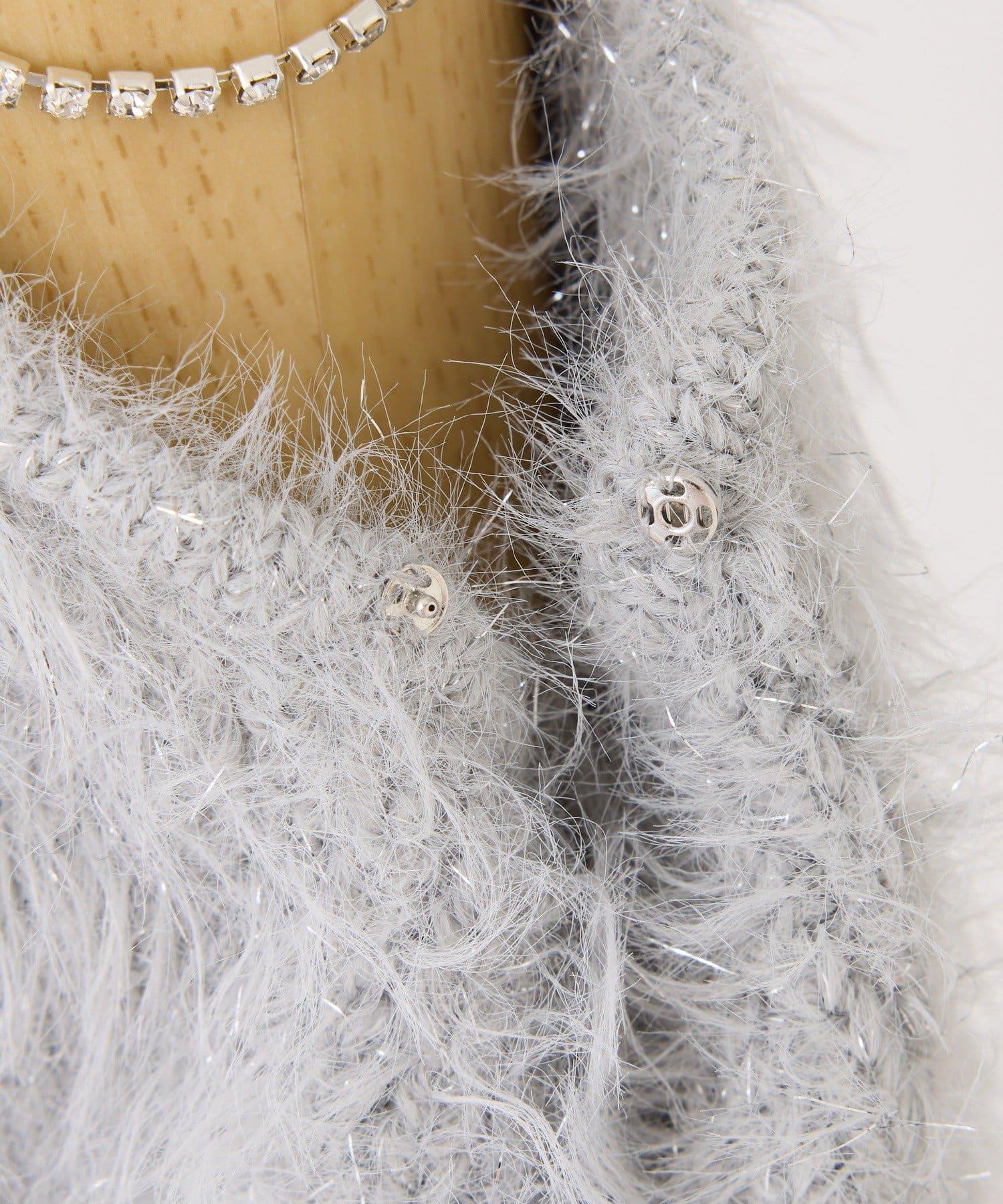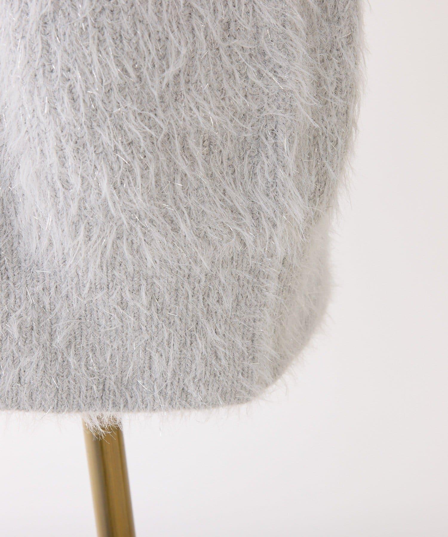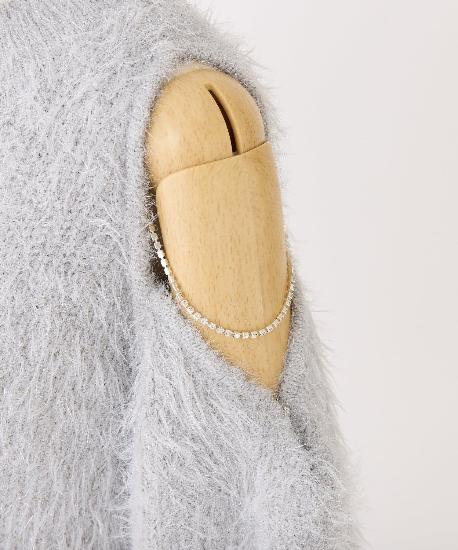 迷你針織連衣裙,採用開肩設計和閃亮鏈條。