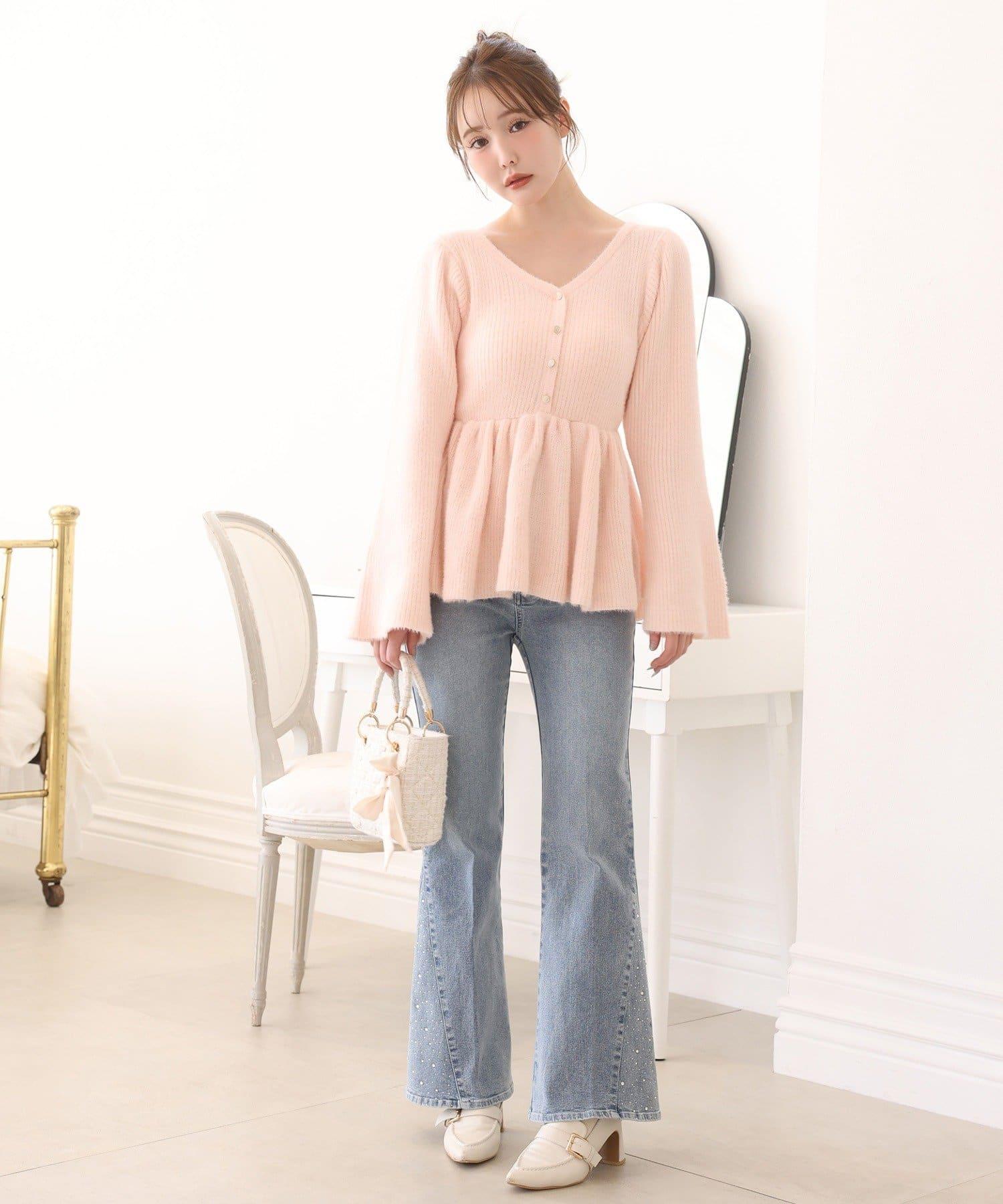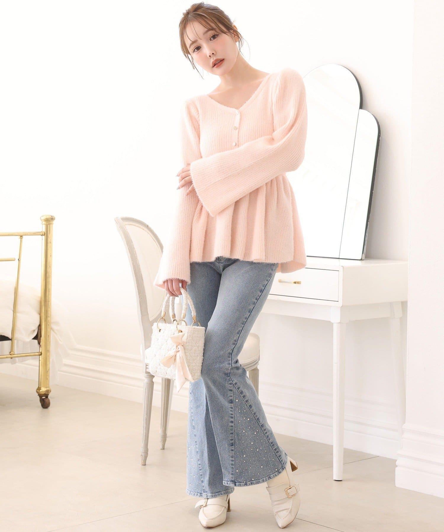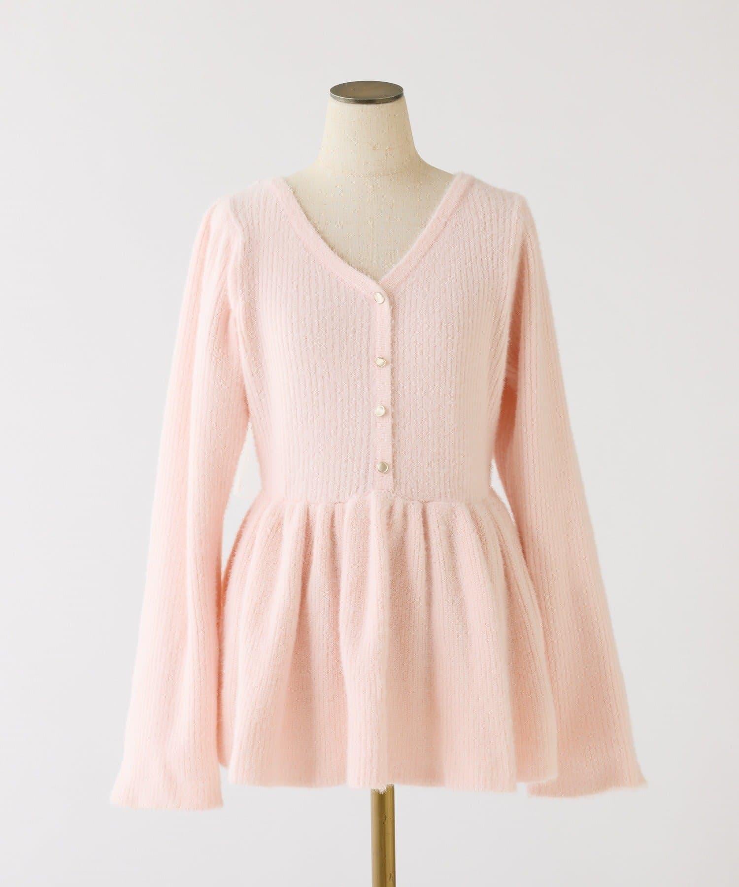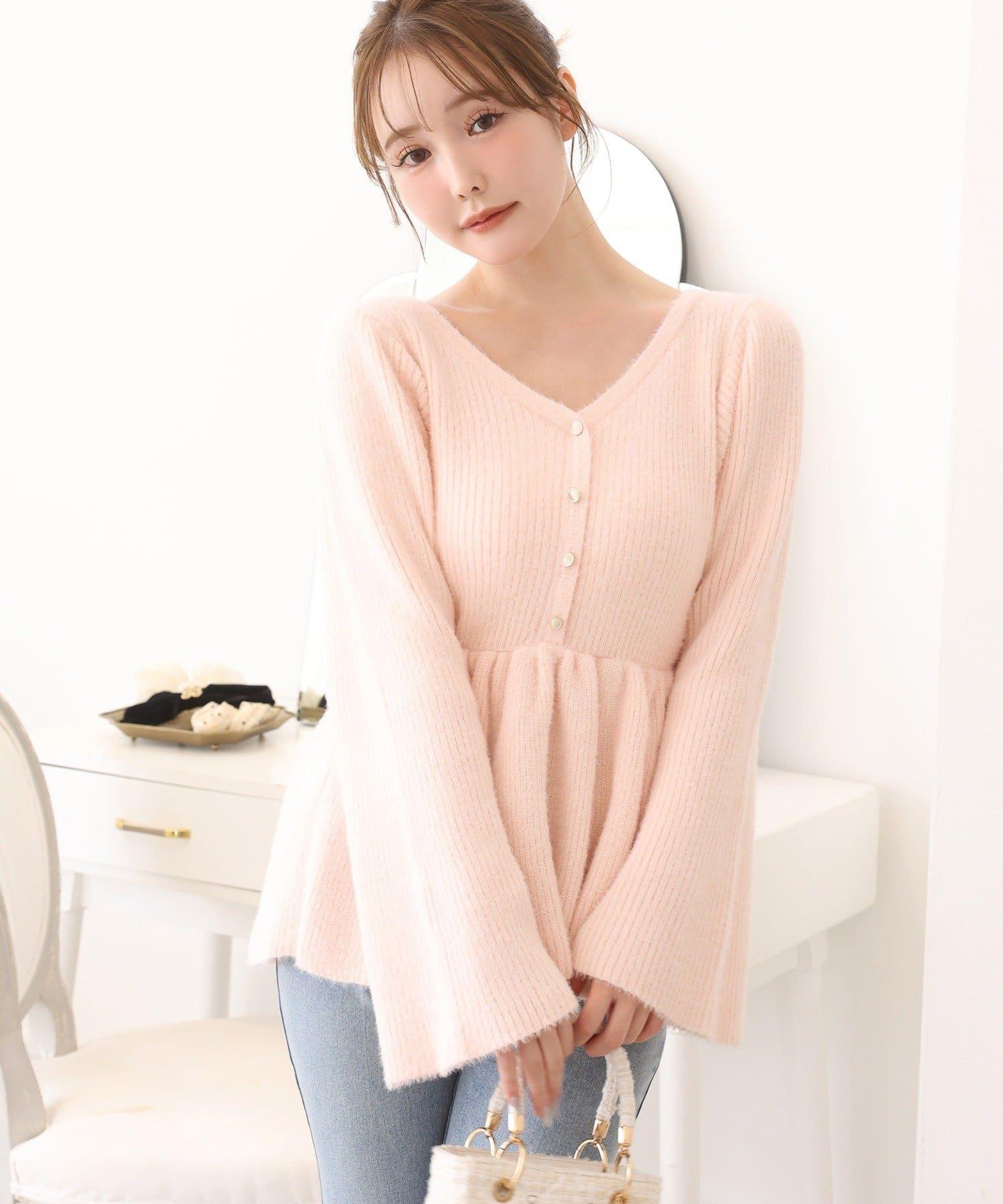 預約商品露背蝴蝶結羽毛裝飾荷葉邊針織衫
