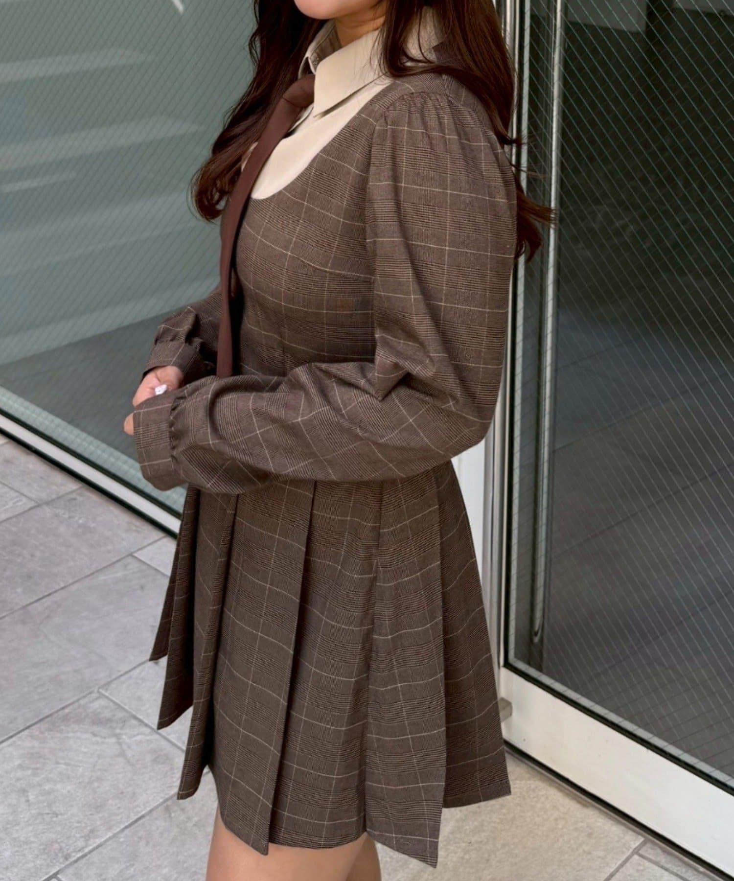 領口整齊的設計營造出優雅的氛圍,即使是迷你長度的領帶也不會過於甜美。