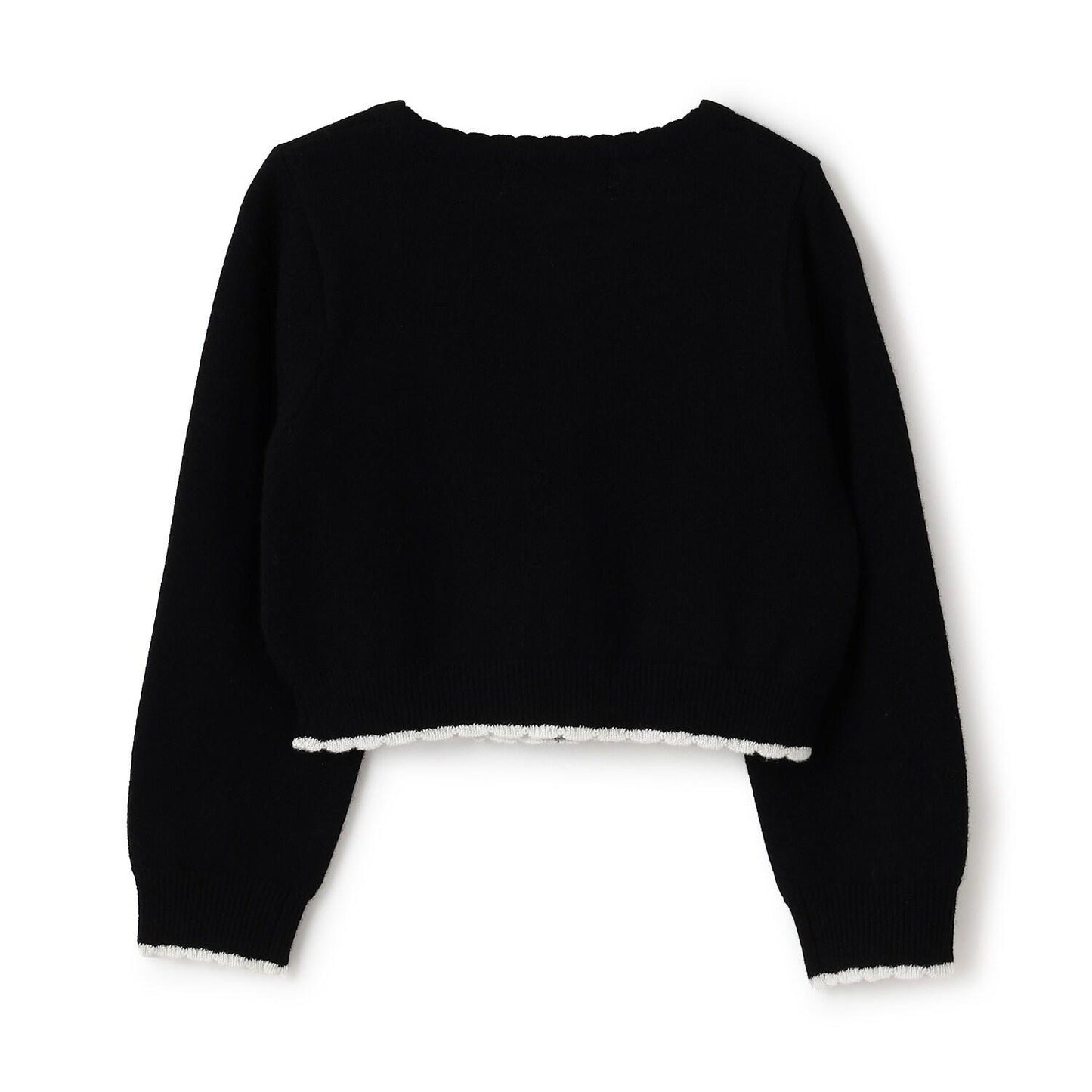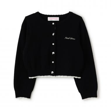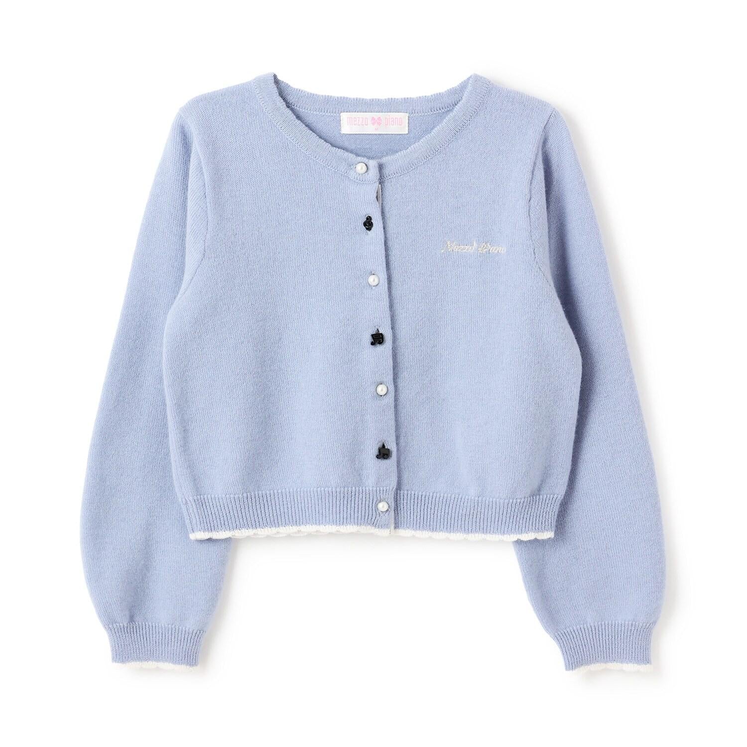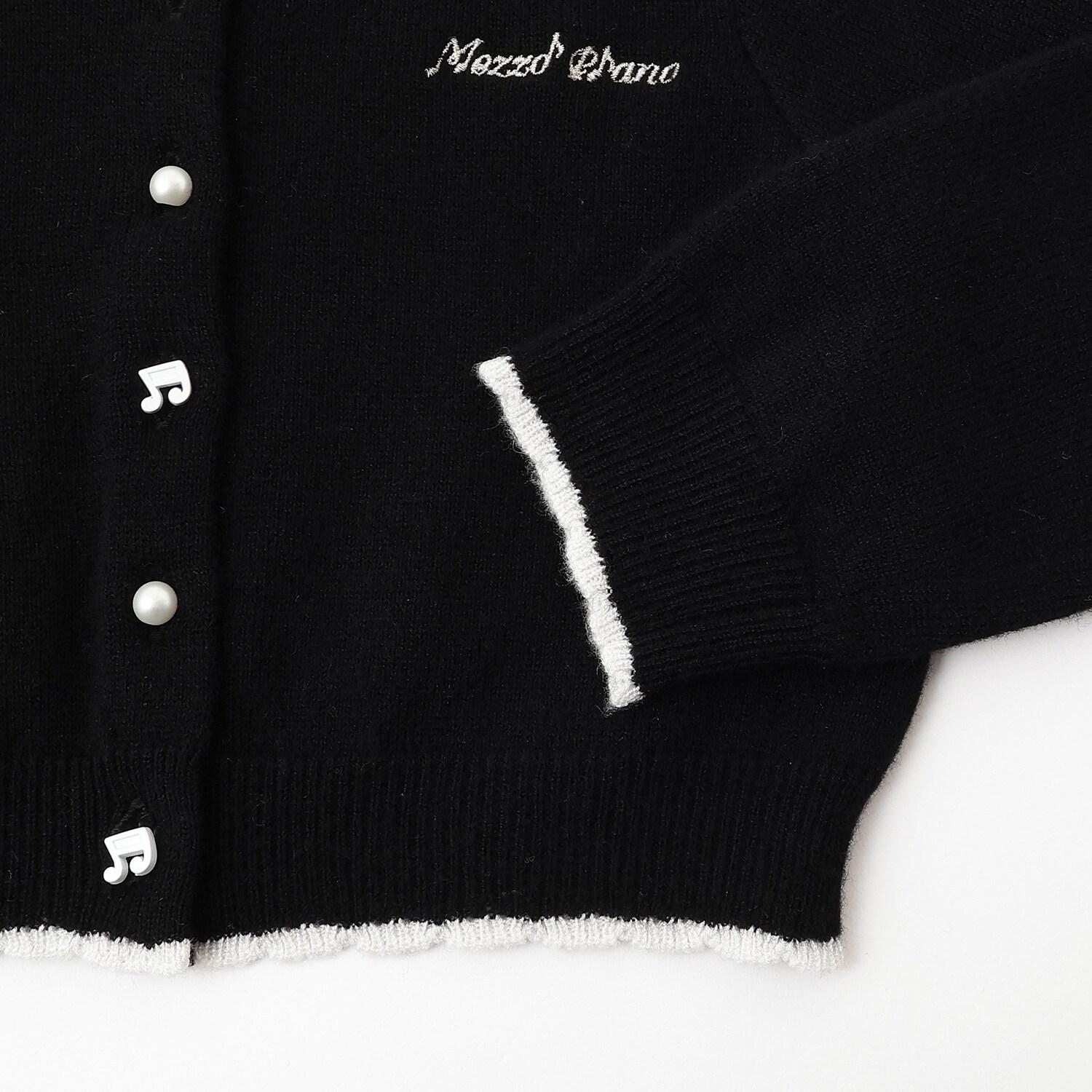 迷人的音符形小紐扣和下襬的迷你荷葉邊。