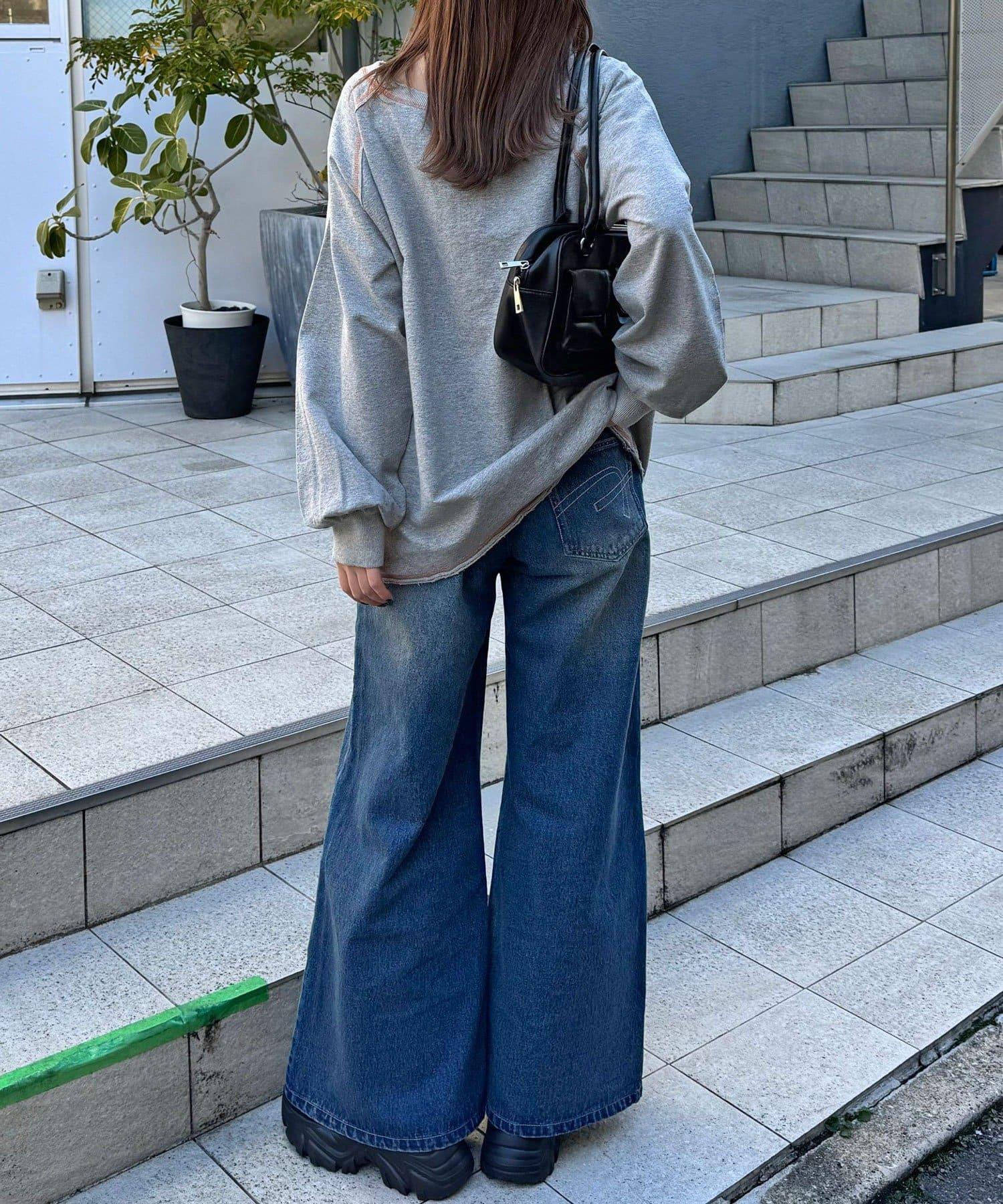 寬鬆廓形的套頭衛衣搭配寬牛仔褲,打造出街頭風格的造型。