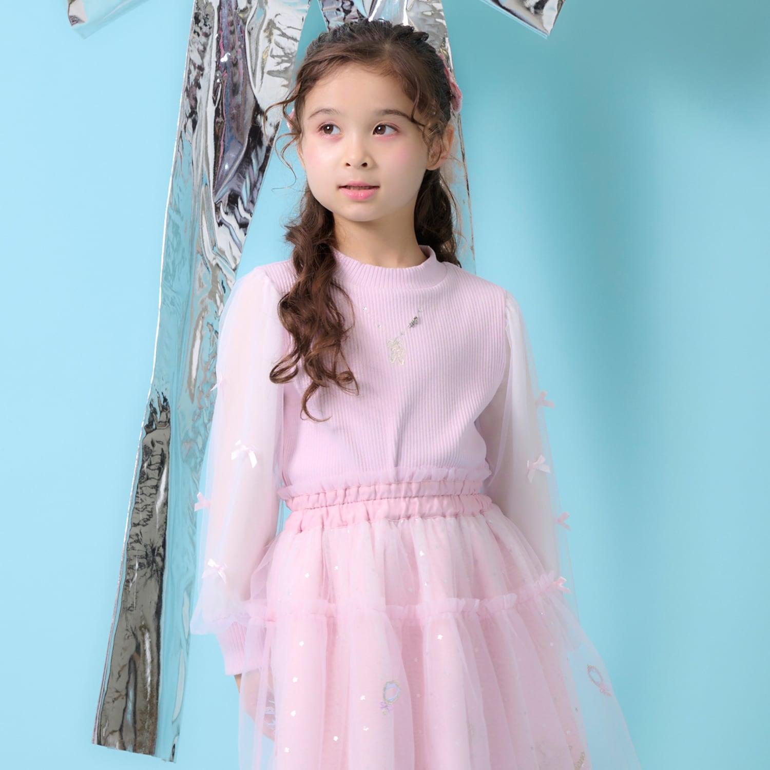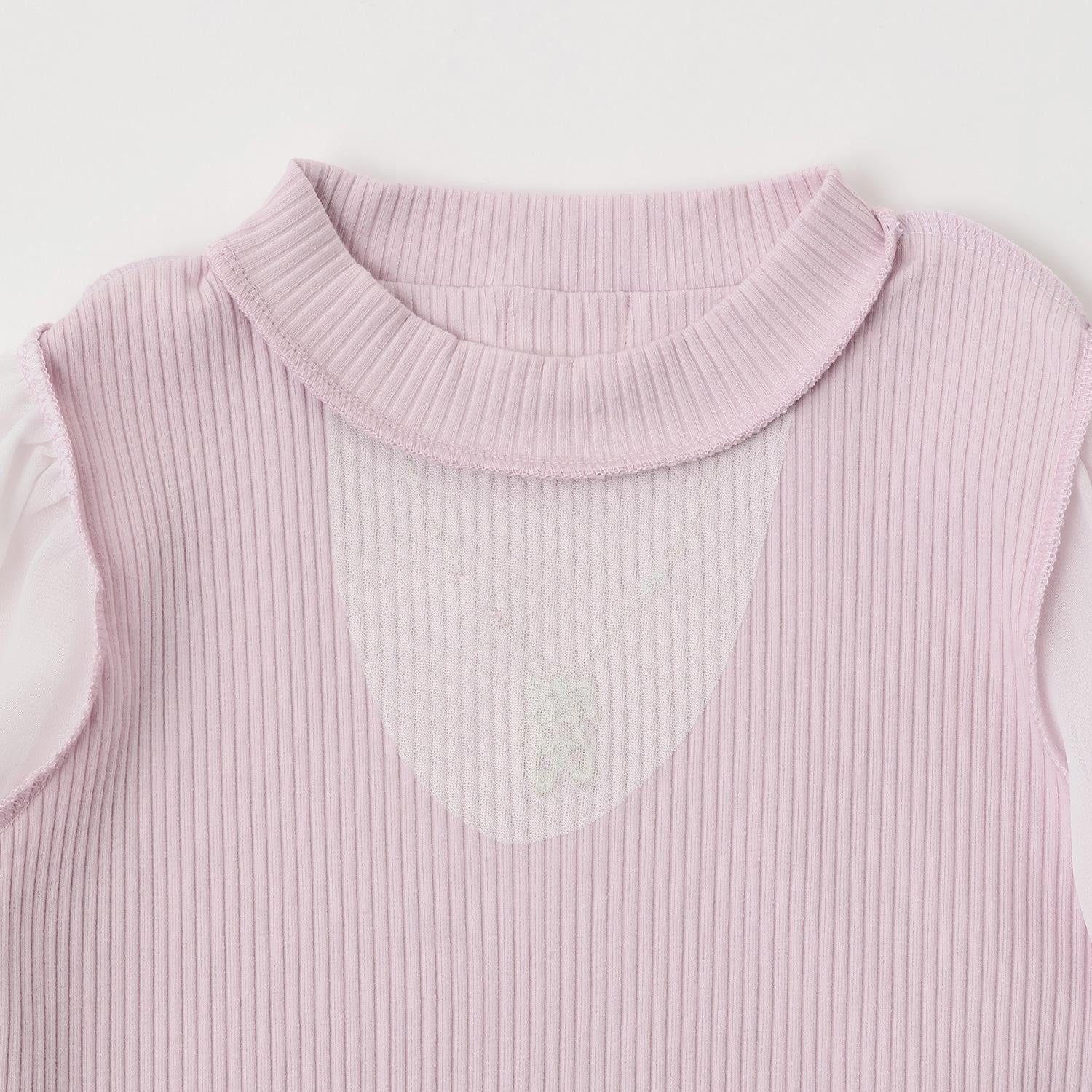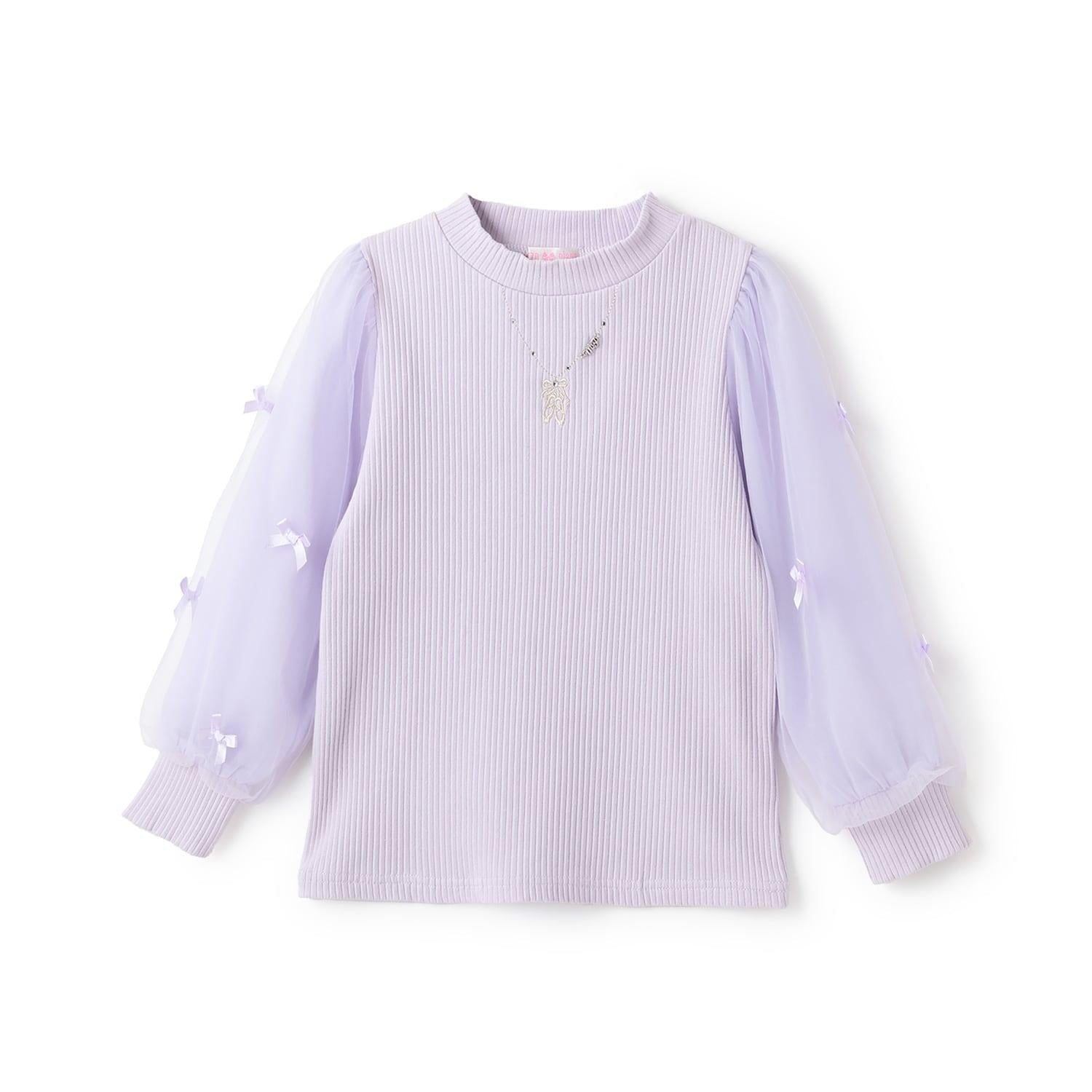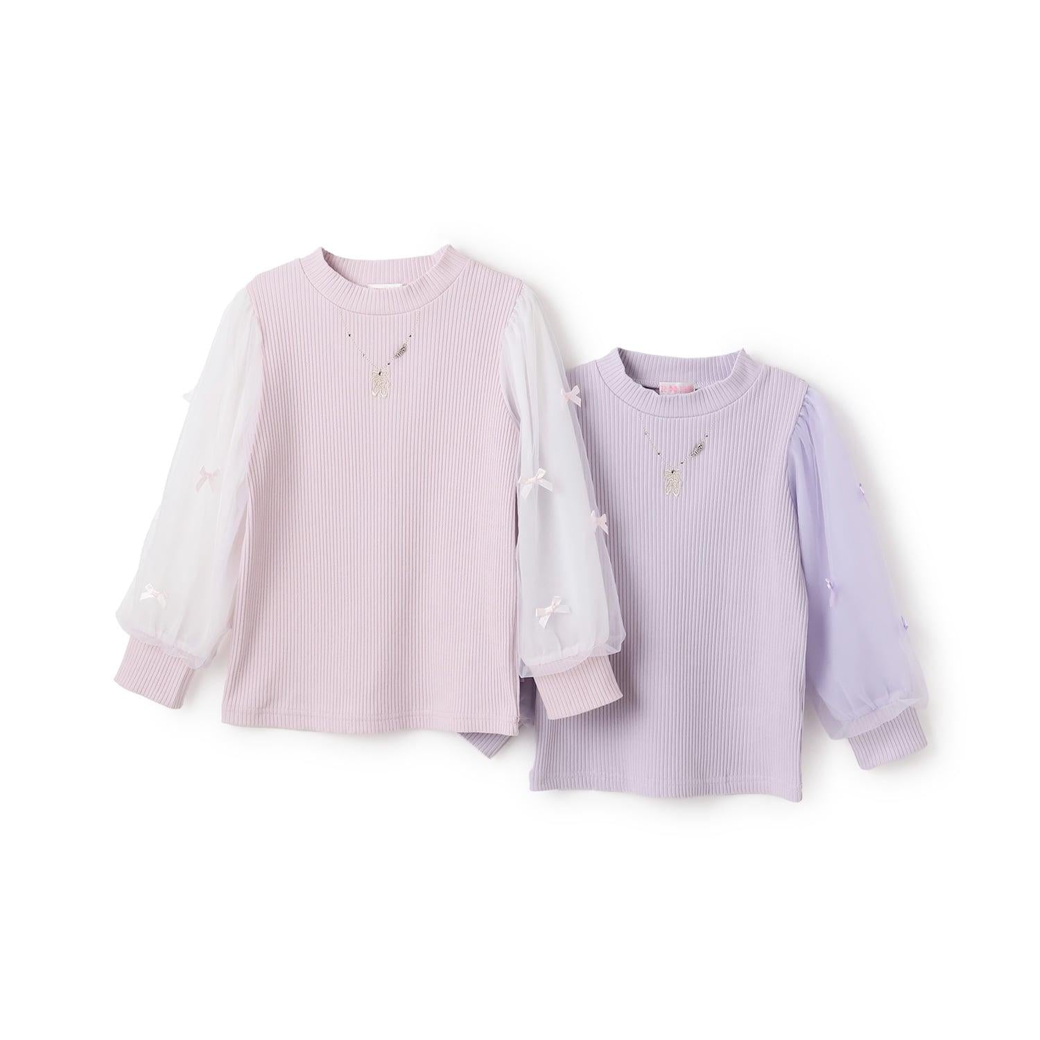 項鍊刺繡袖子網紗羅紋長袖T恤