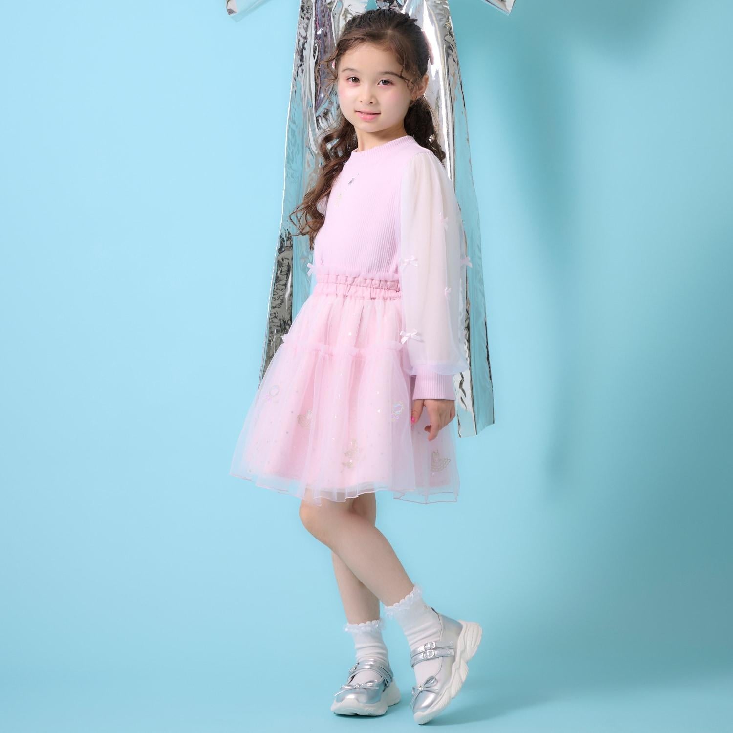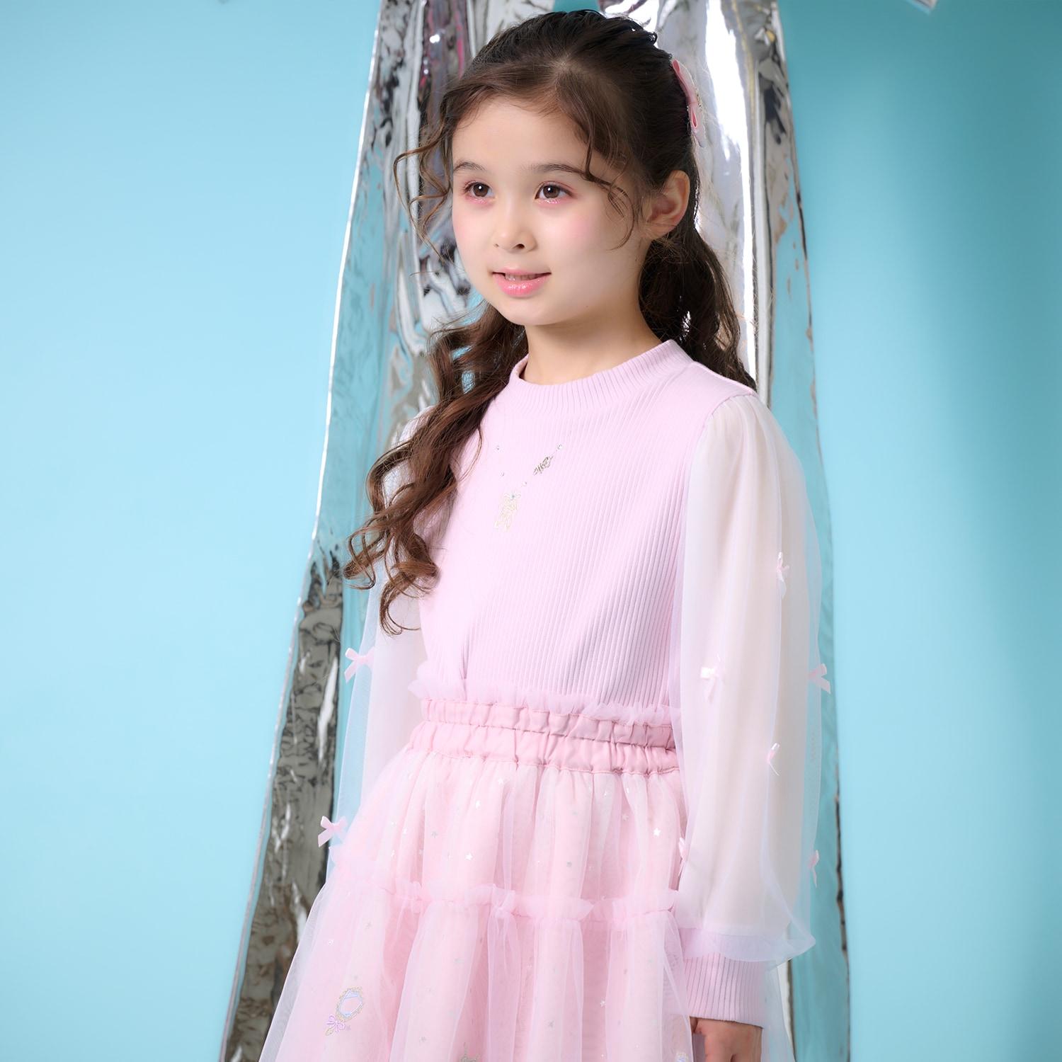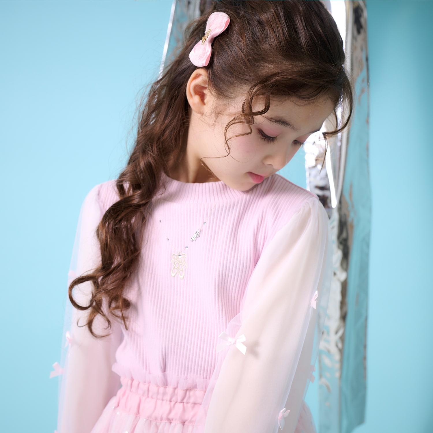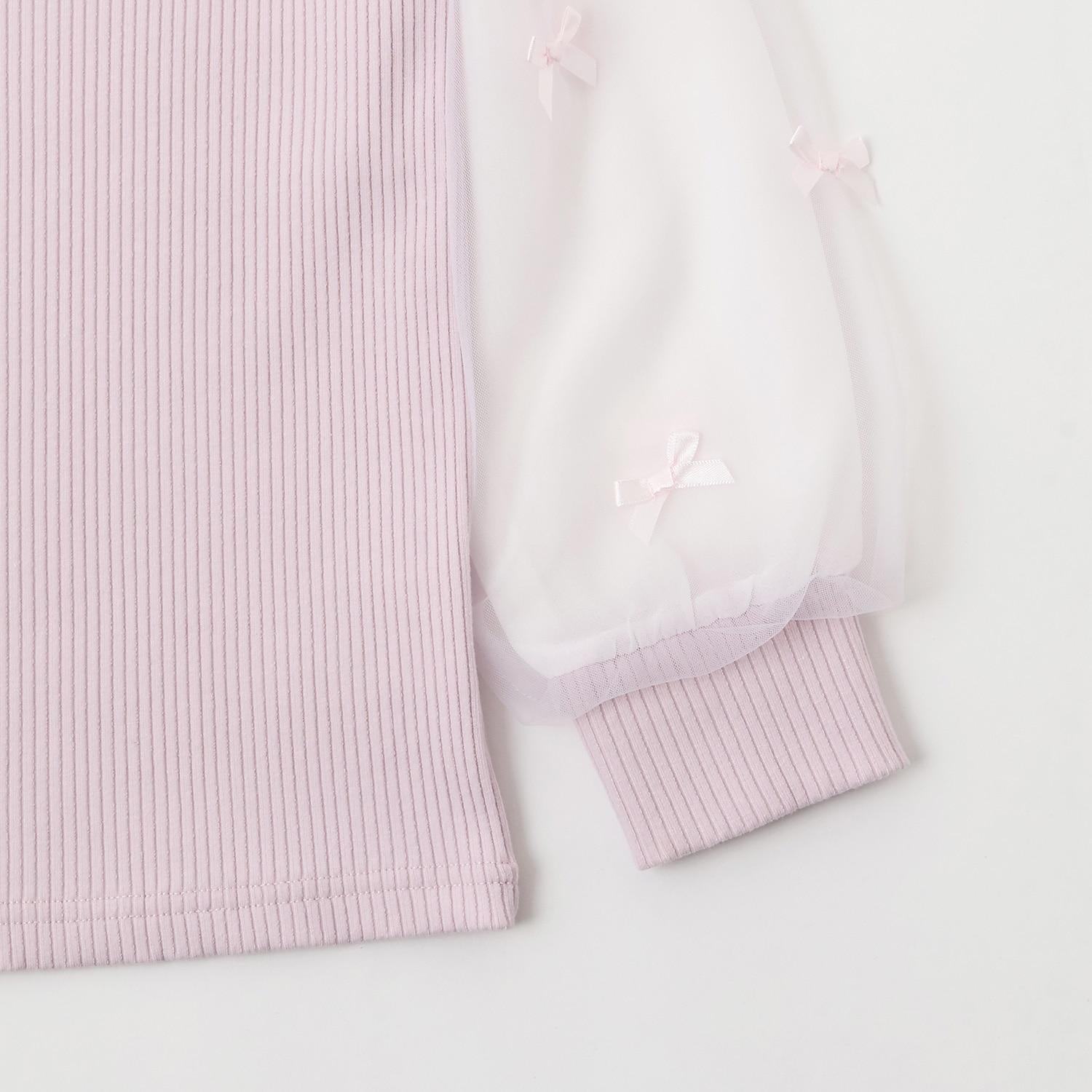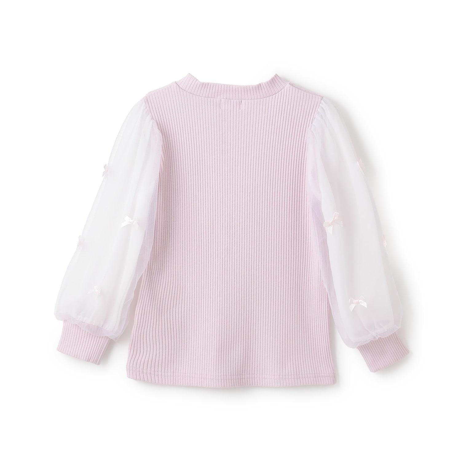項鍊刺繡袖子網紗羅紋長袖T恤