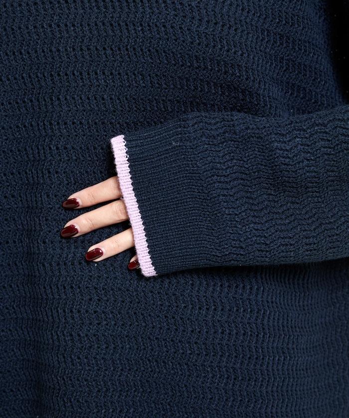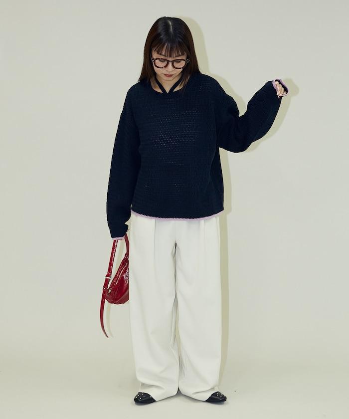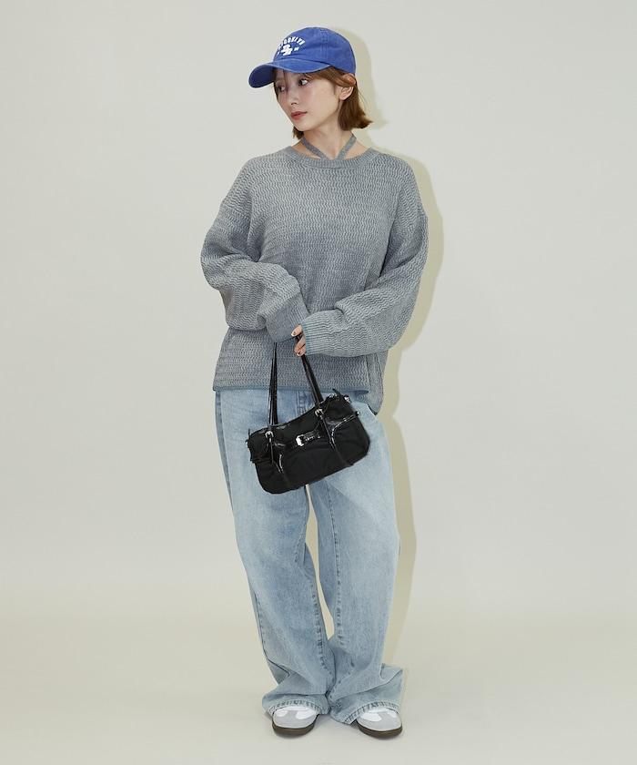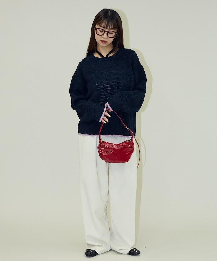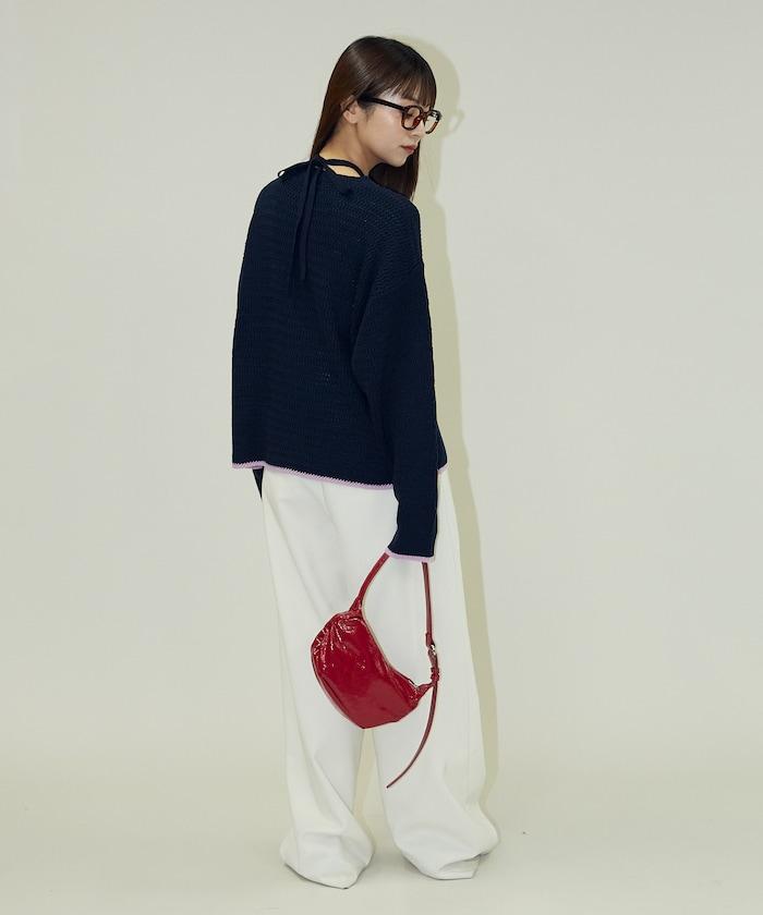 搶眼的針織套頭衫,採用choker式設計,細節處色彩協調。