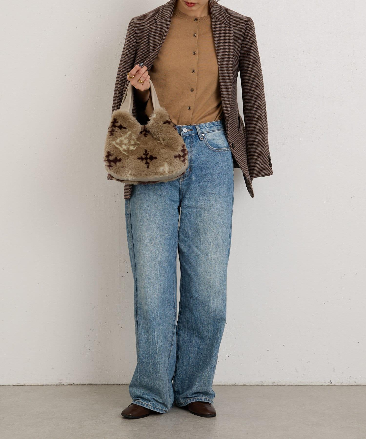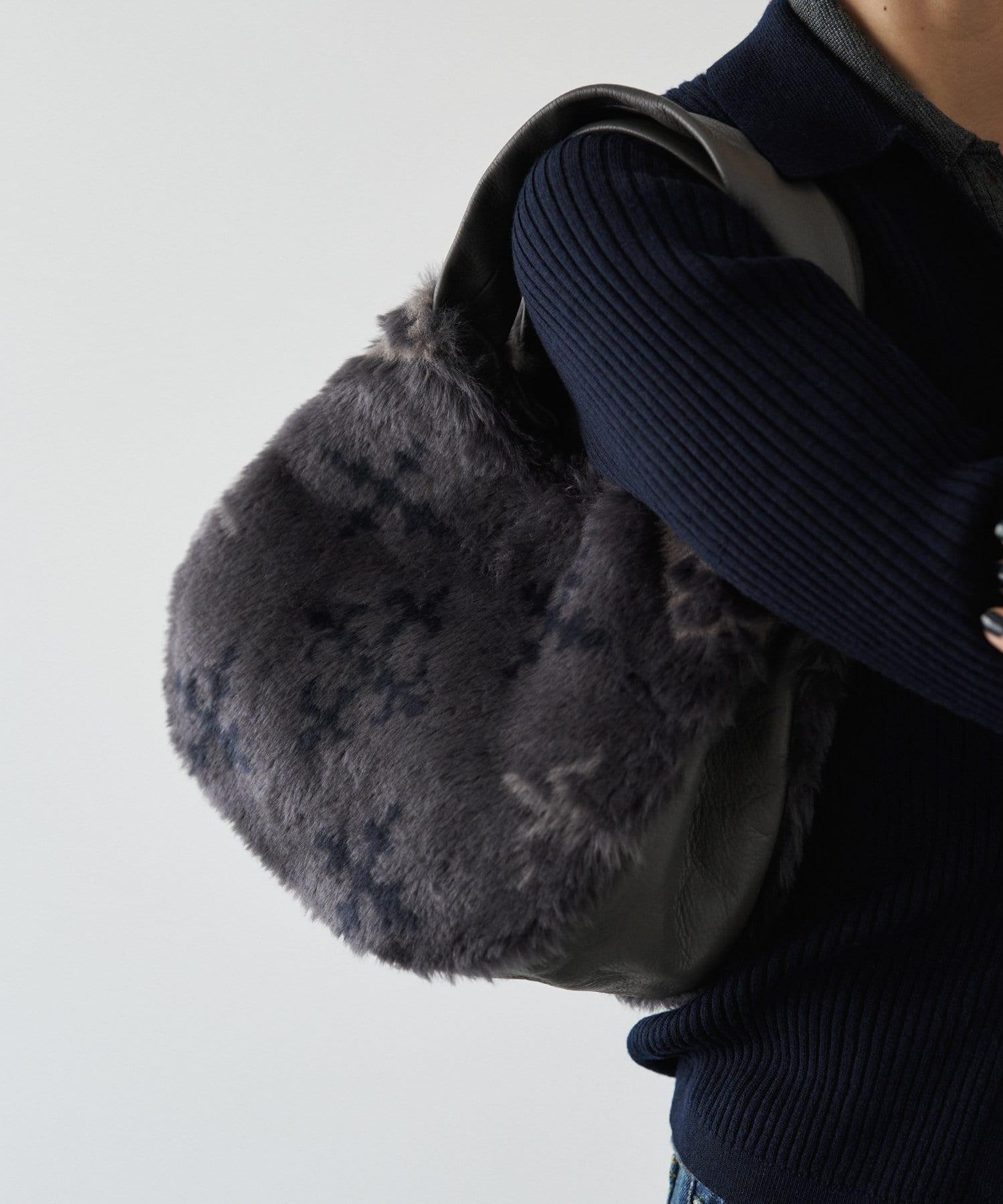 毛皮內的 Monogram 圖案如果與單色調的搭配會更加突出。