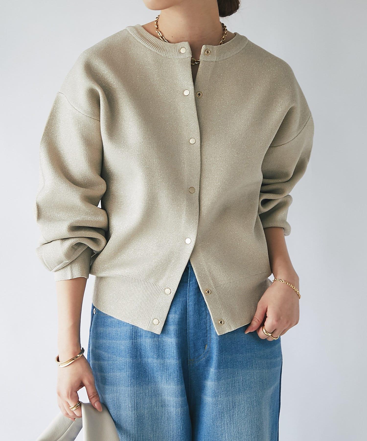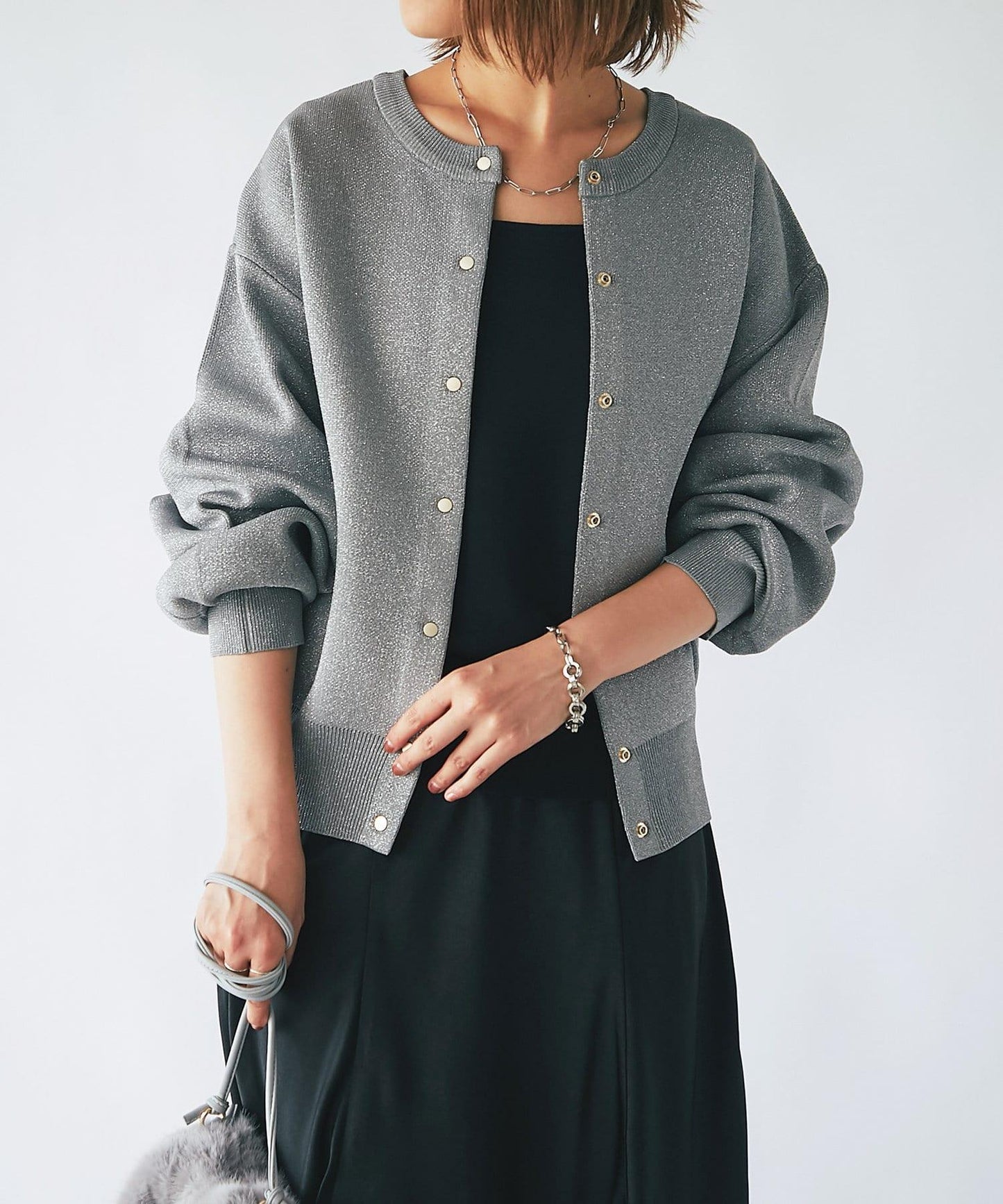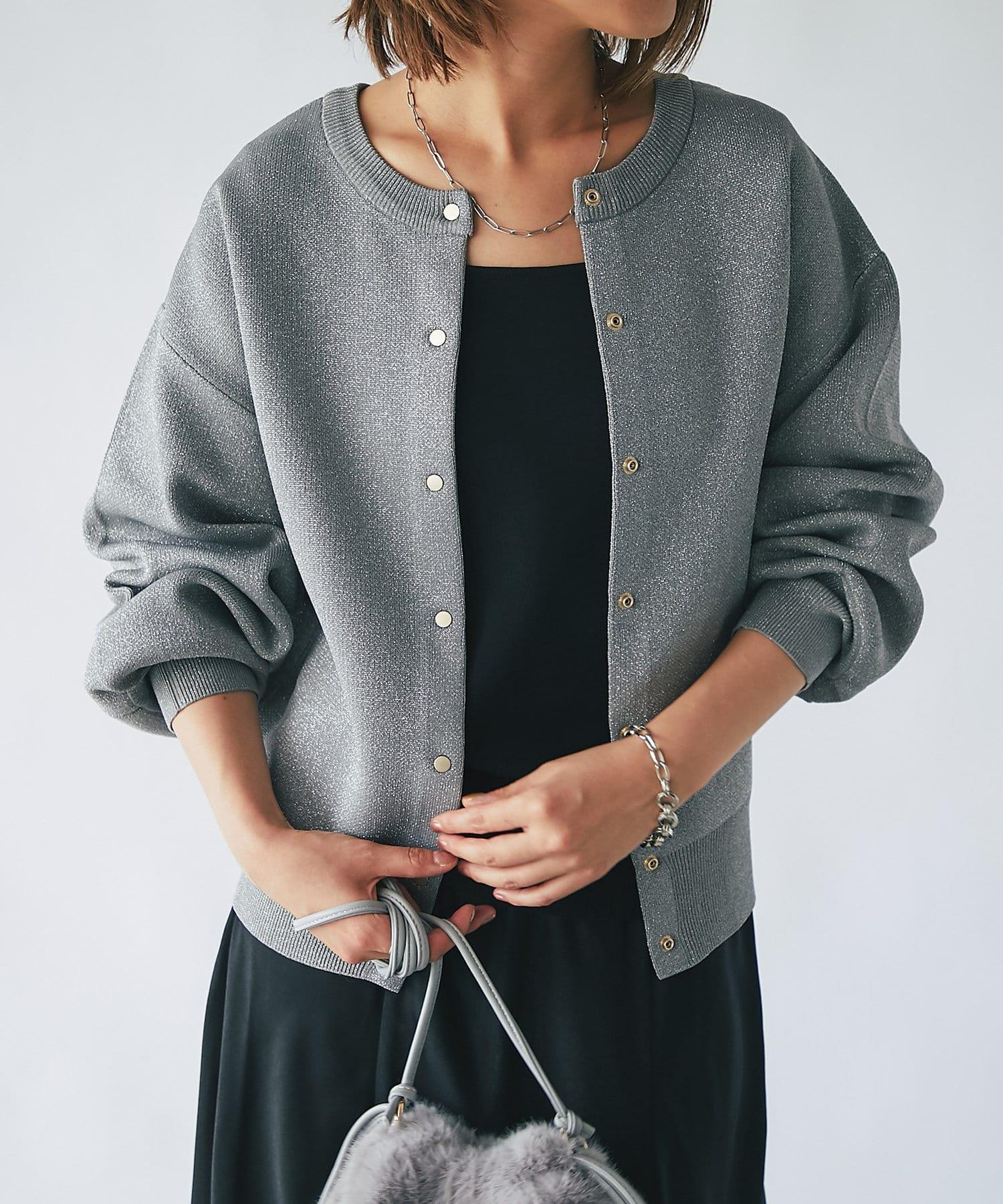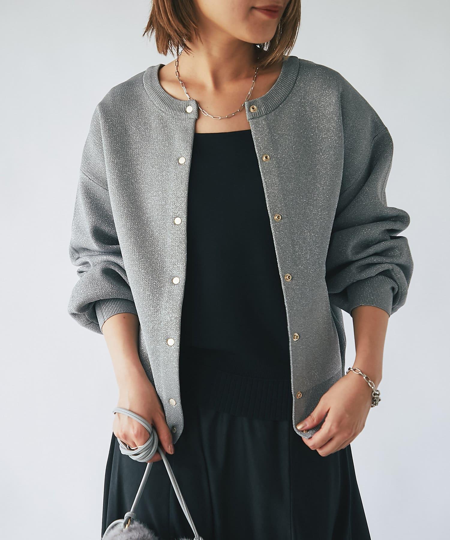 可愛的閃亮薄片!前後均可穿著的開襟羊毛衫。