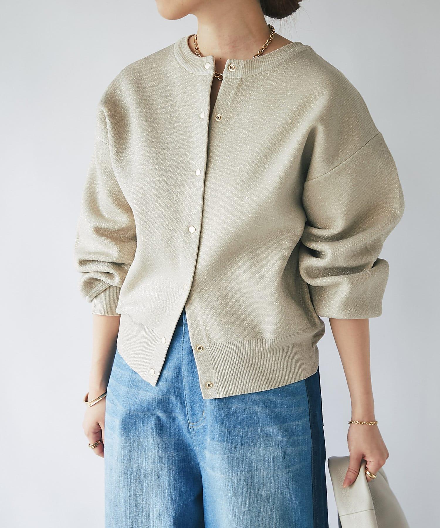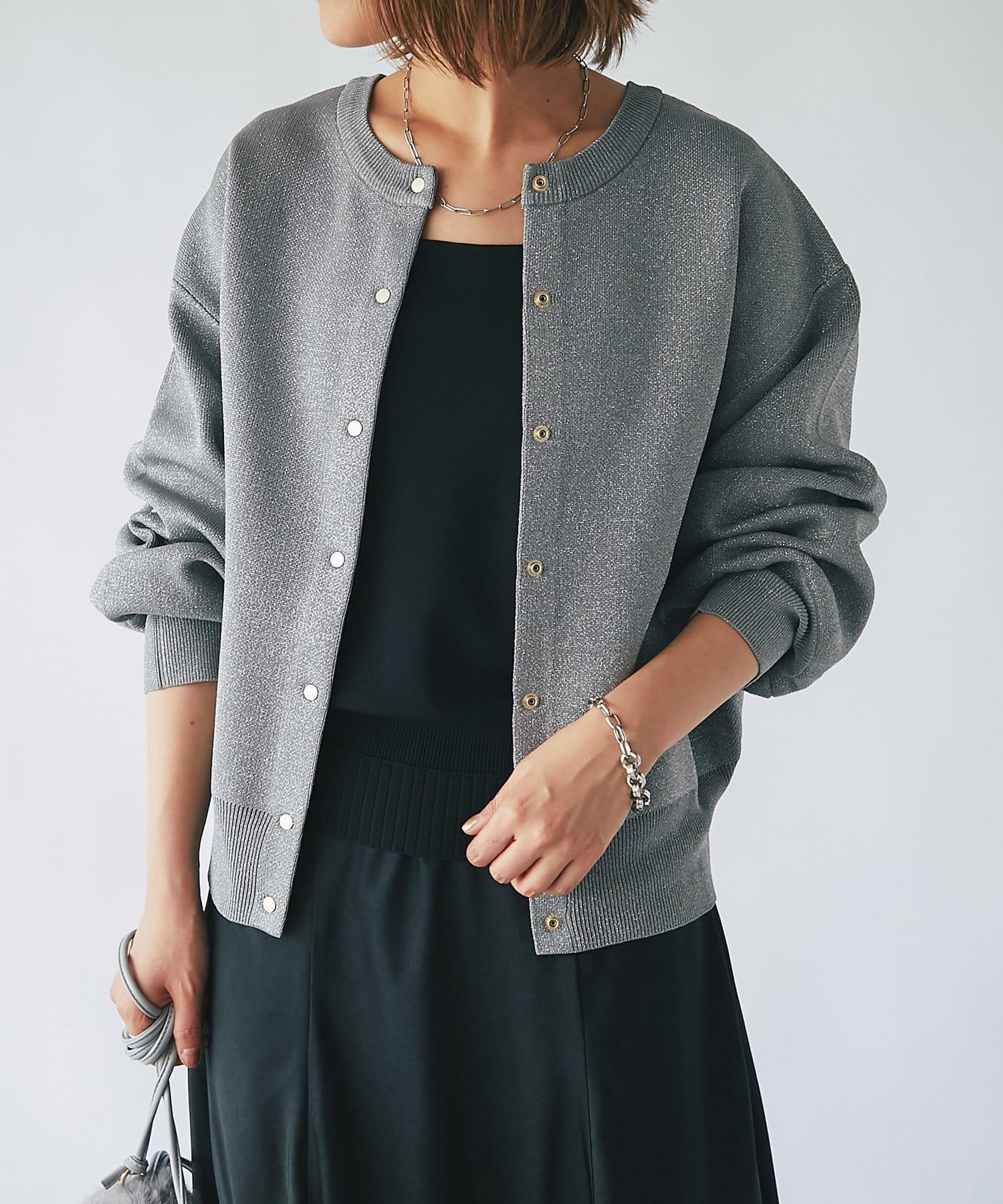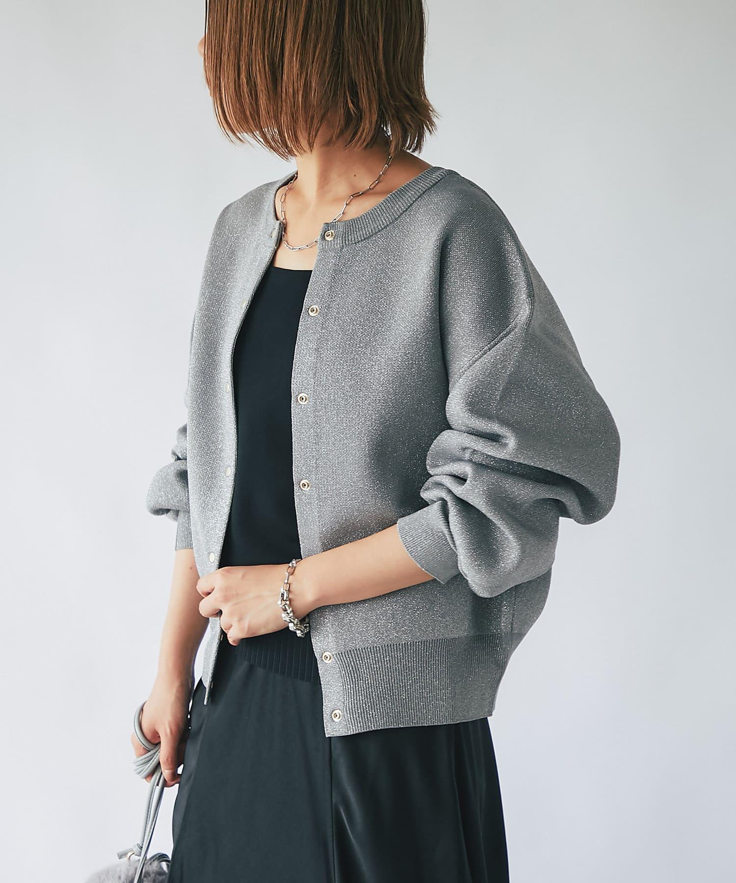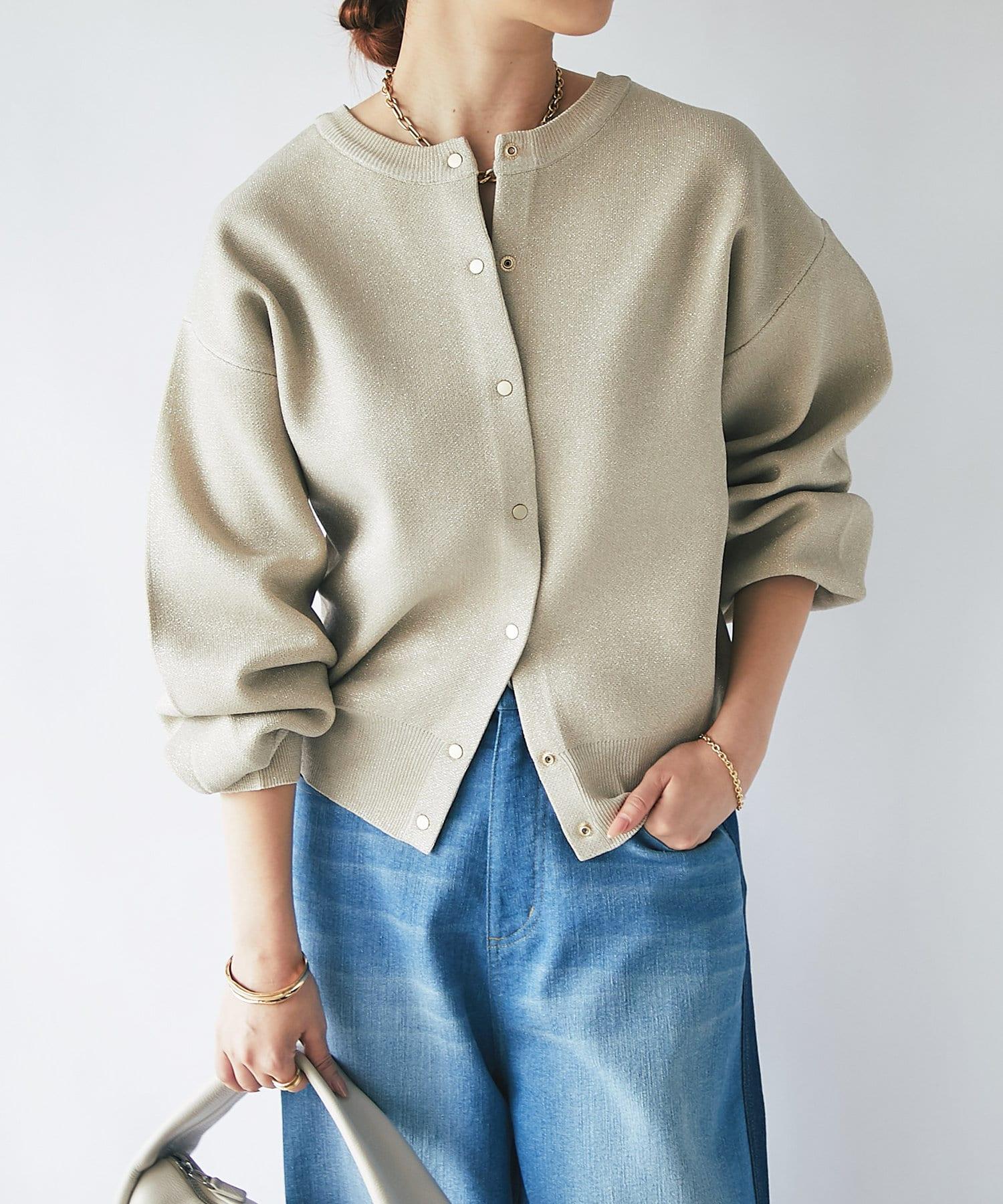 可愛的閃亮薄片!前後均可穿著的開襟羊毛衫。
