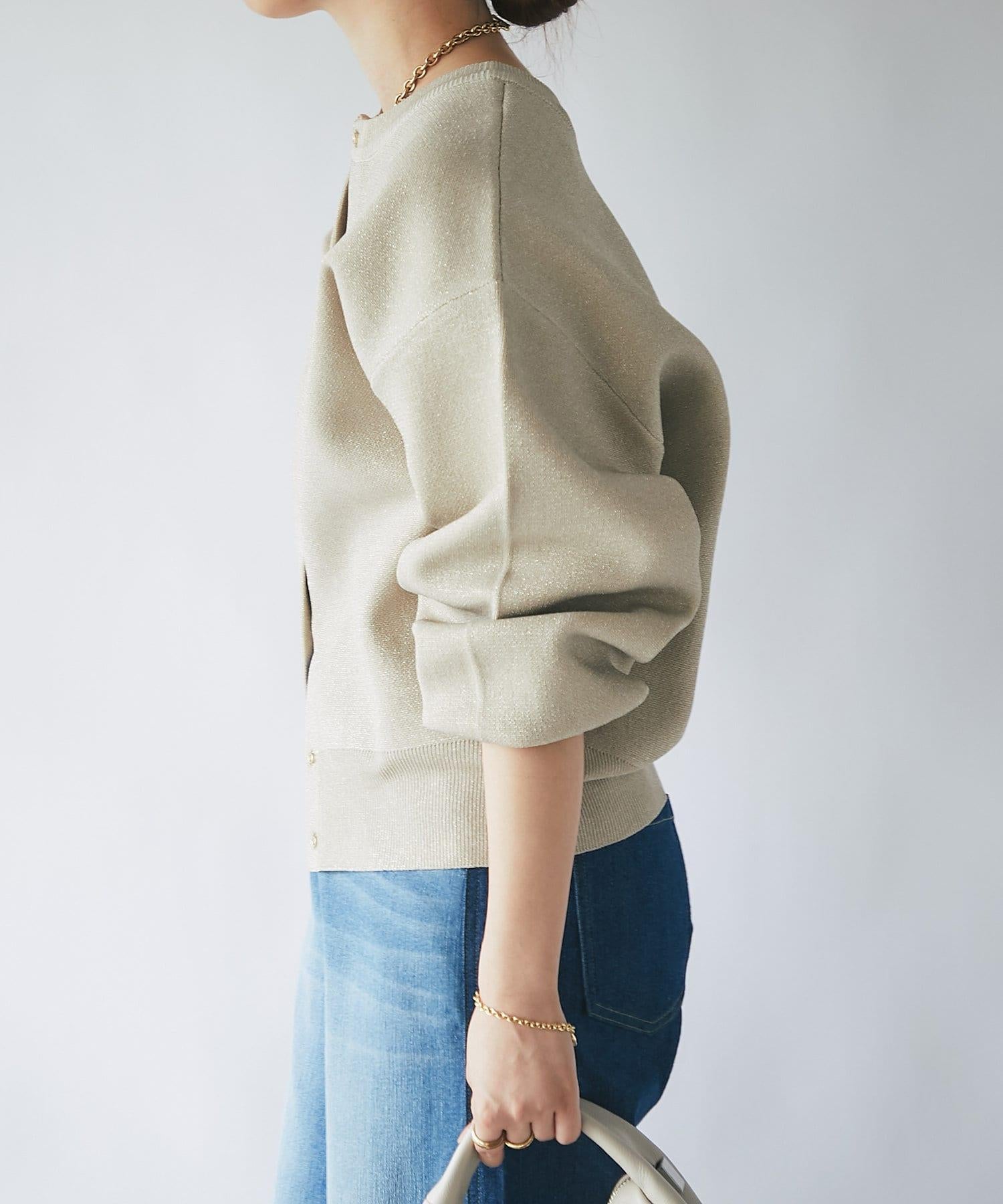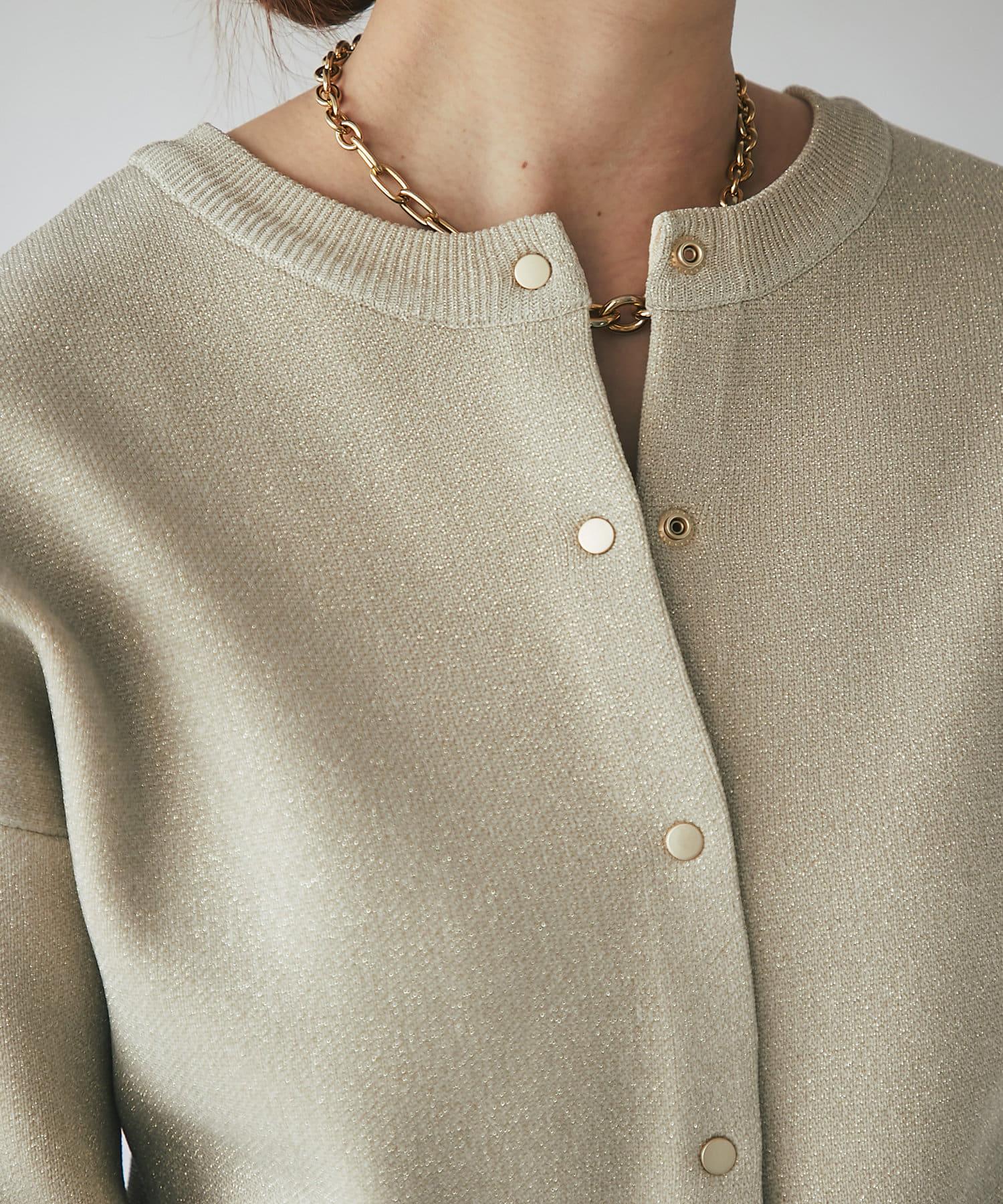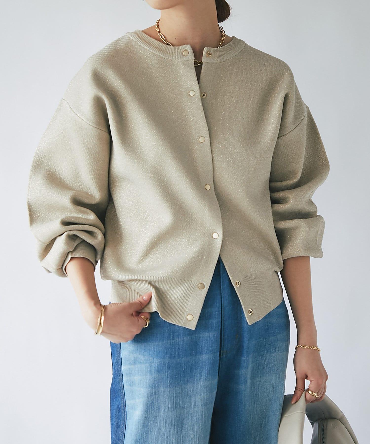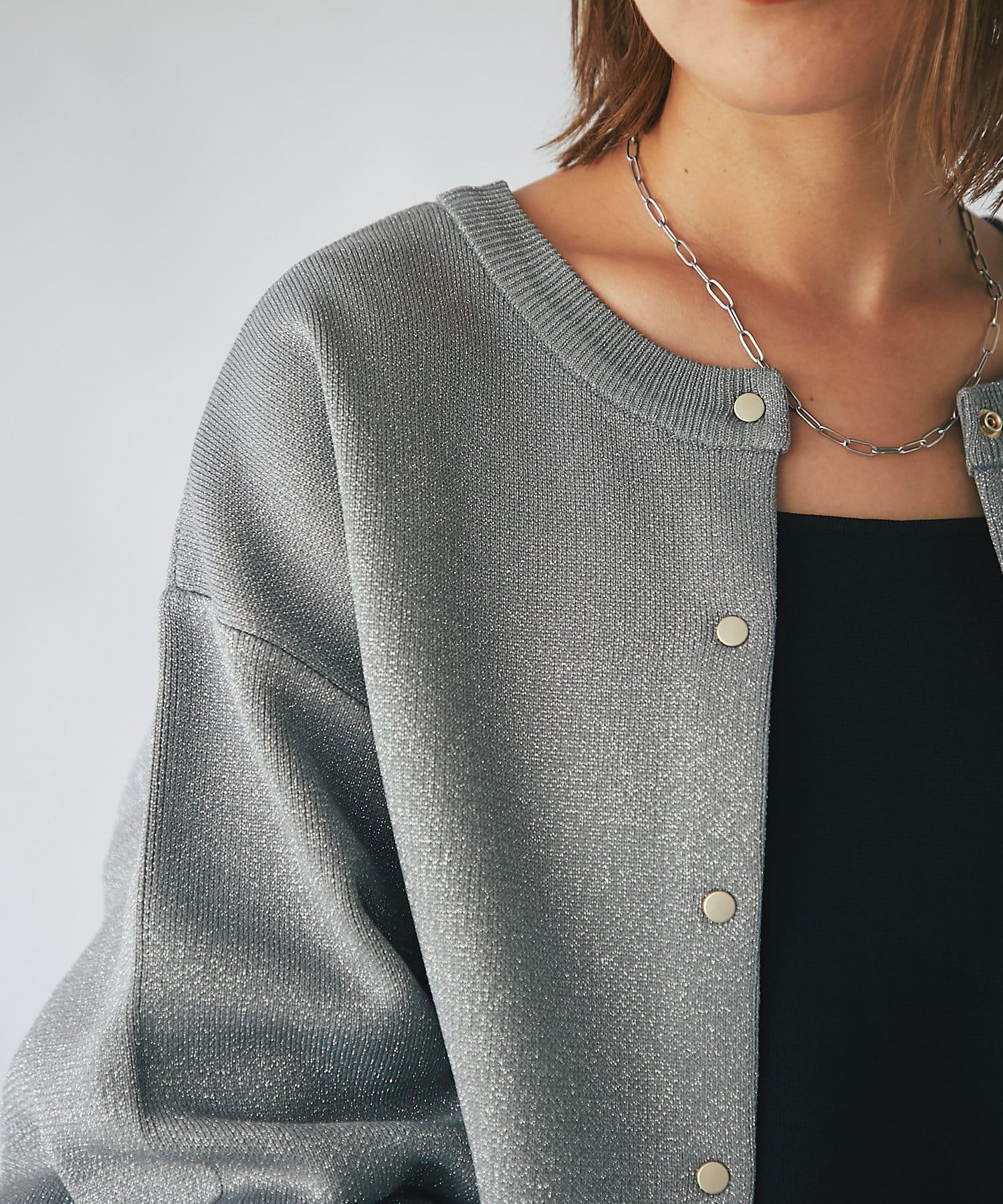 可愛的閃亮薄片!前後均可穿著的開襟羊毛衫。