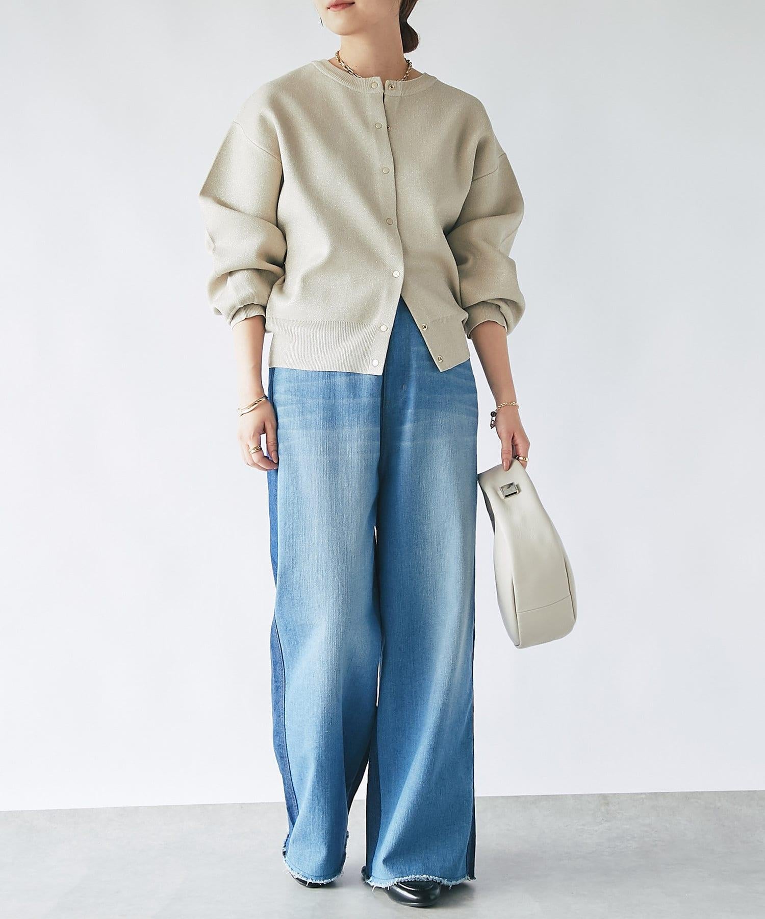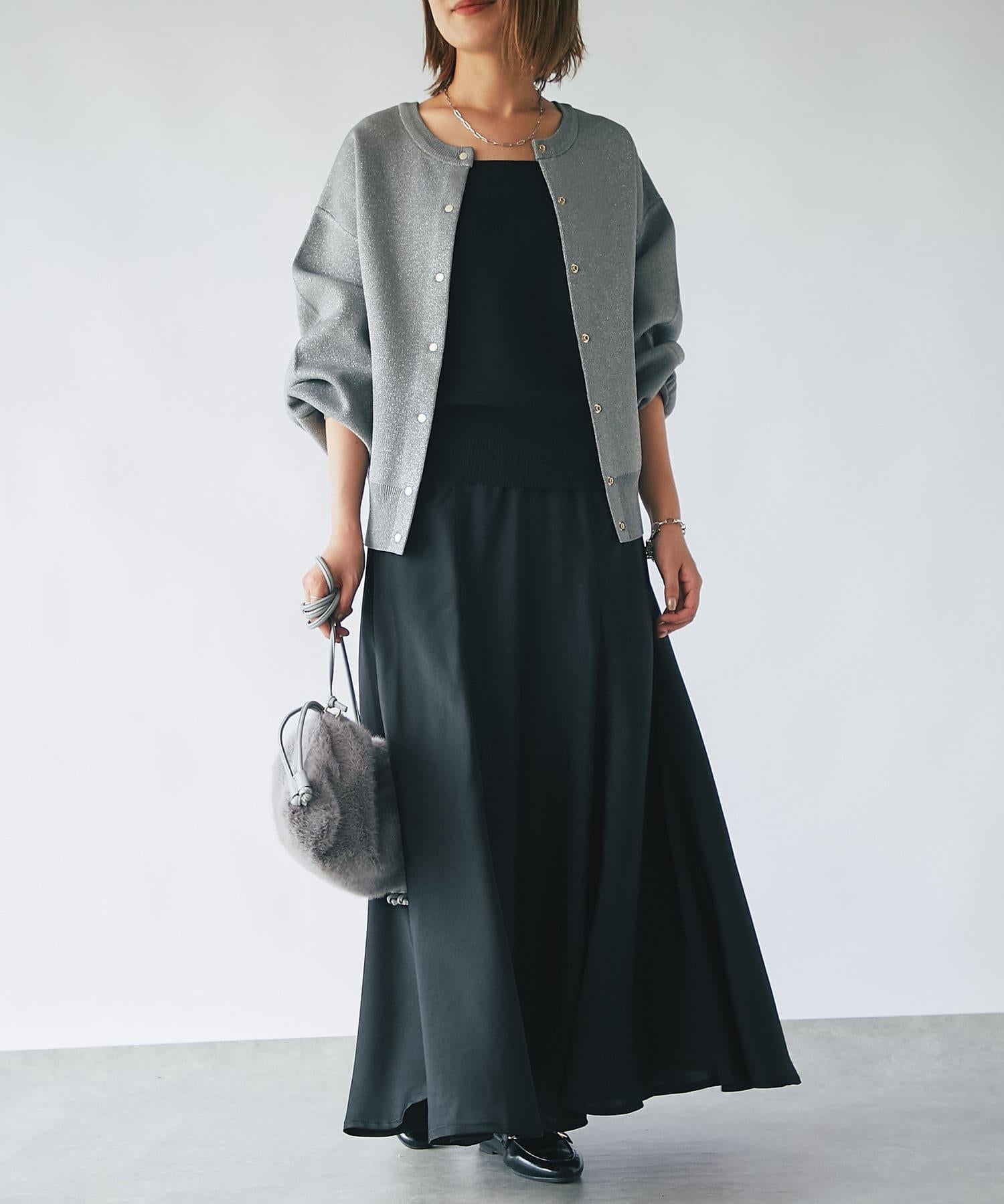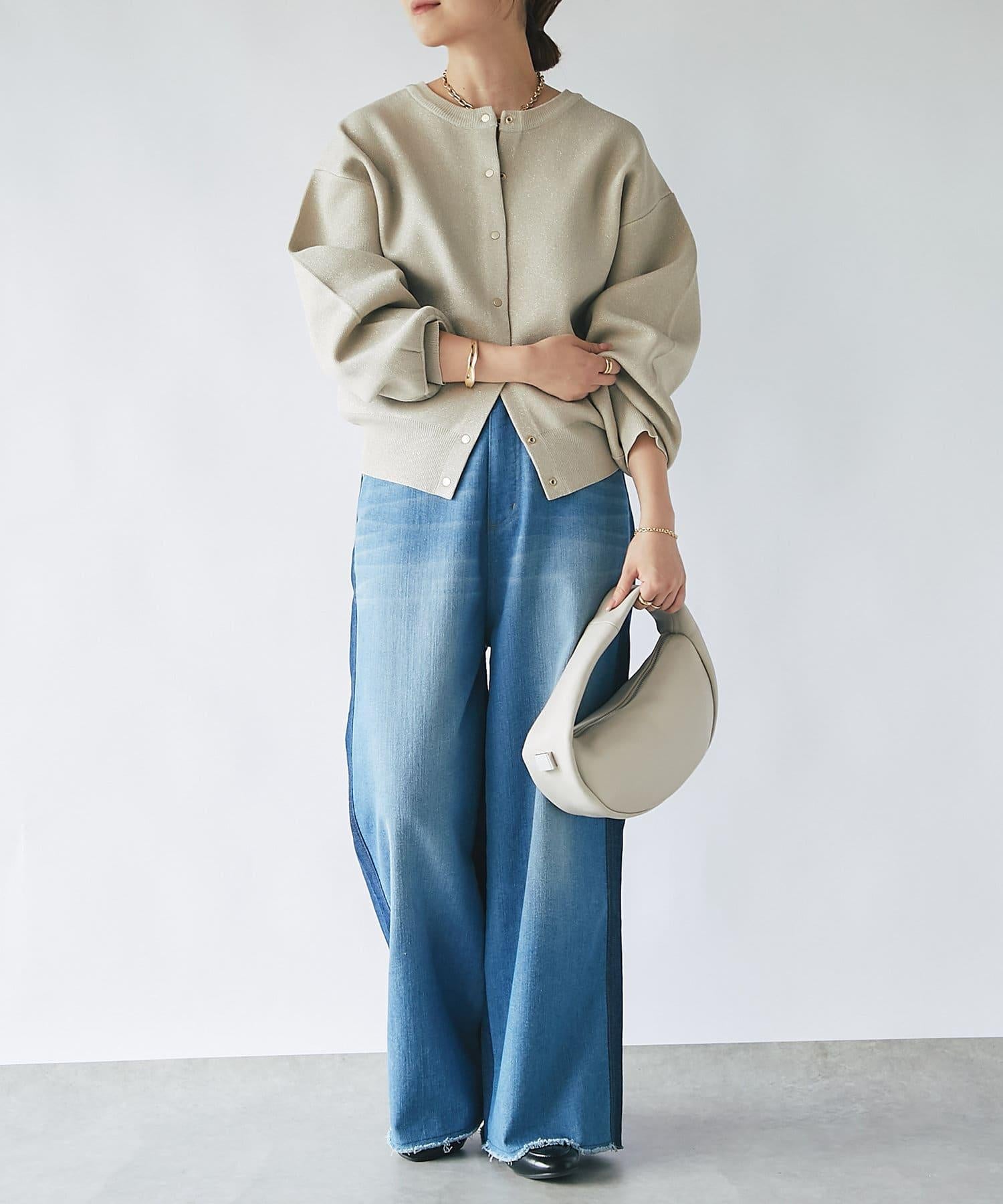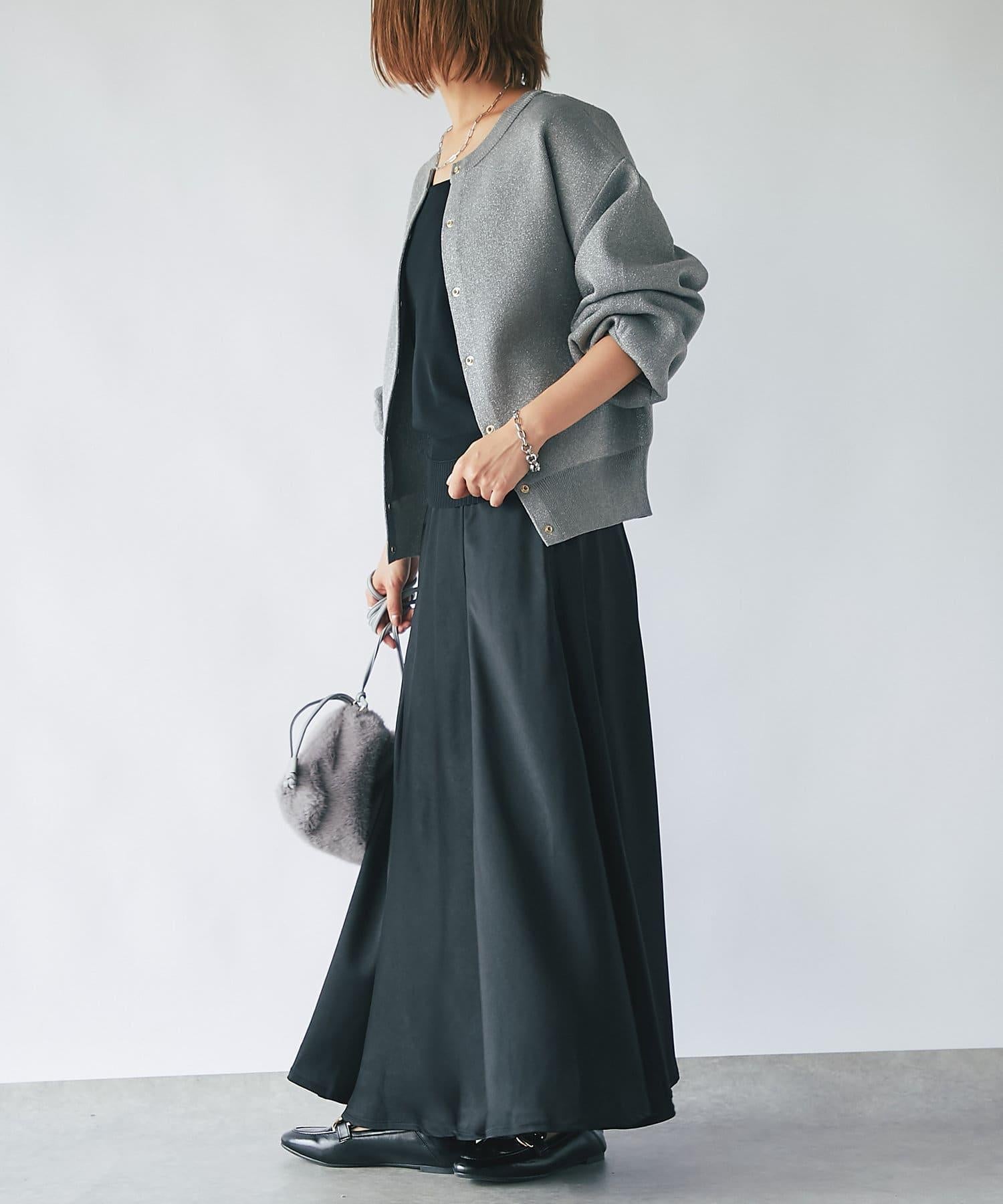 可愛的閃亮薄片!前後均可穿著的開襟羊毛衫。