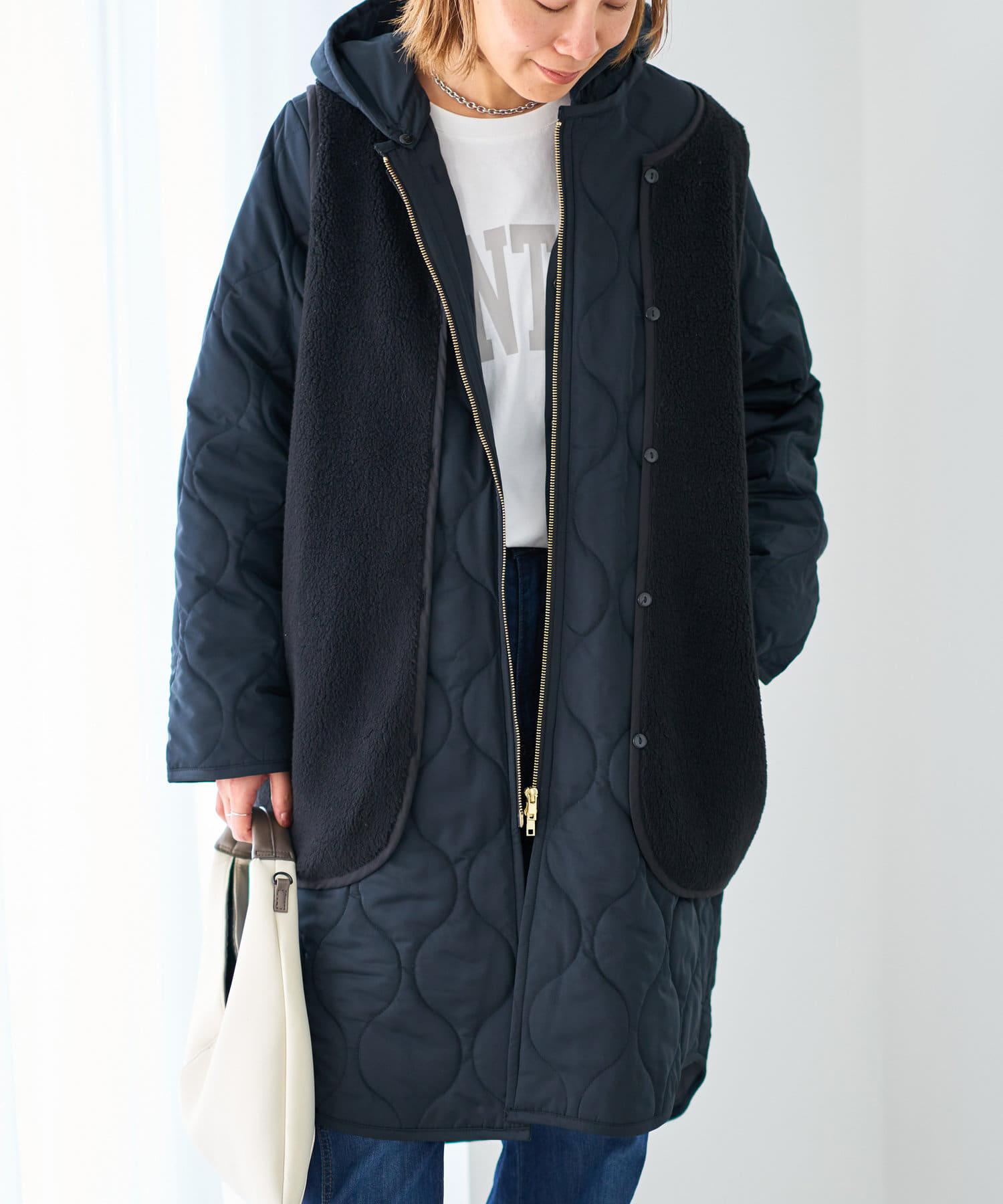 "可拆卸外套" 馬甲+中長款拼接棉服"