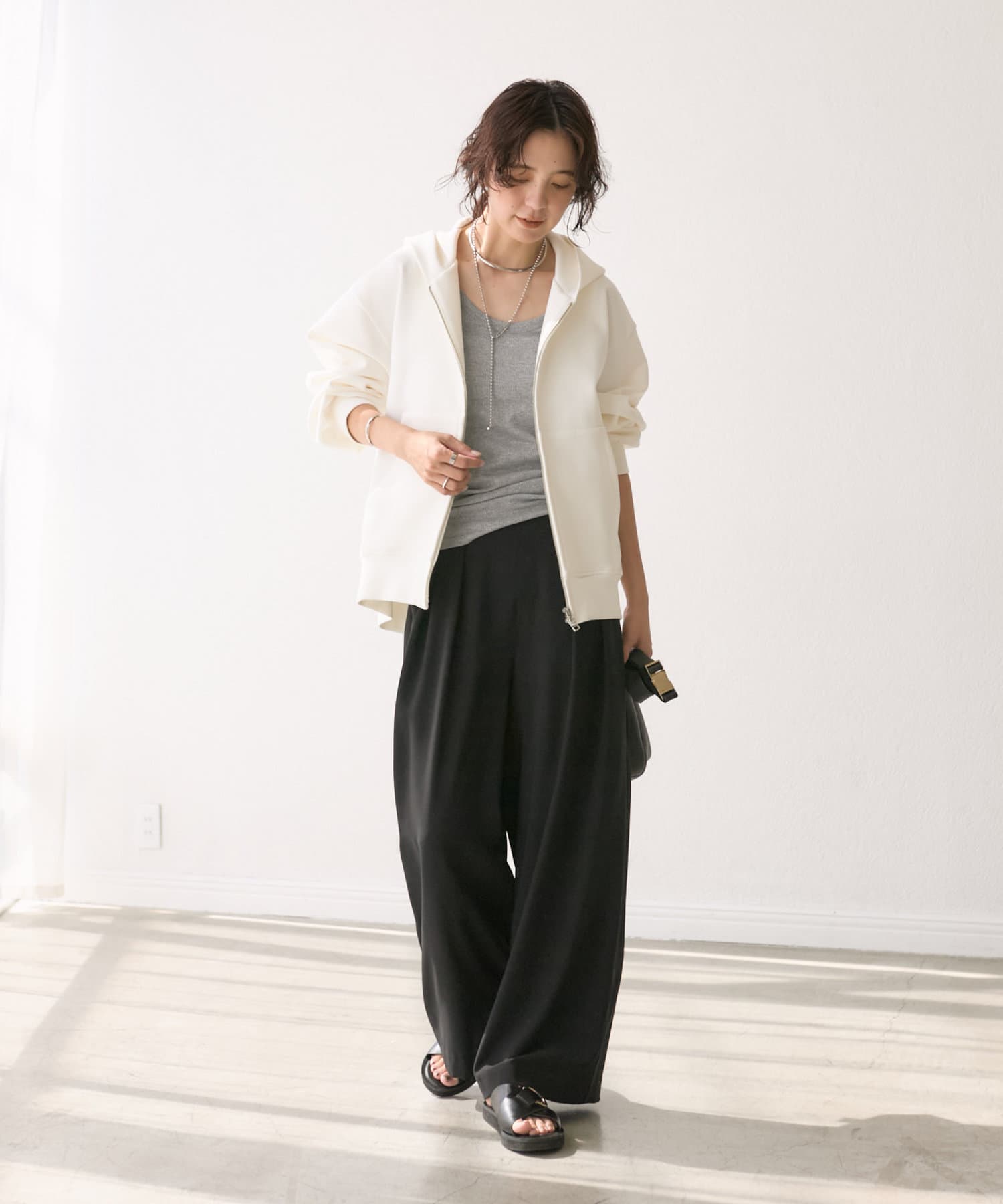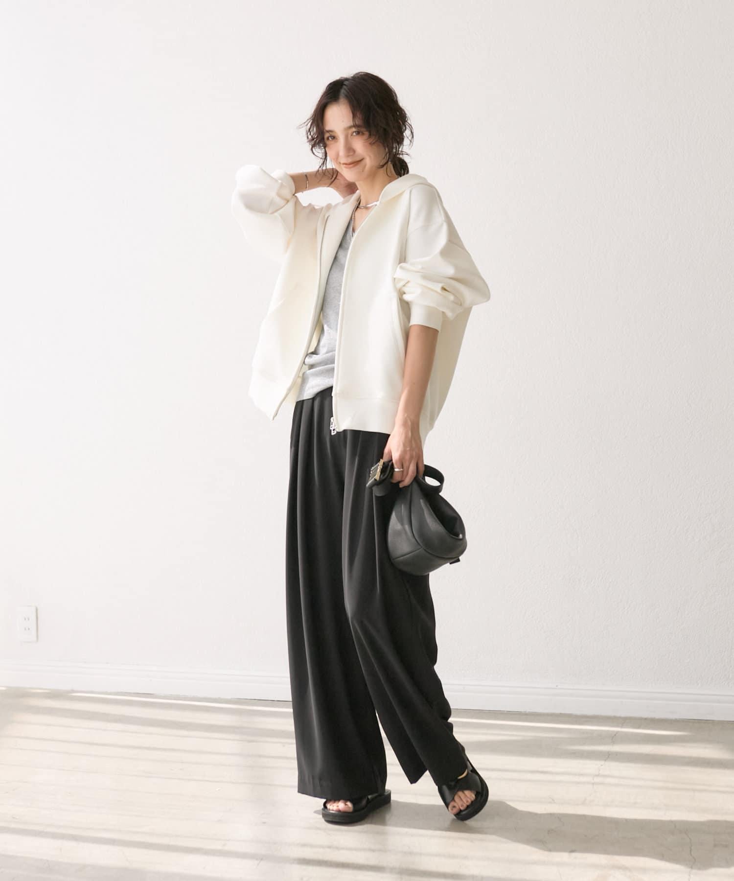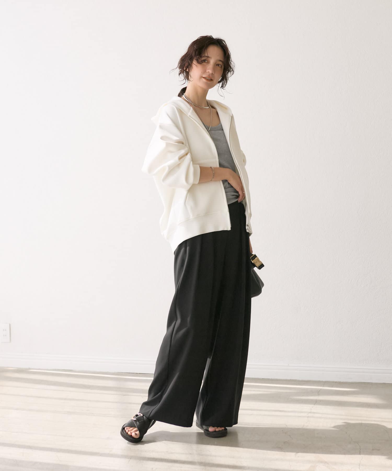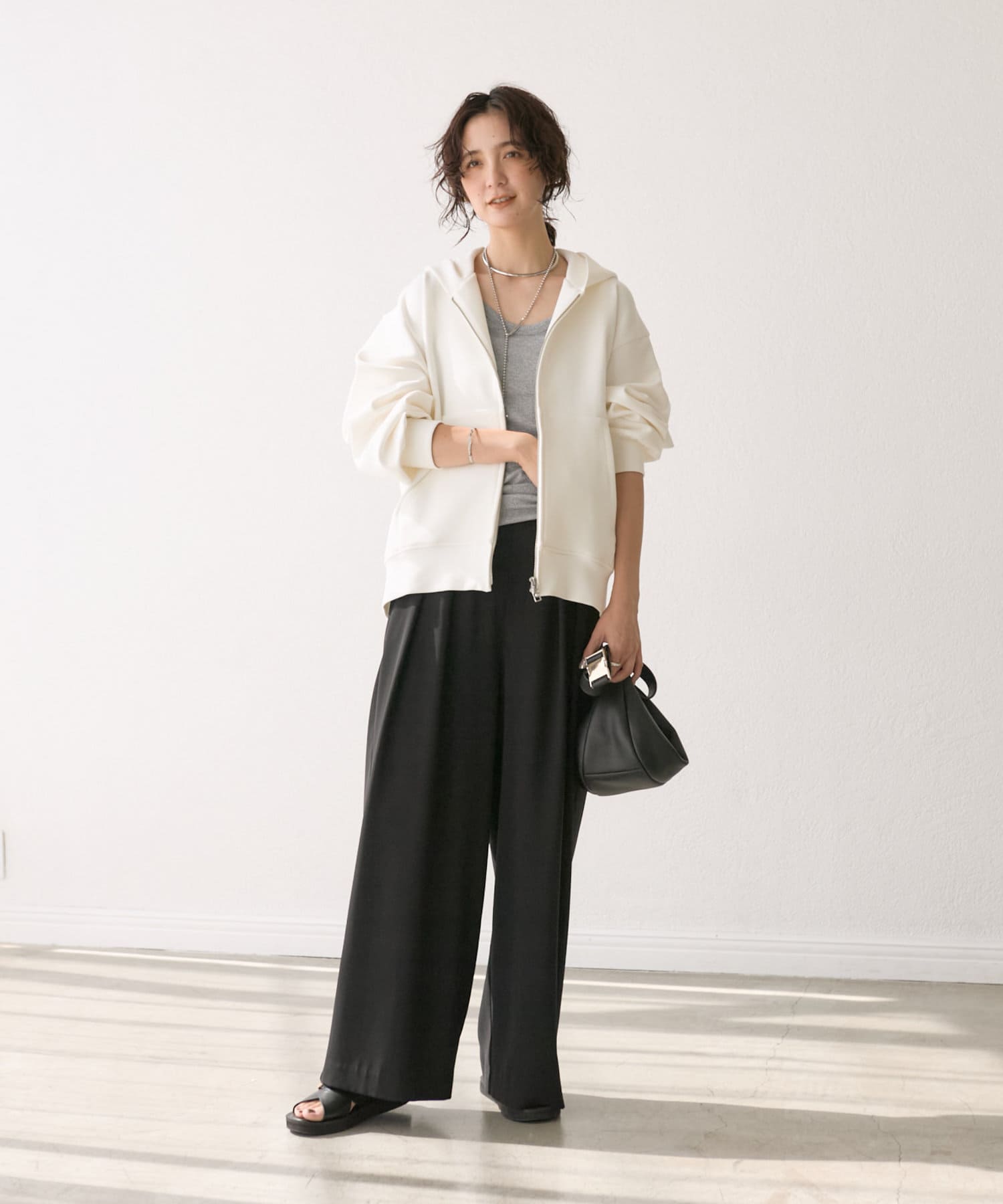 通過捲起袖子和向後拉衣領,可擴大造型範圍。
