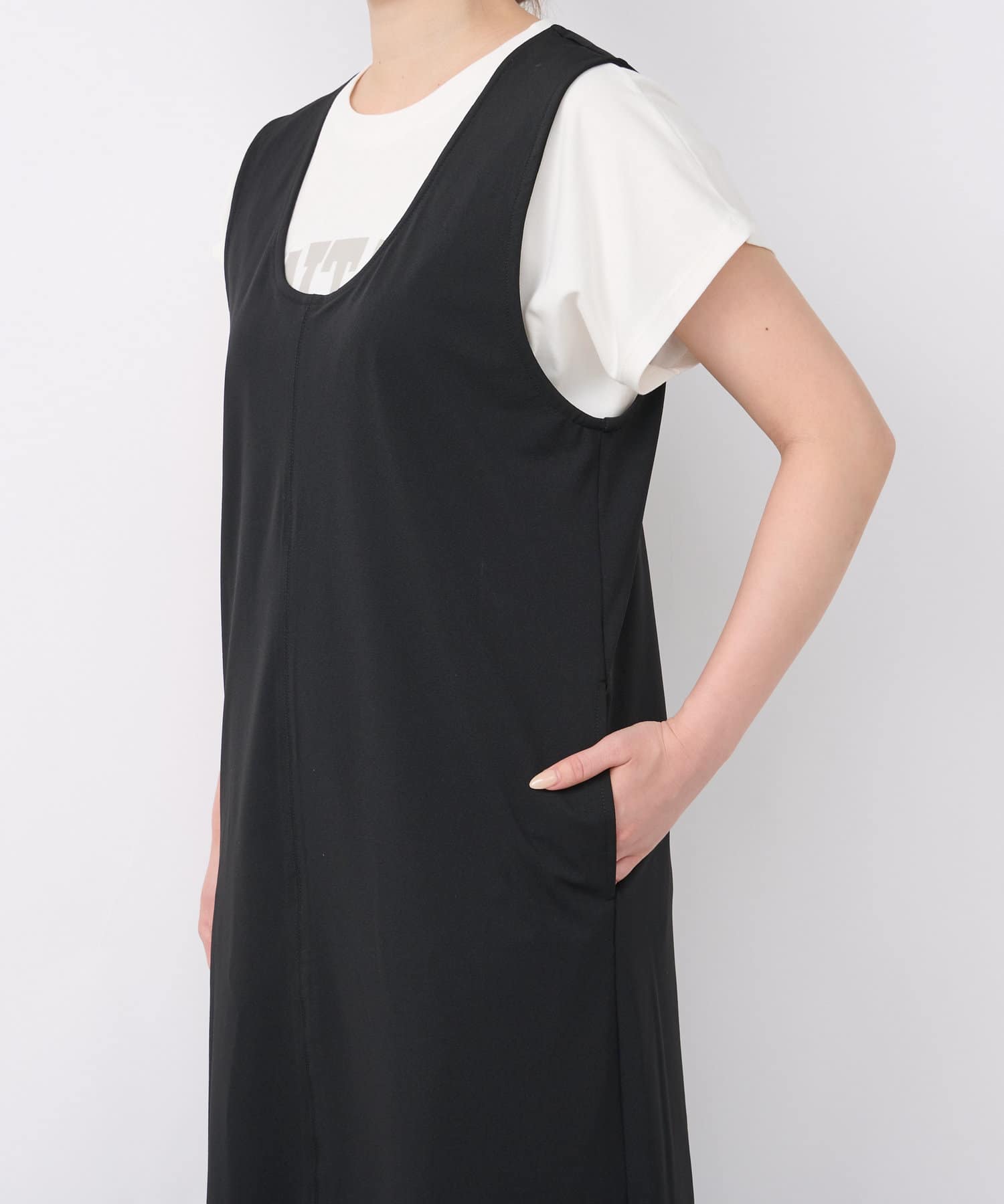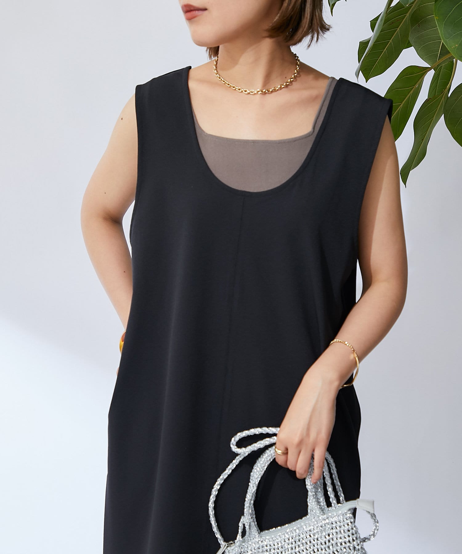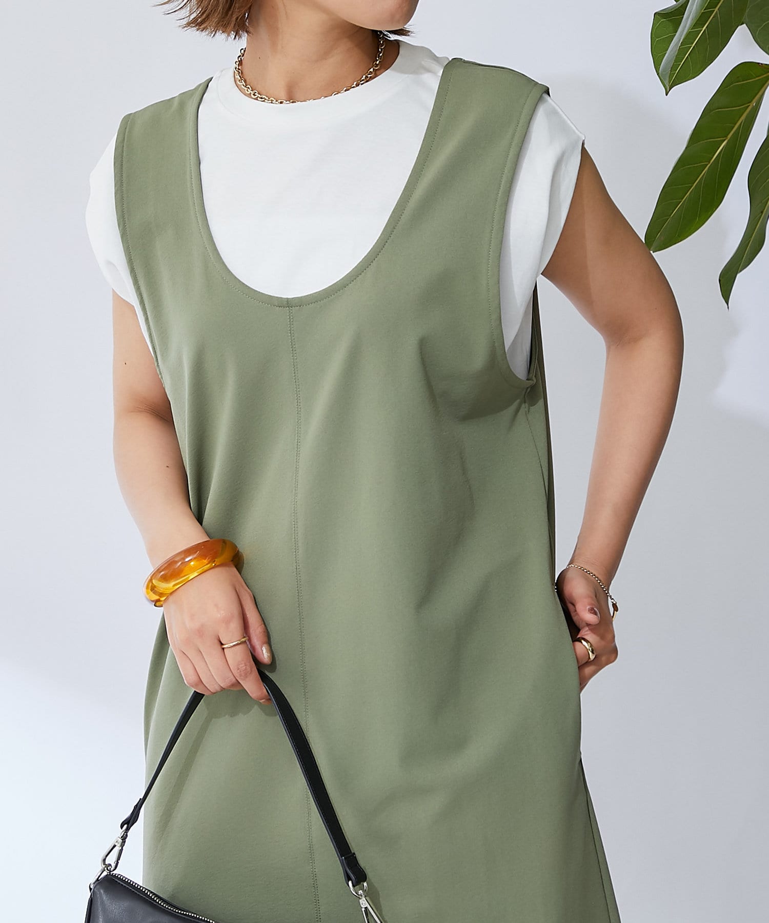 深開的 U 領讓身體線條看起來簡潔時尚。