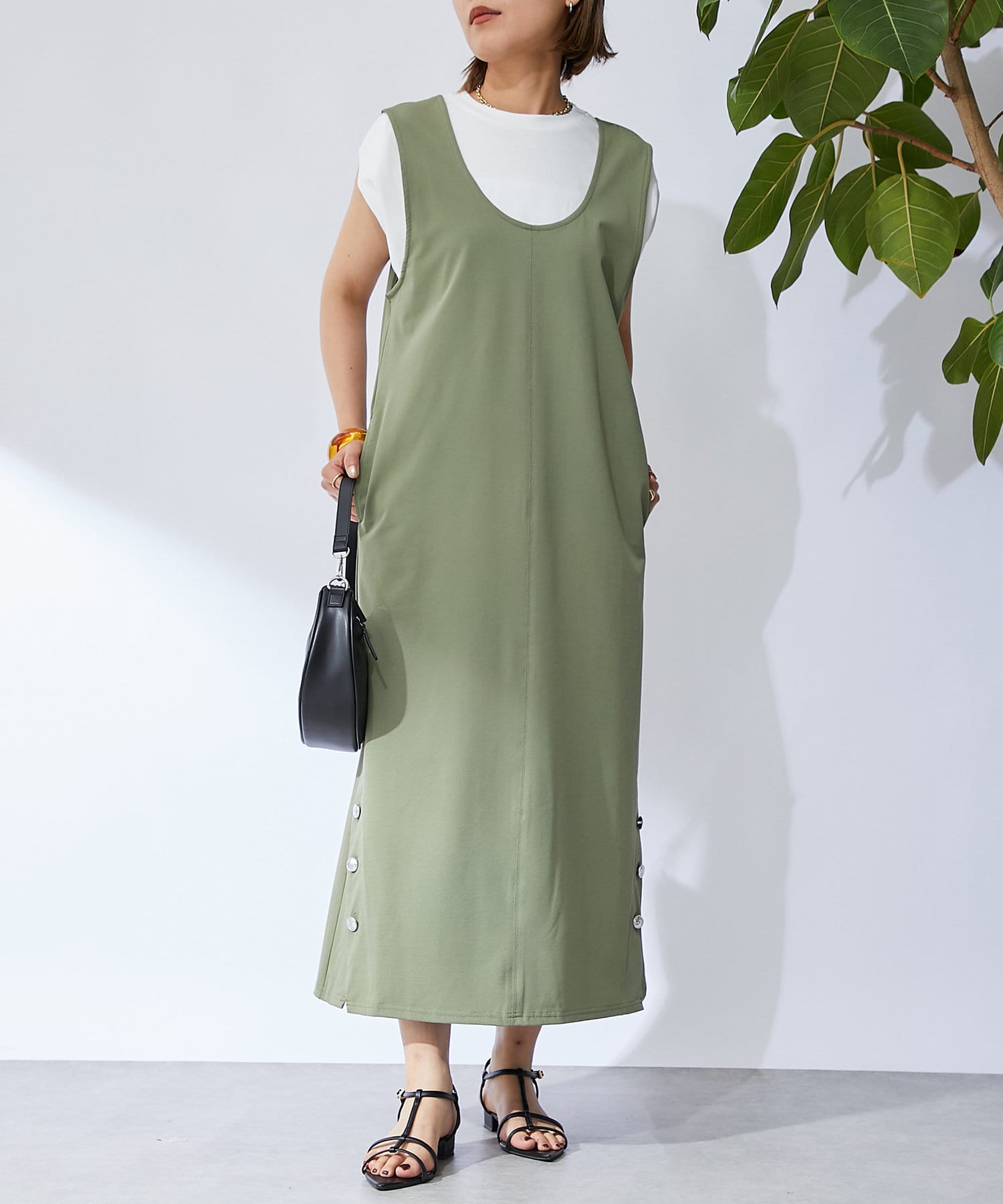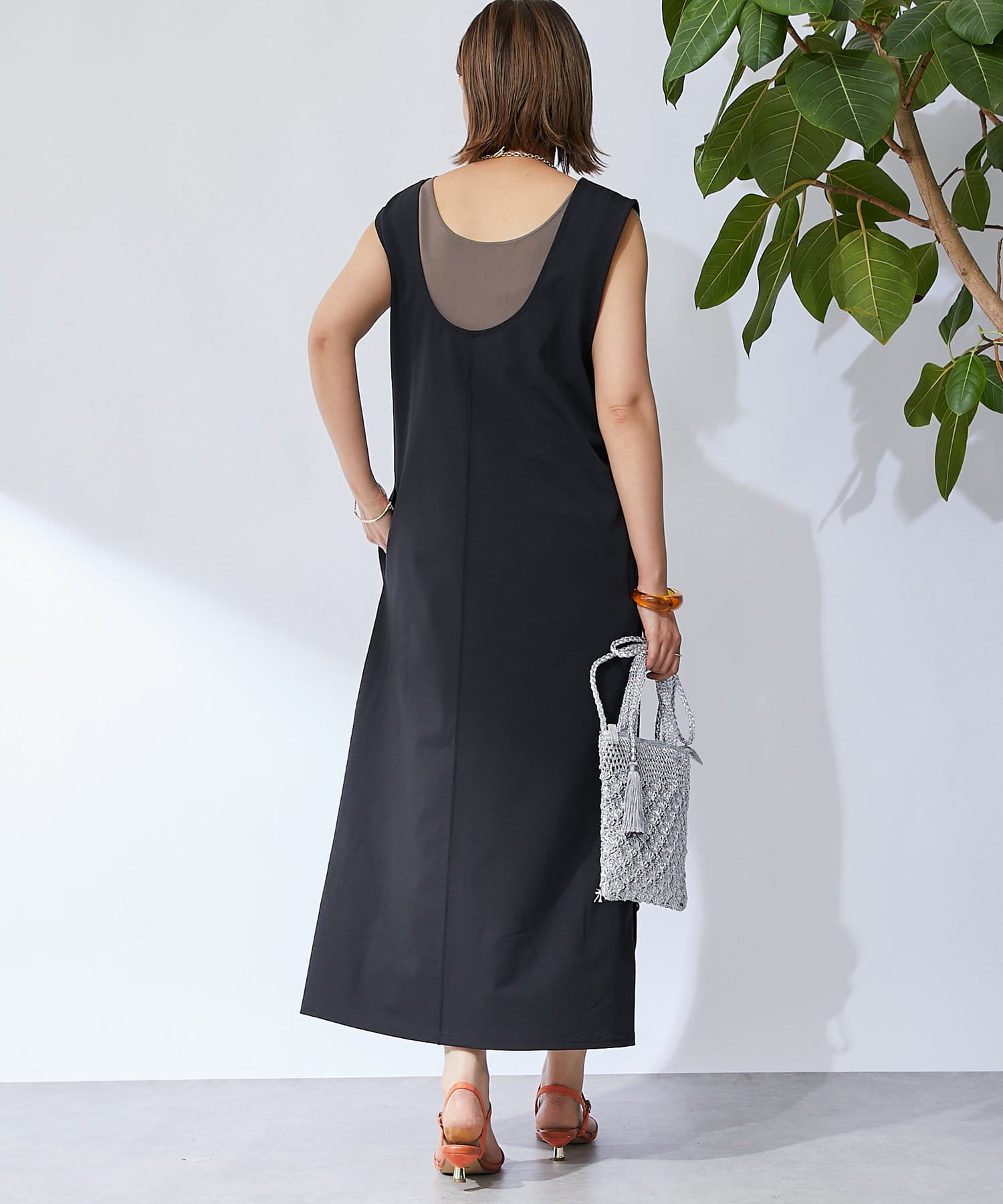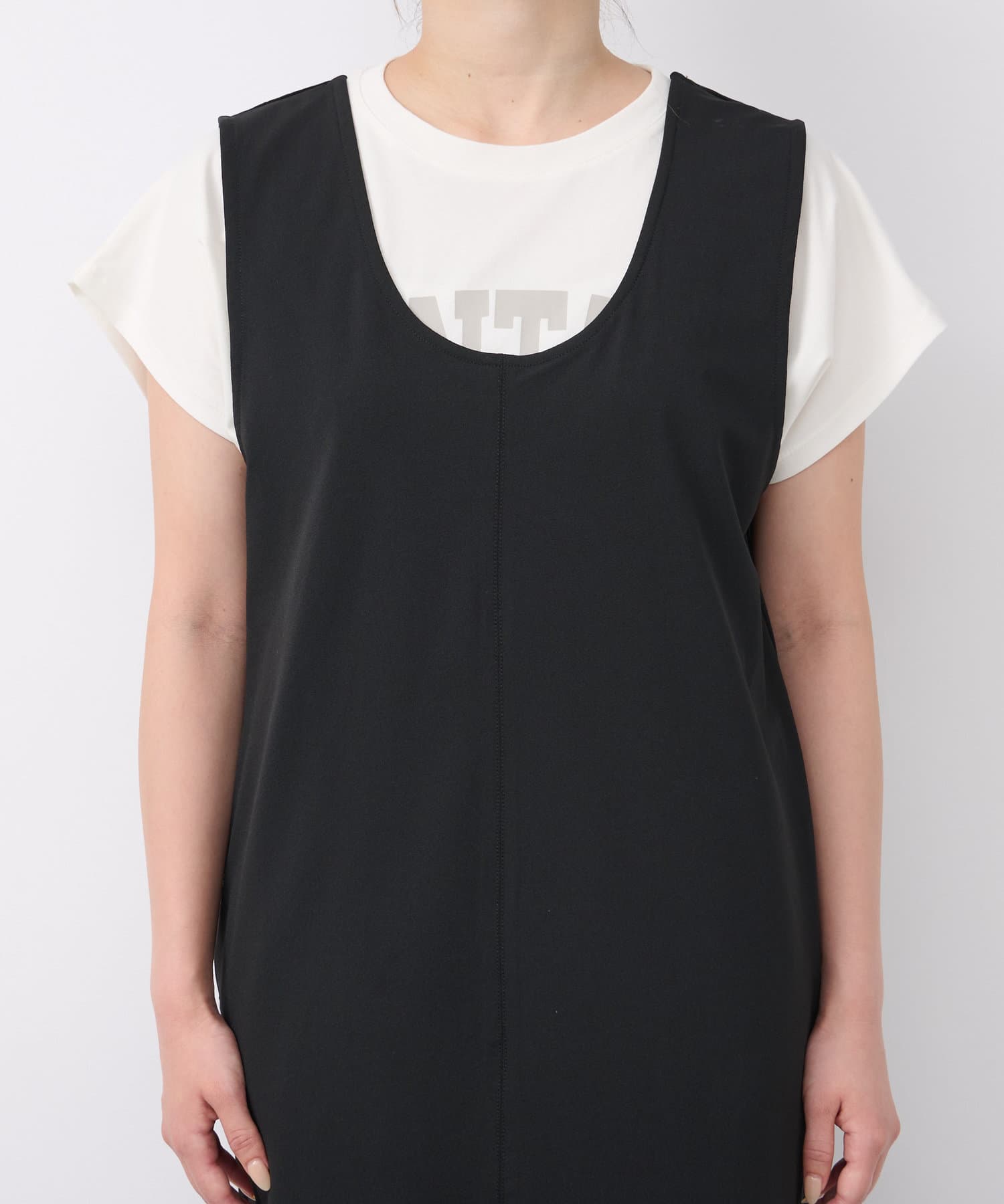 深開的 U 領讓身體線條看起來簡潔時尚。