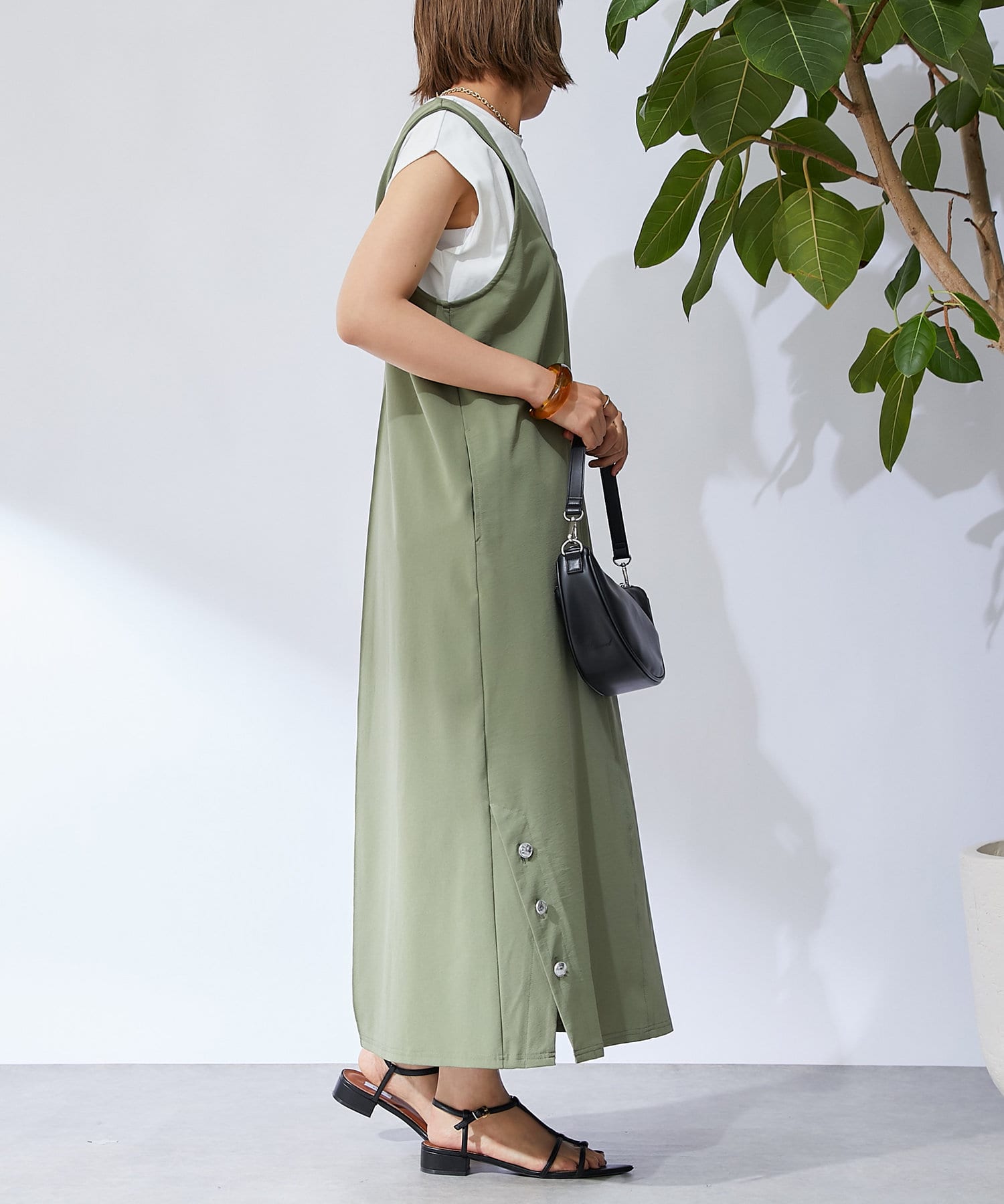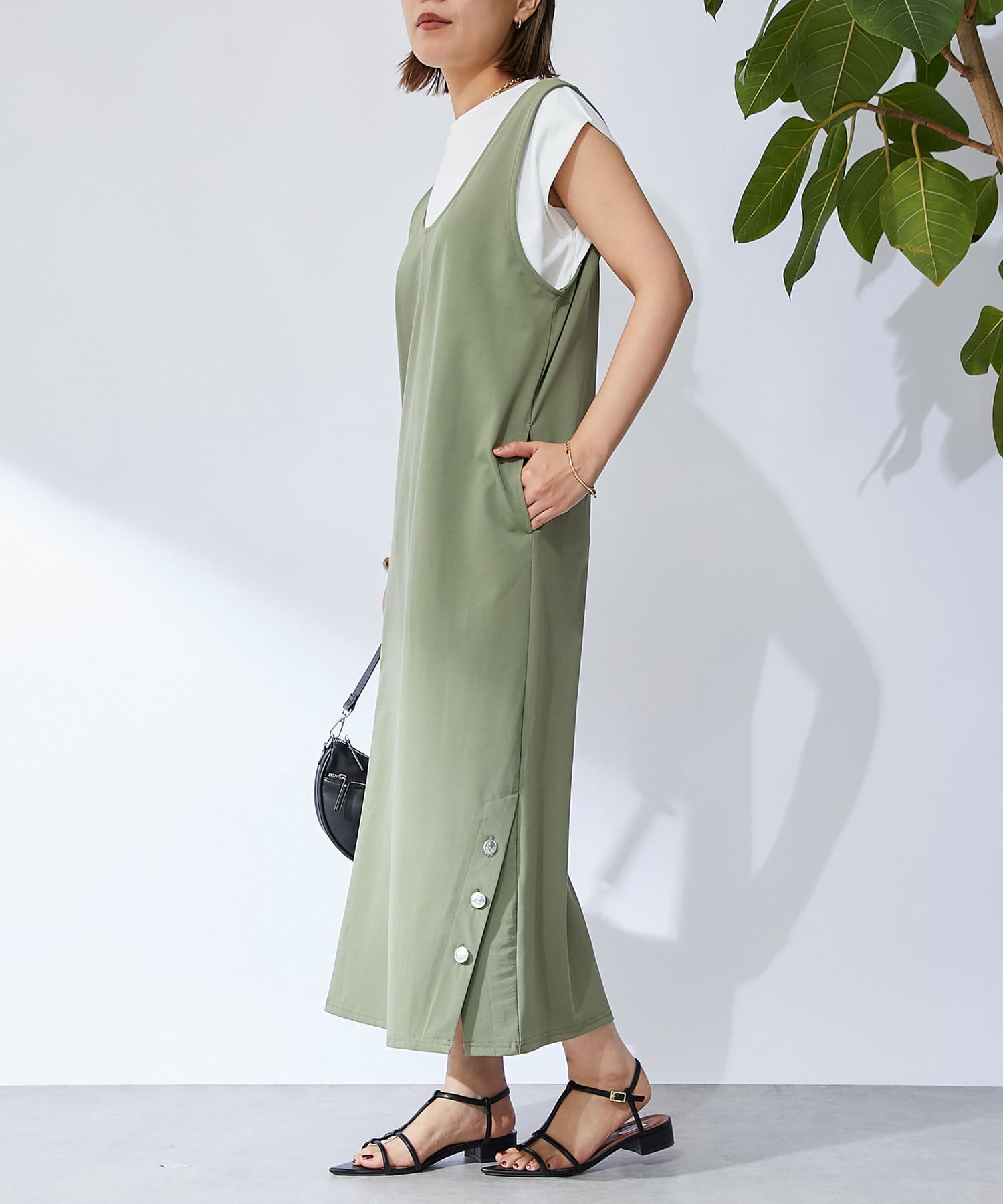 下襬處的紐扣給人酷酷的感覺!