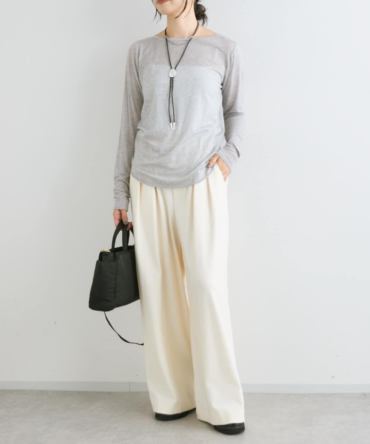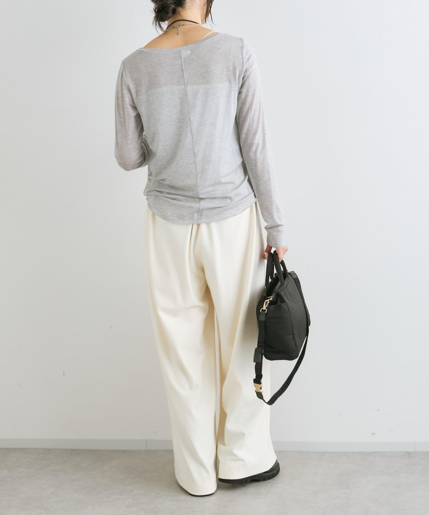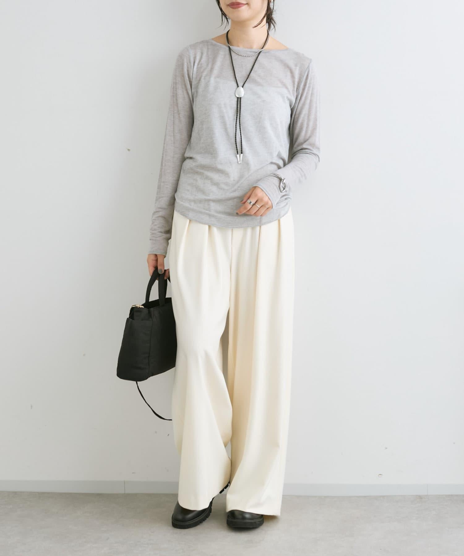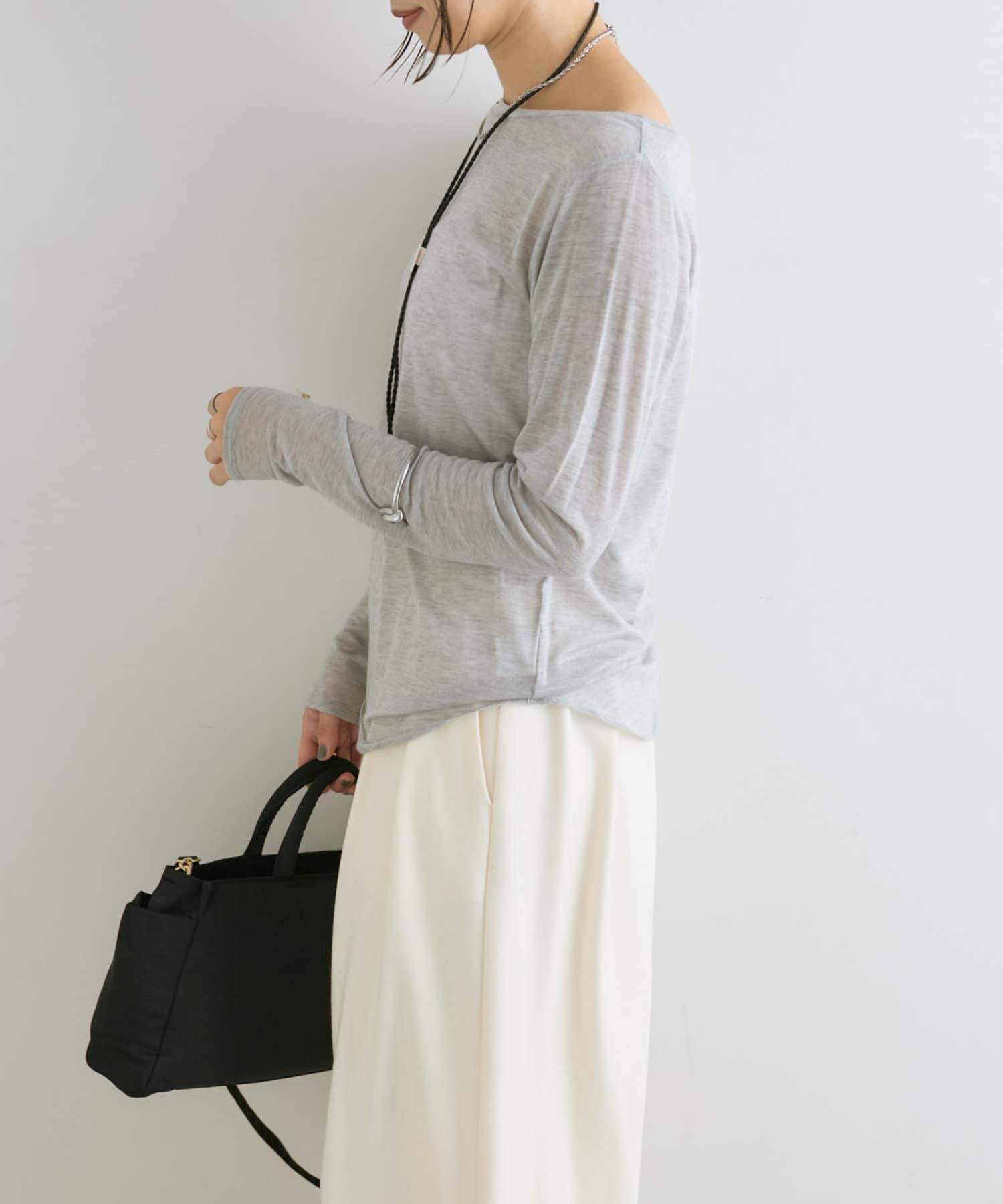 面料柔軟的落差給人細膩舒適的印象。船形領口勾勒出優美的肩部線條。