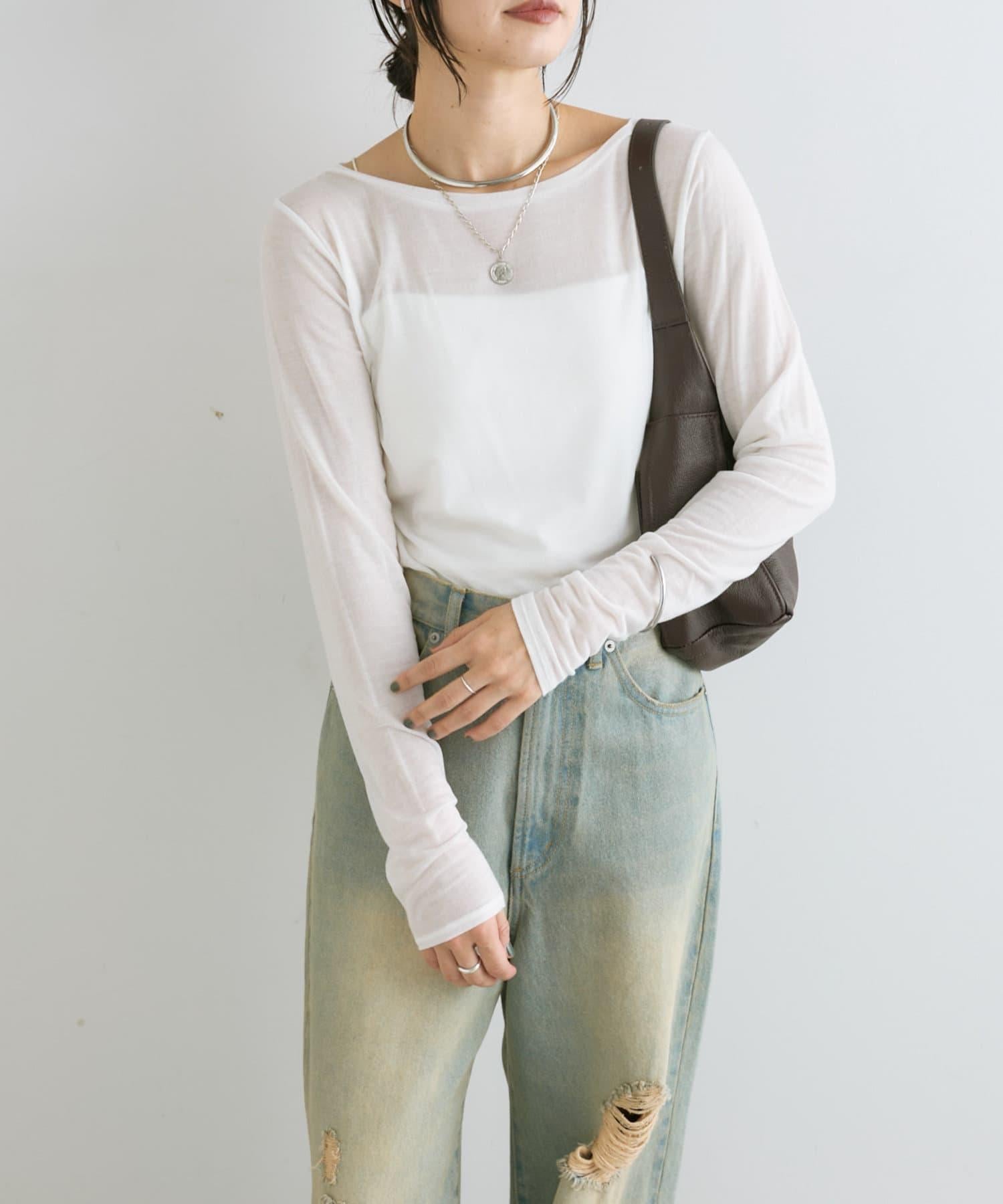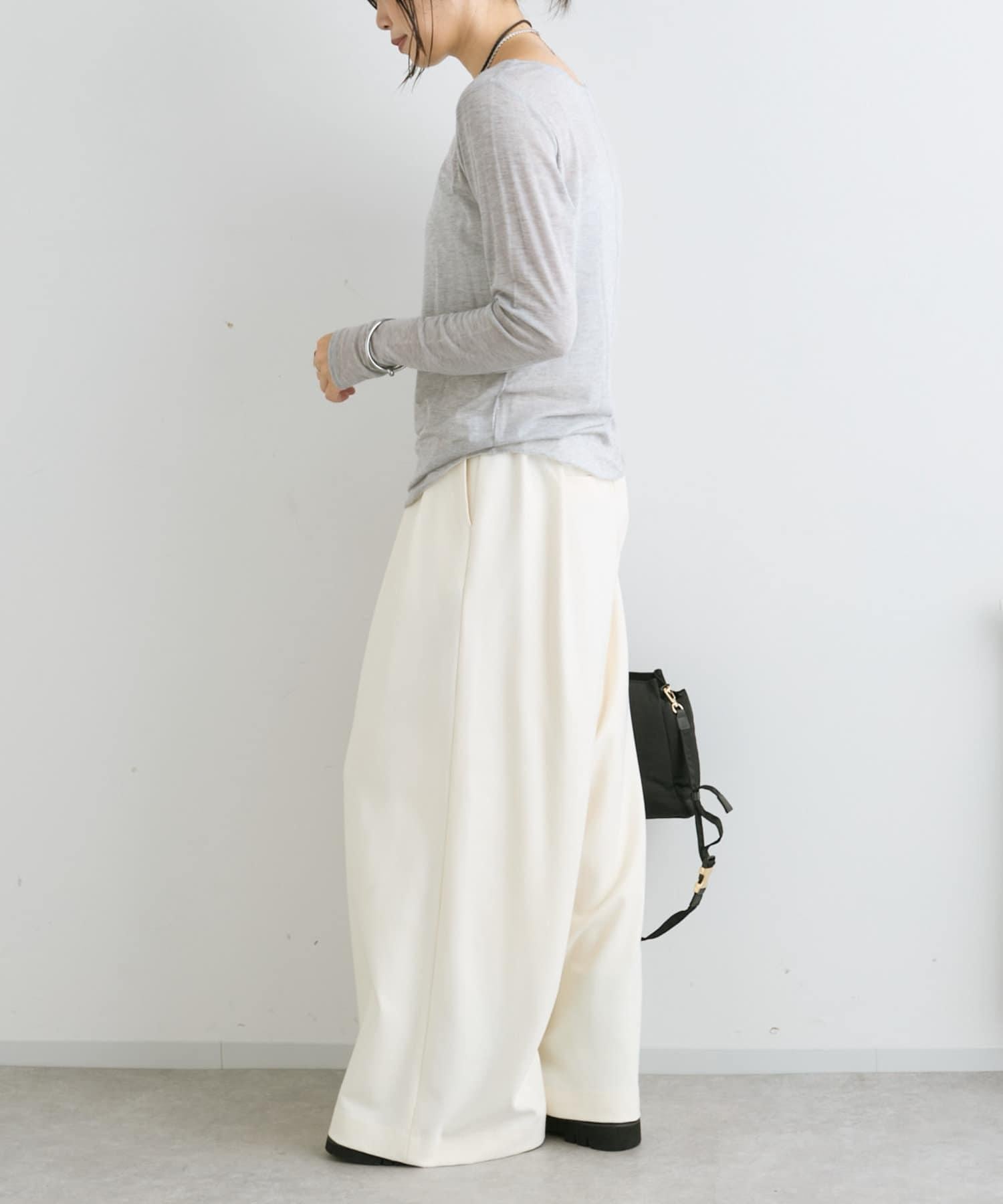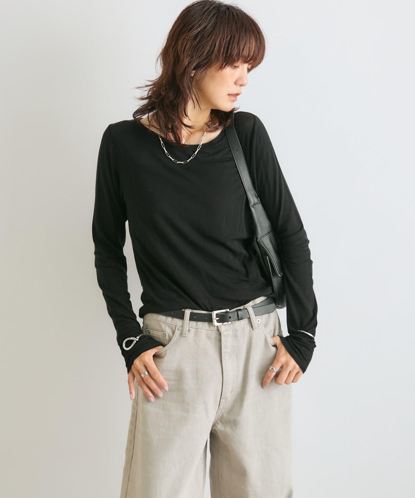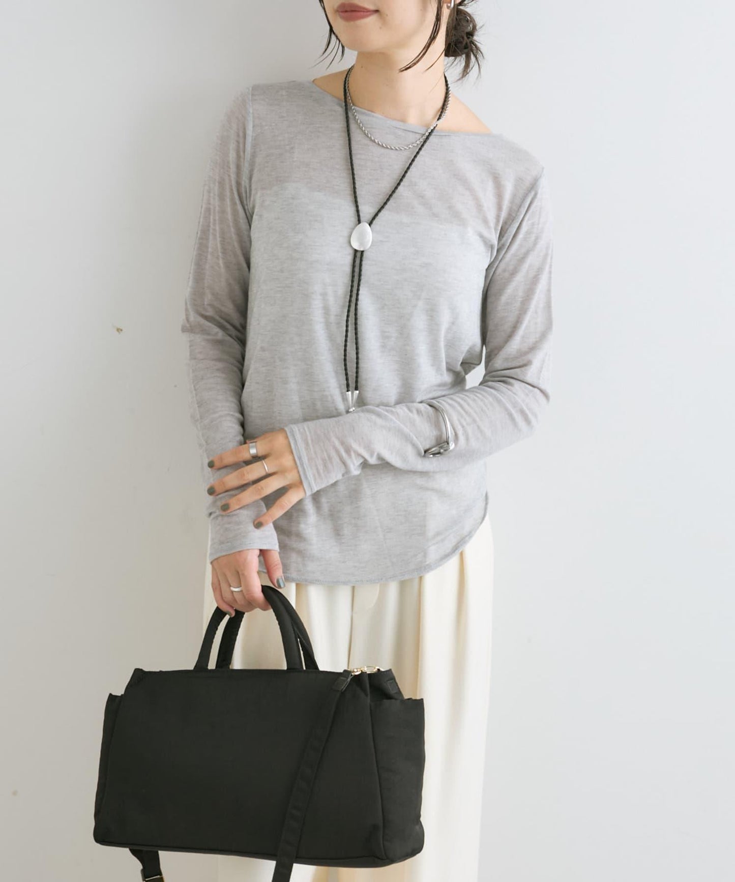 面料柔軟的落差給人細膩舒適的印象。船形領口勾勒出優美的肩部線條。