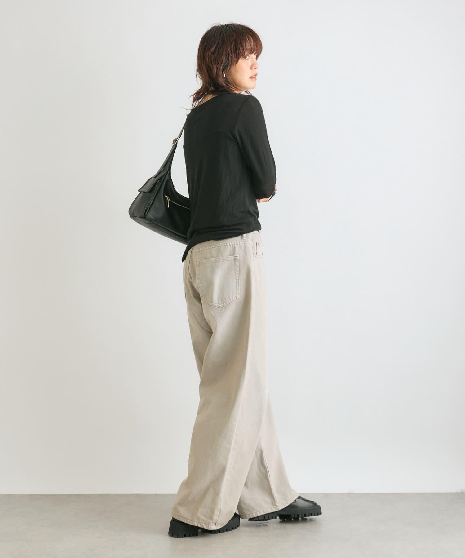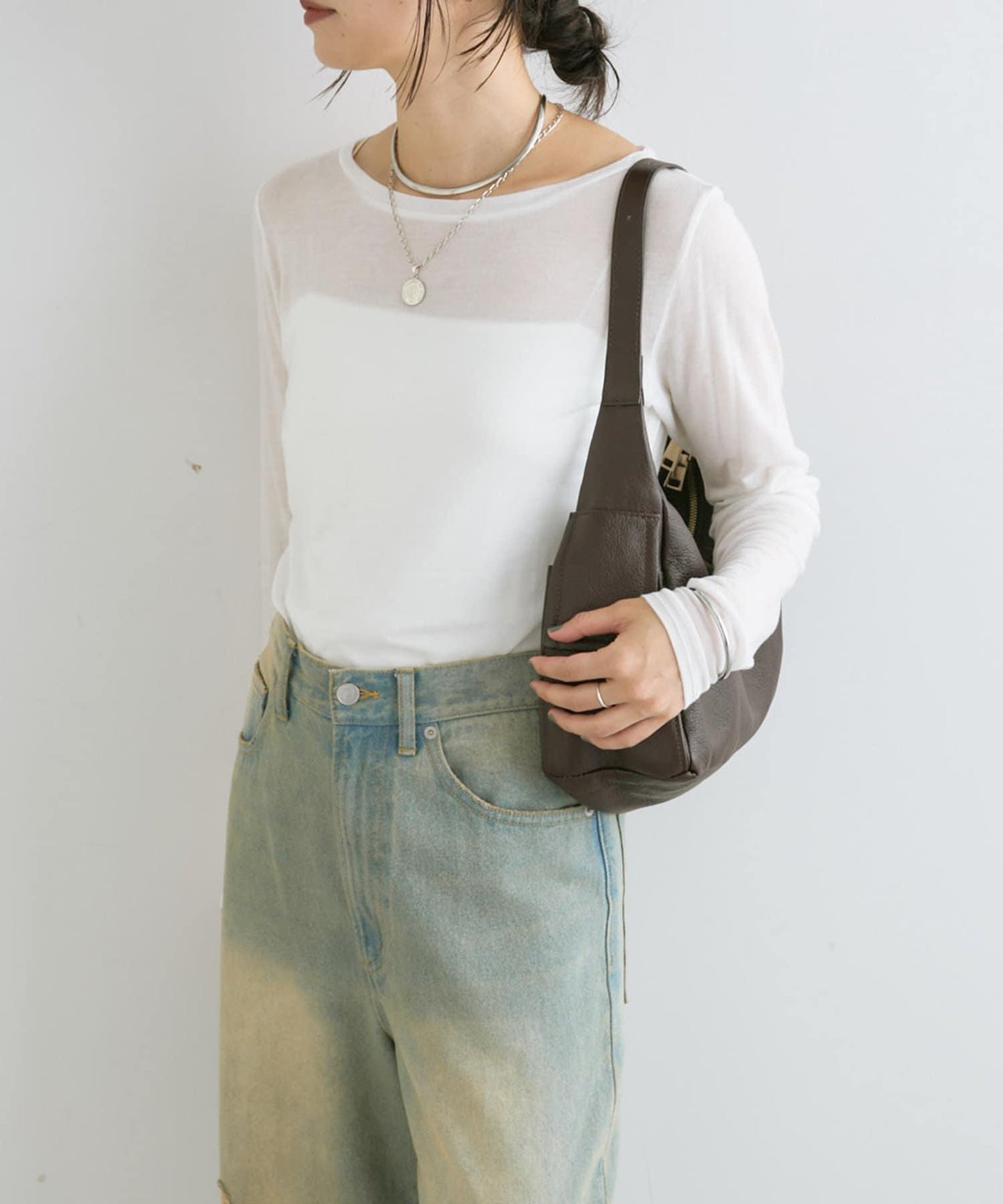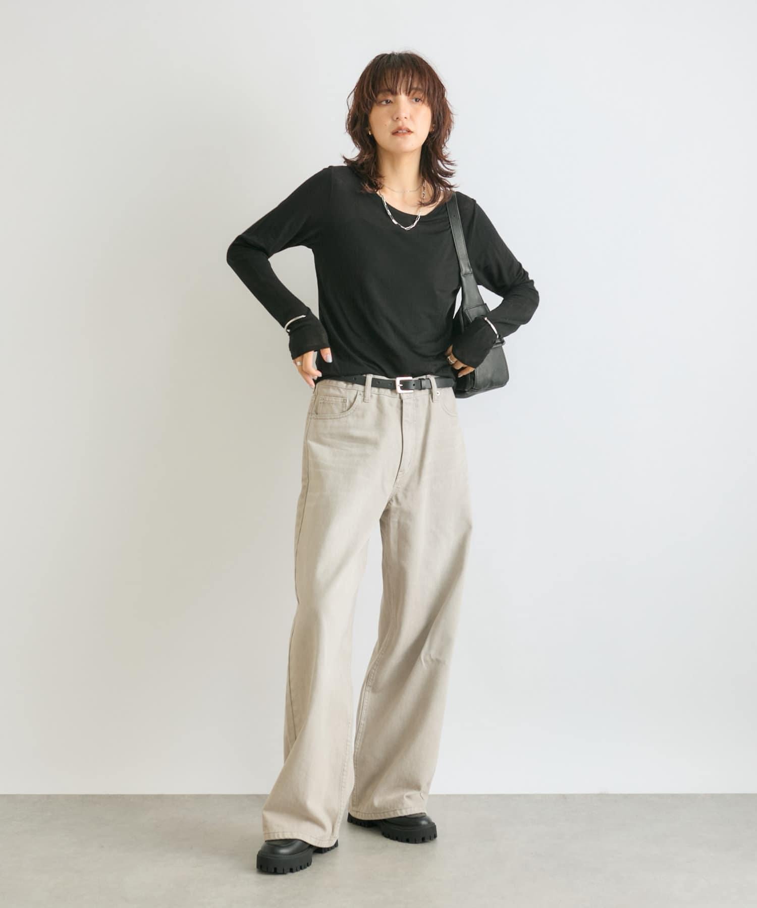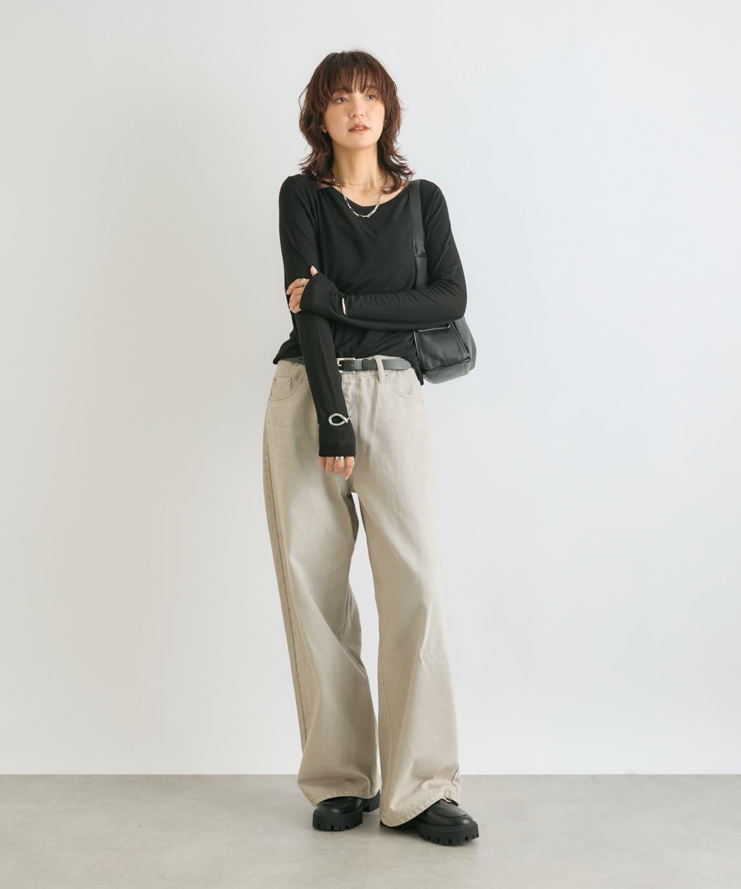 面料柔軟的落差給人細膩舒適的印象。船形領口勾勒出優美的肩部線條。