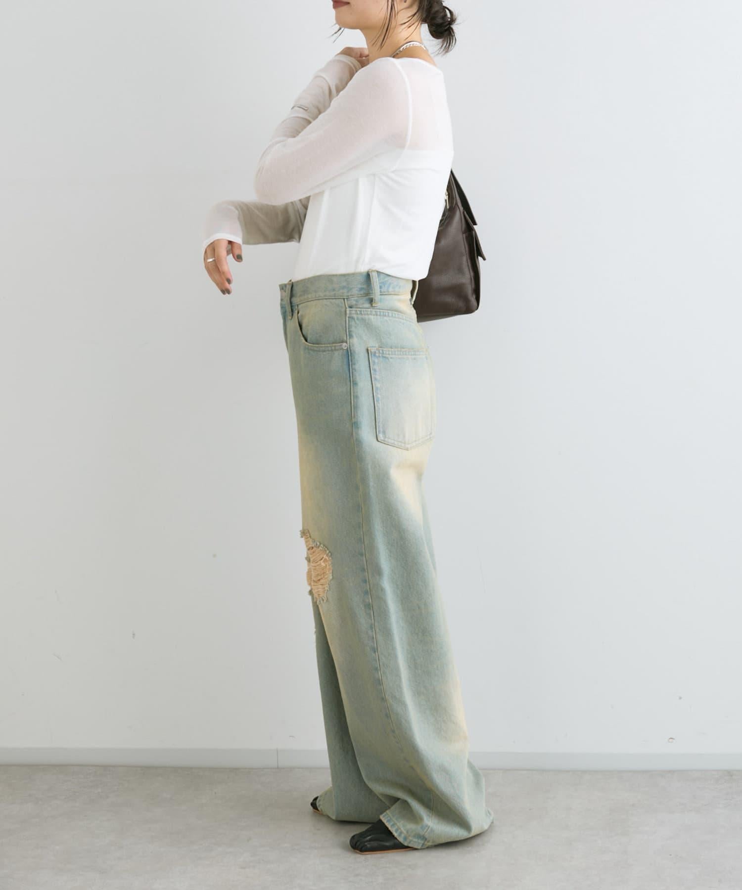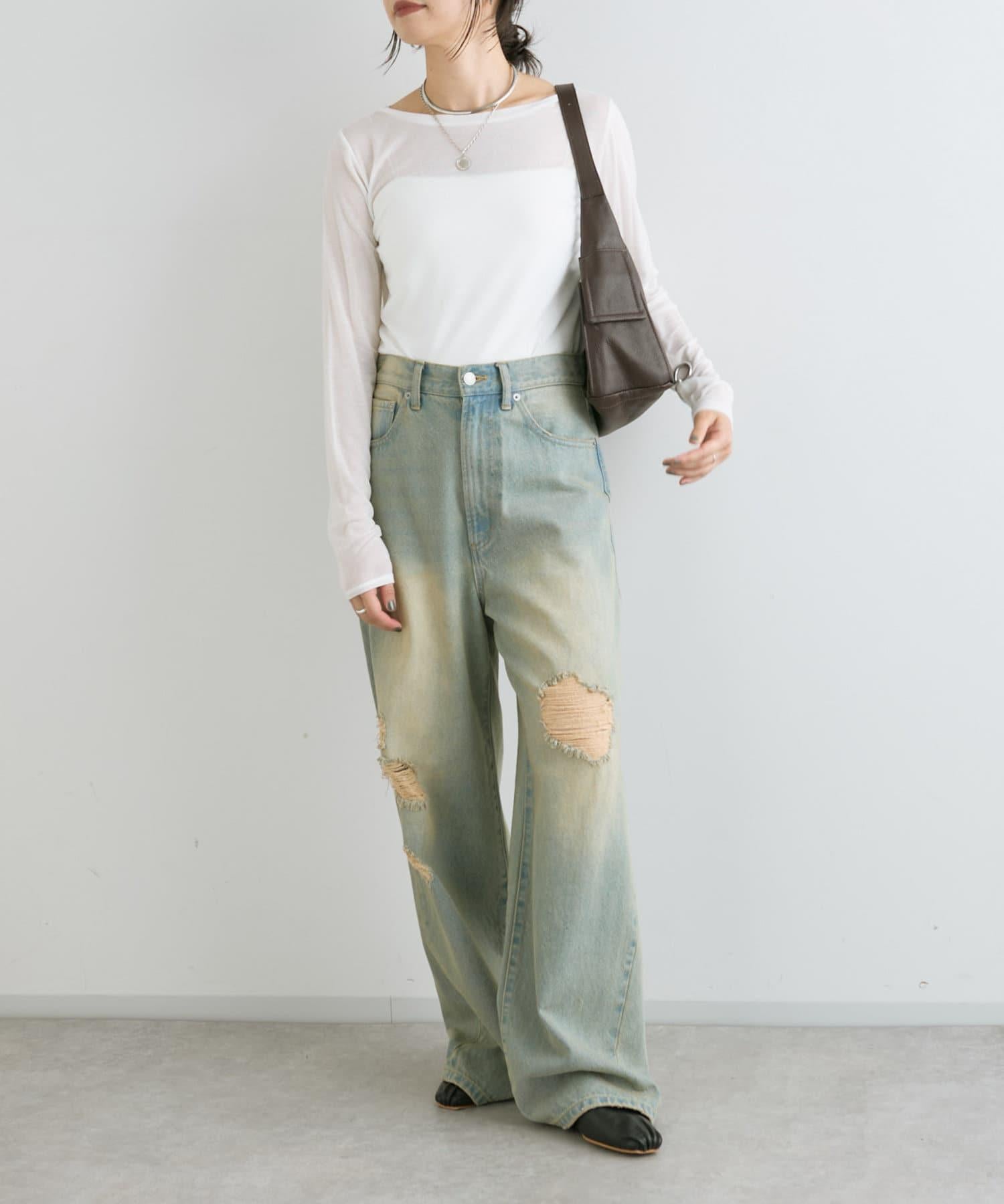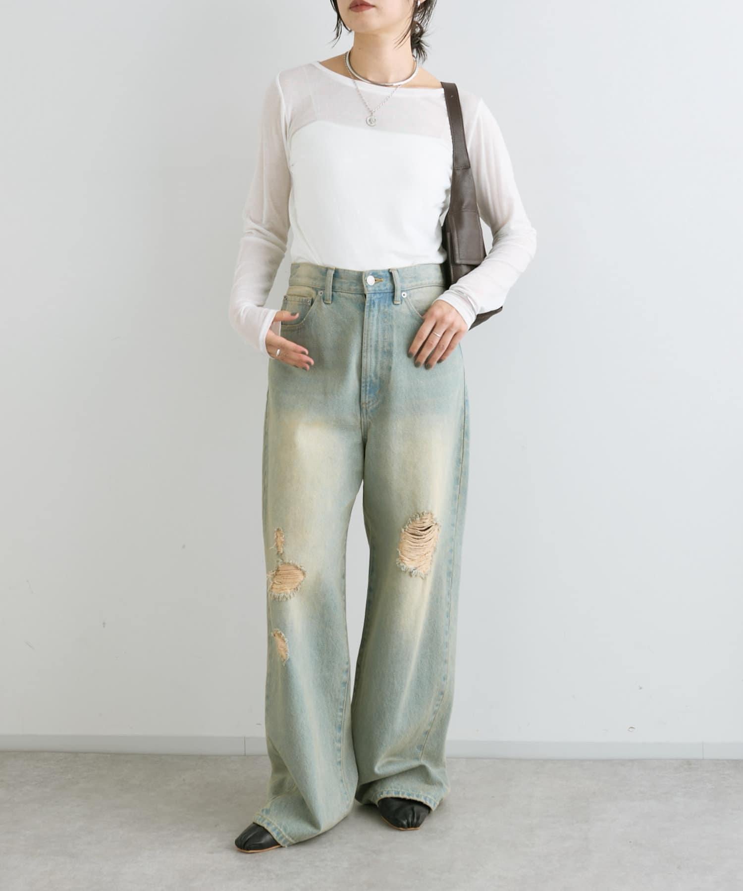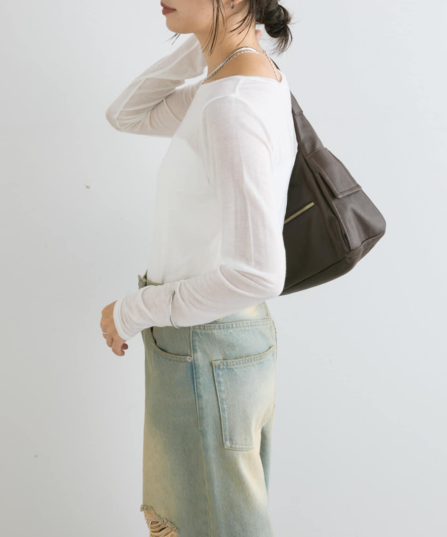 面料柔軟的落差給人細膩舒適的印象。船形領口勾勒出優美的肩部線條。