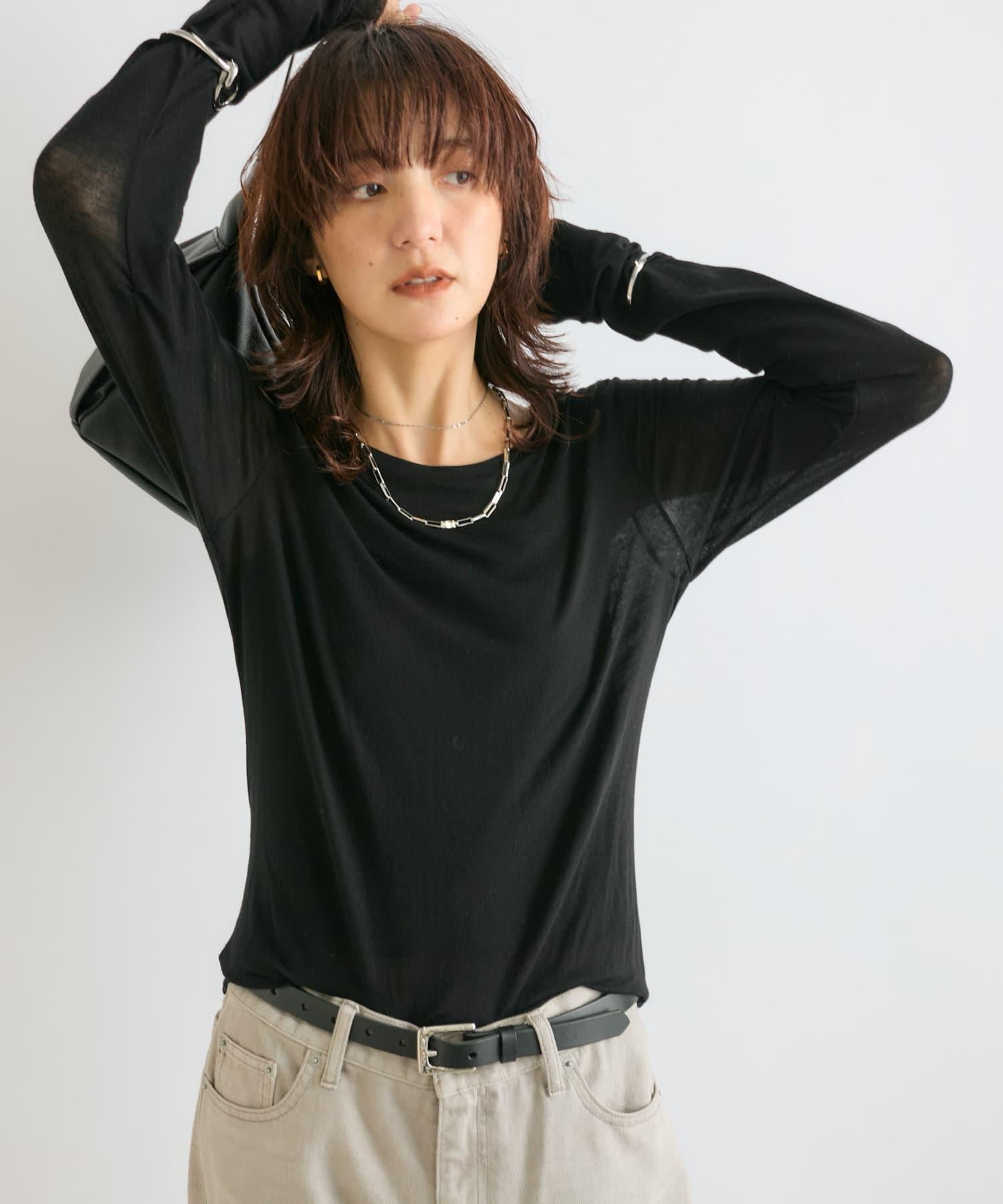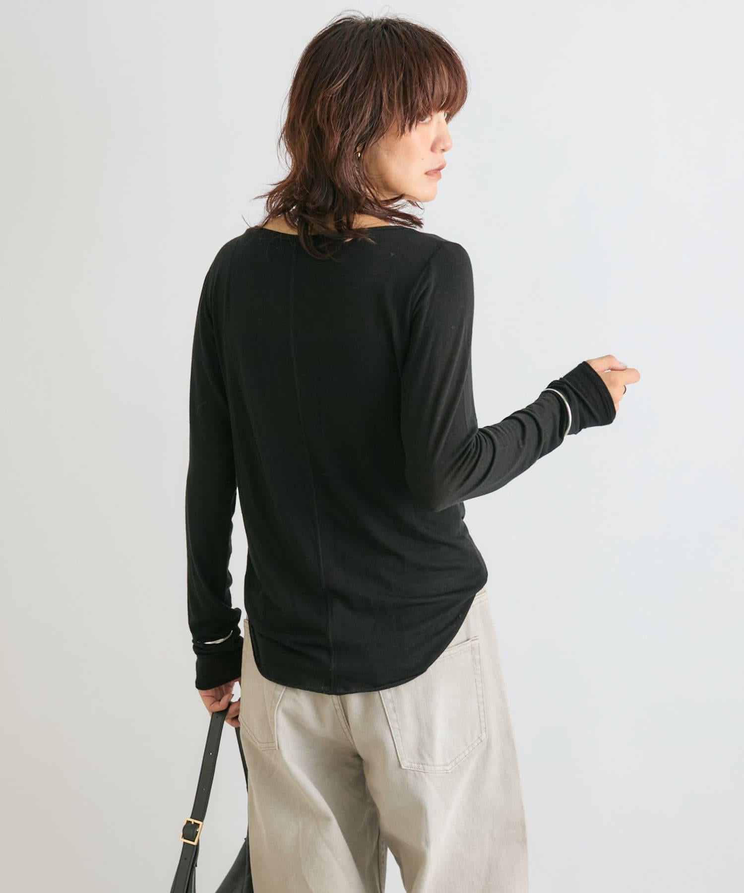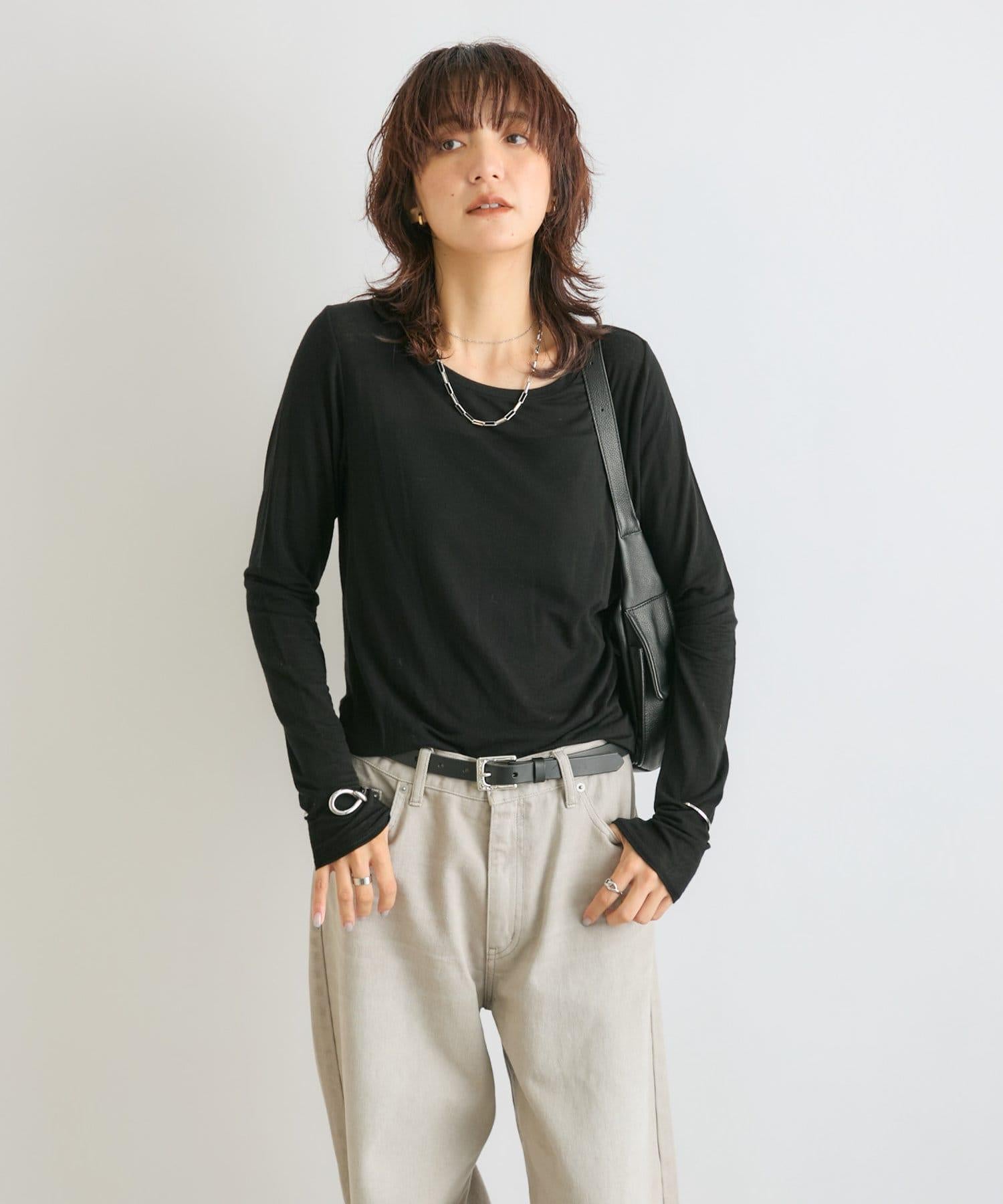 【柔軟肌觸感】絲羊絨混紡船領T恤