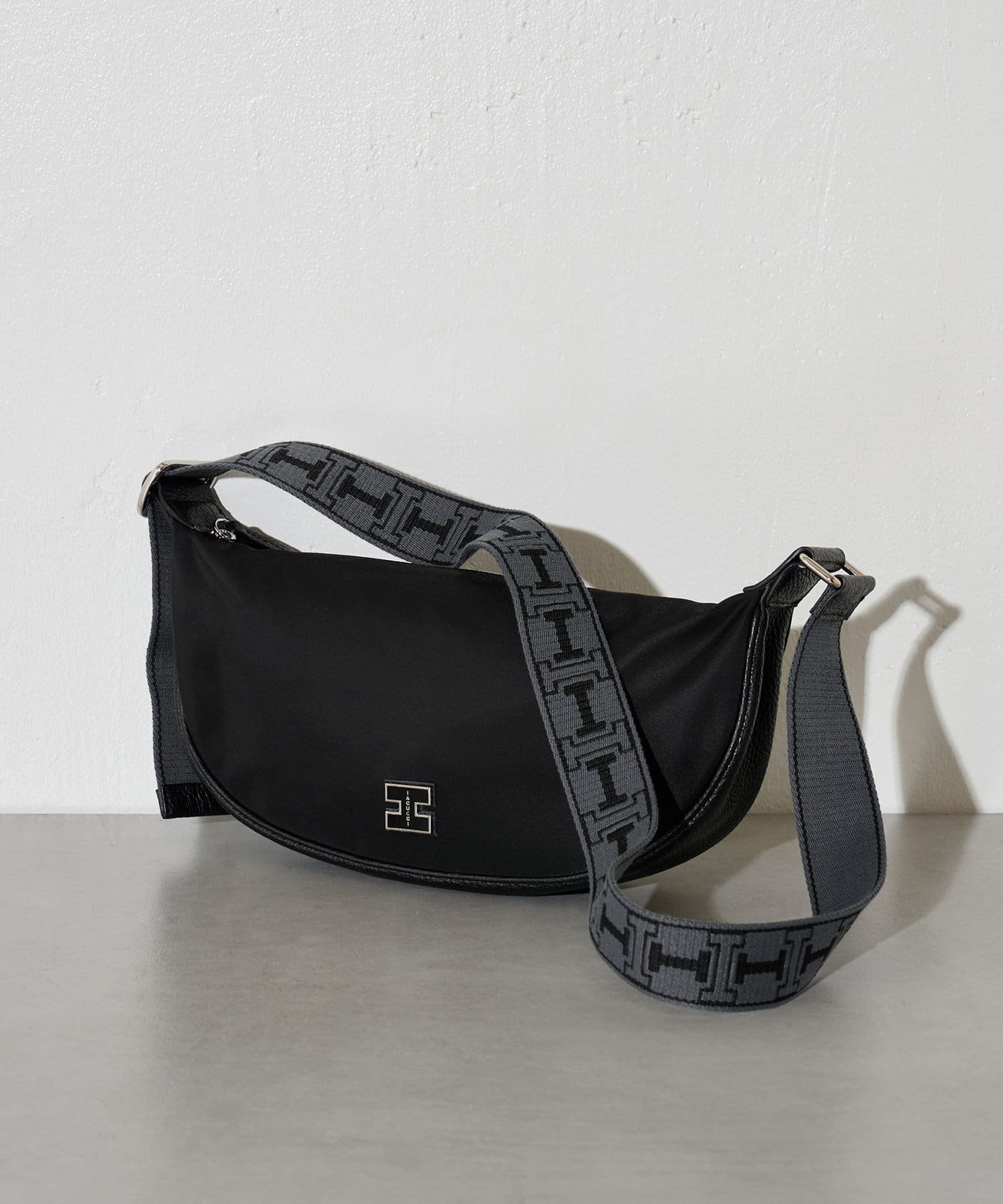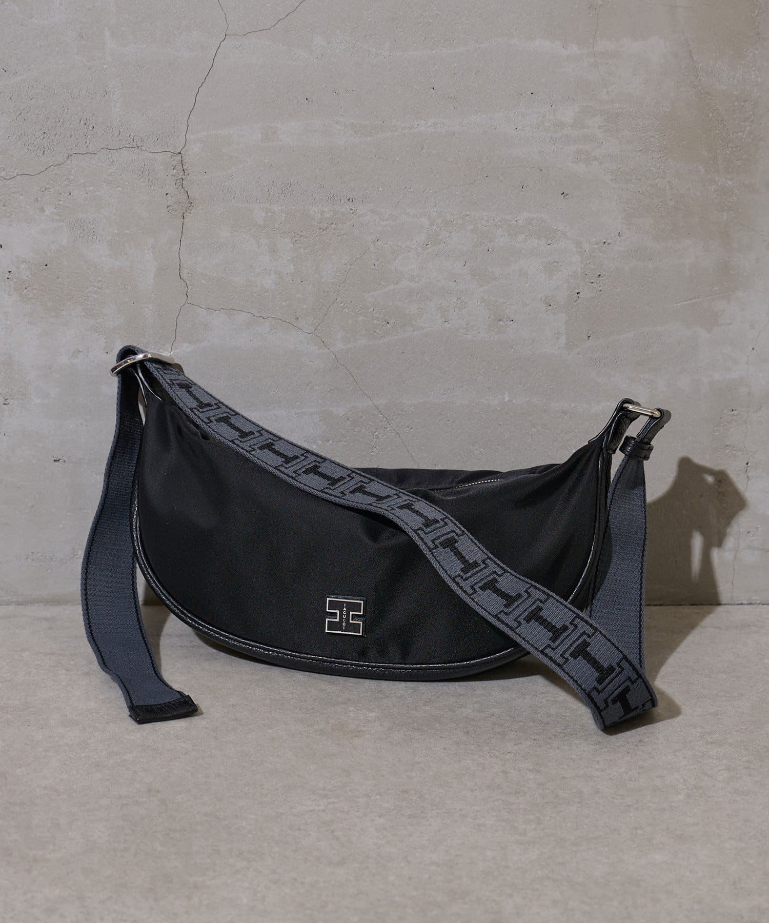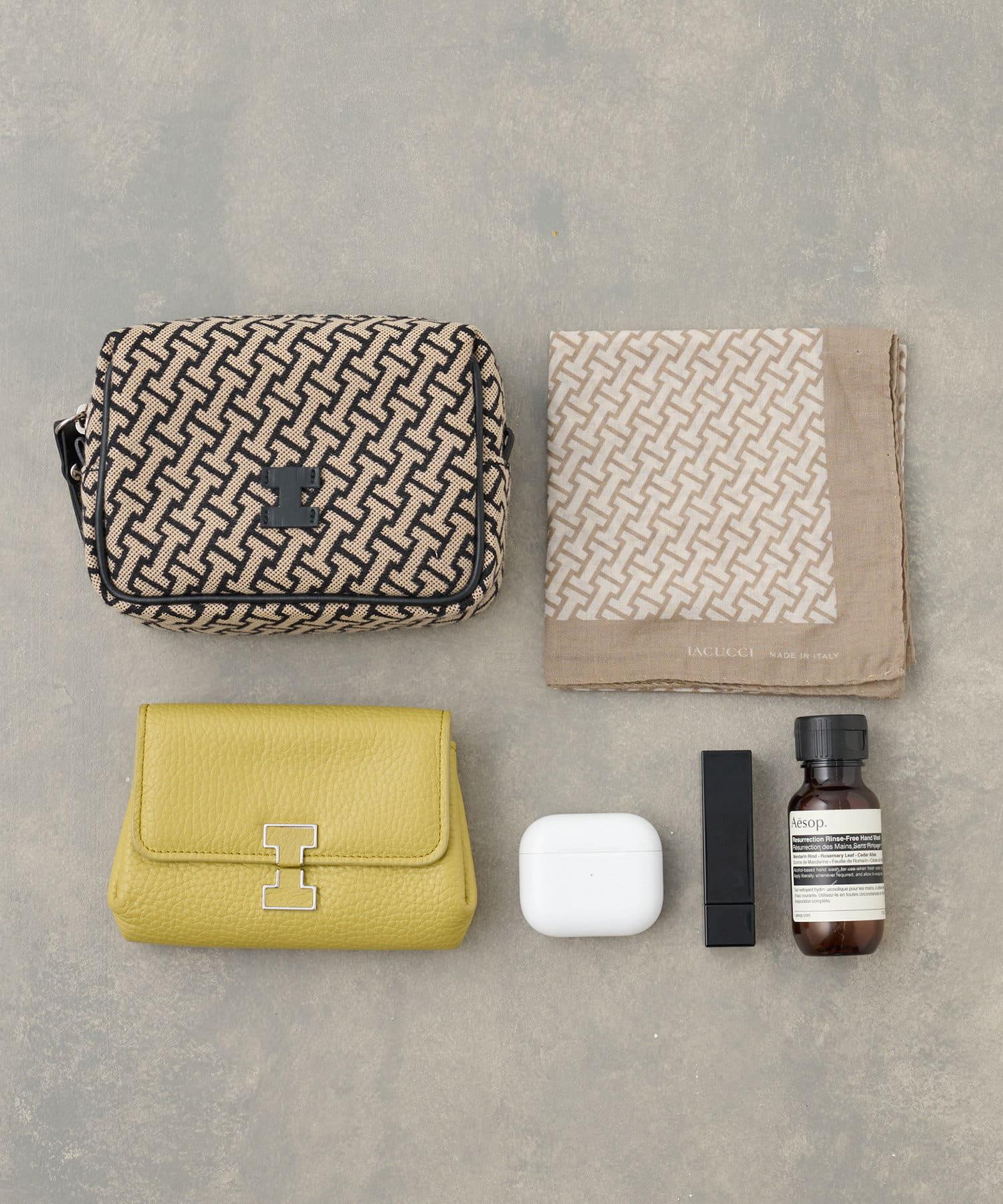 肩部的腰帶採用了與流行的 "ALMA "系列相同的織物,使該系列充滿了 Iacucci 風格。正面的金屬 "I "徽標增添了趣味性,男裝式的設計又不失女性的優雅,是導演引以為豪的單品。
